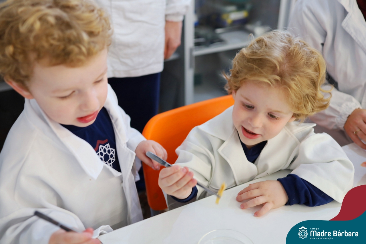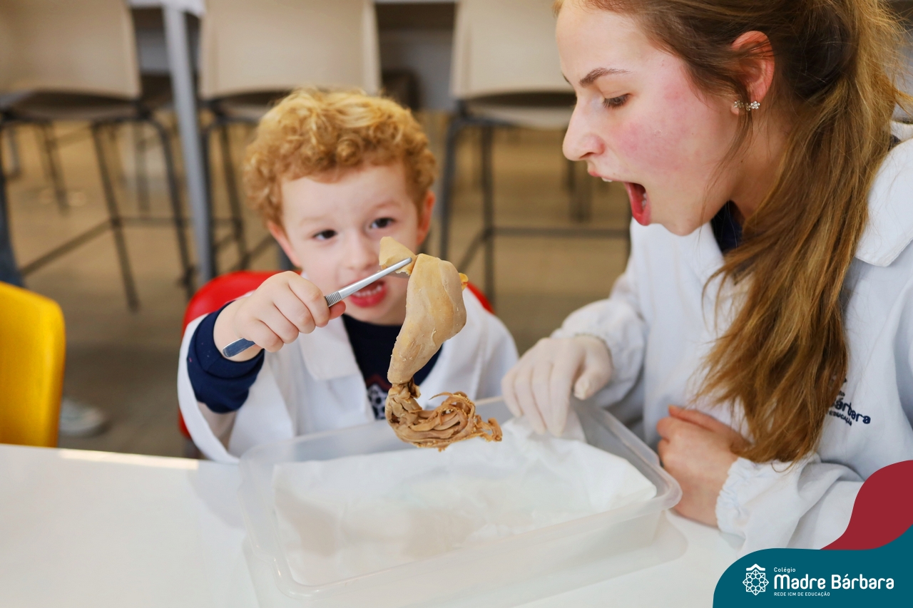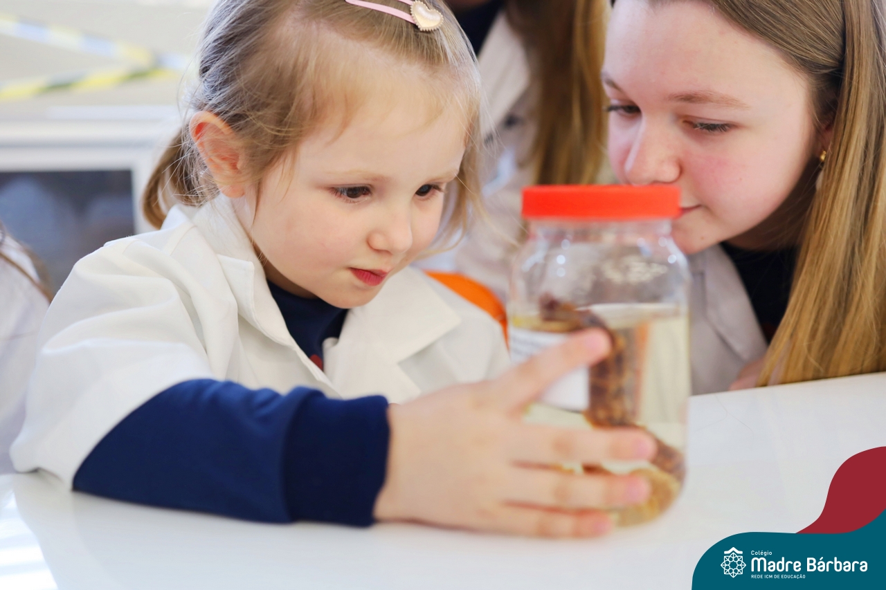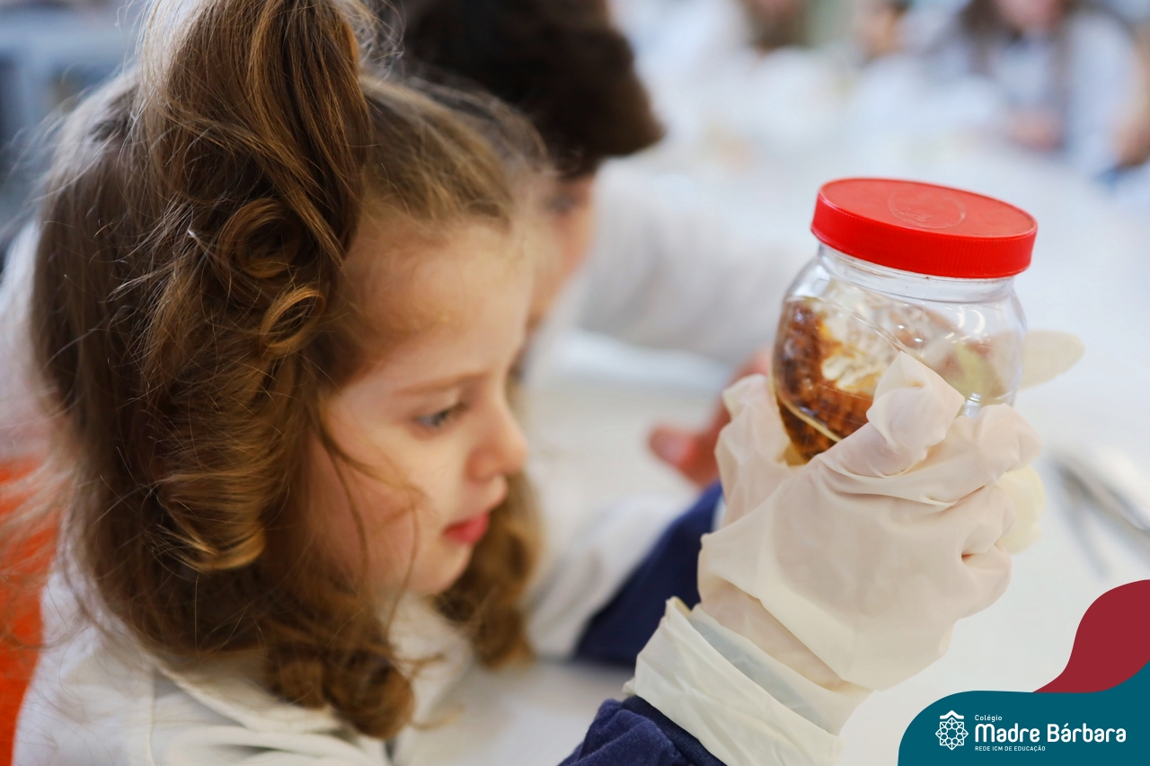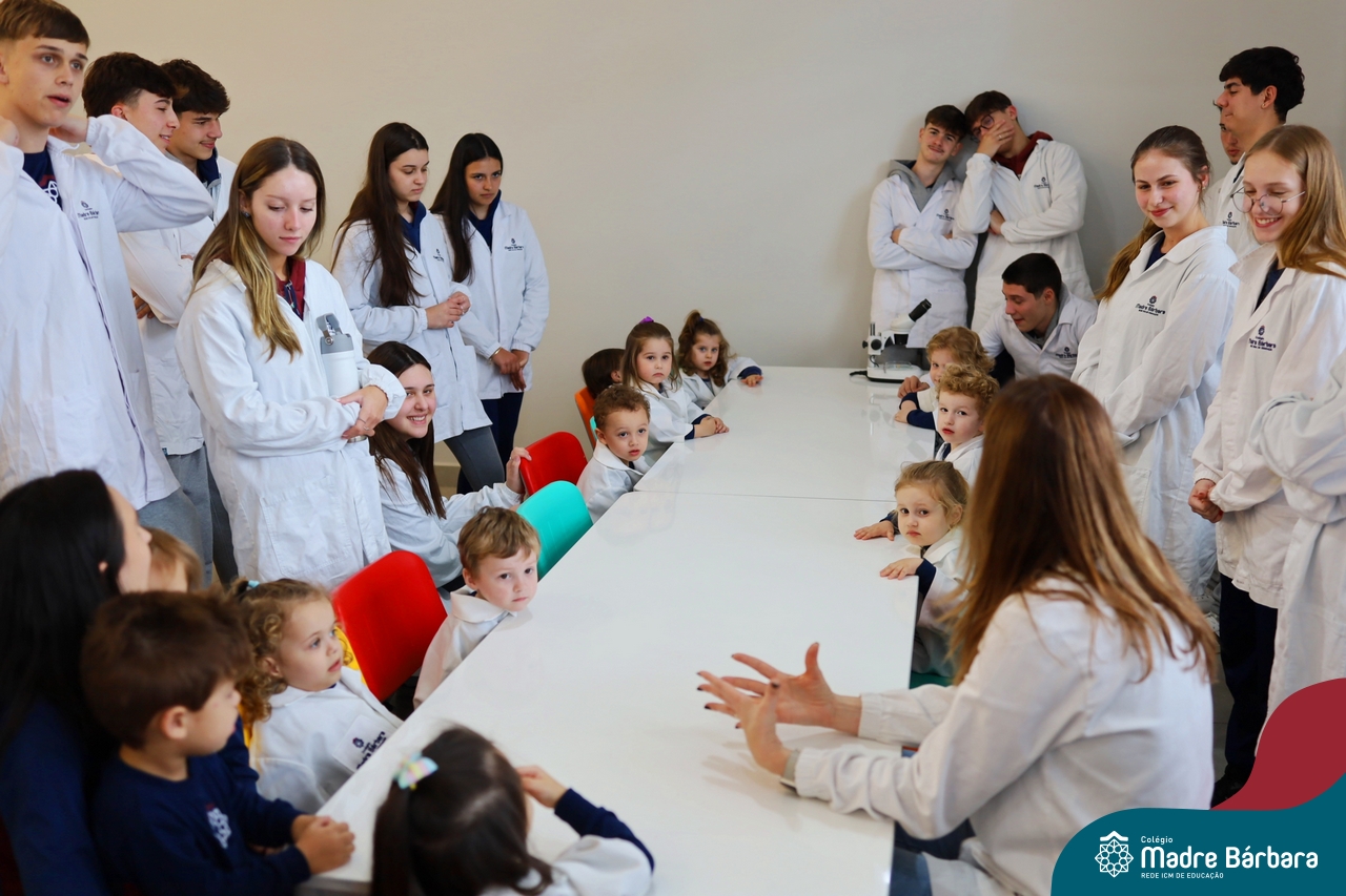 Na tarde do dia 08 de outubro, as crianças do nível 2B puderam ser cientistas no Laboratório de Ciências. Junto com os estudantes do 2°ano do Ensino Médio, vivenciaram um momento de troca de conhecimento sobre a vida marinha. Foi uma tarde de muito encantamento e descobertas sobre o fundo do mar!
