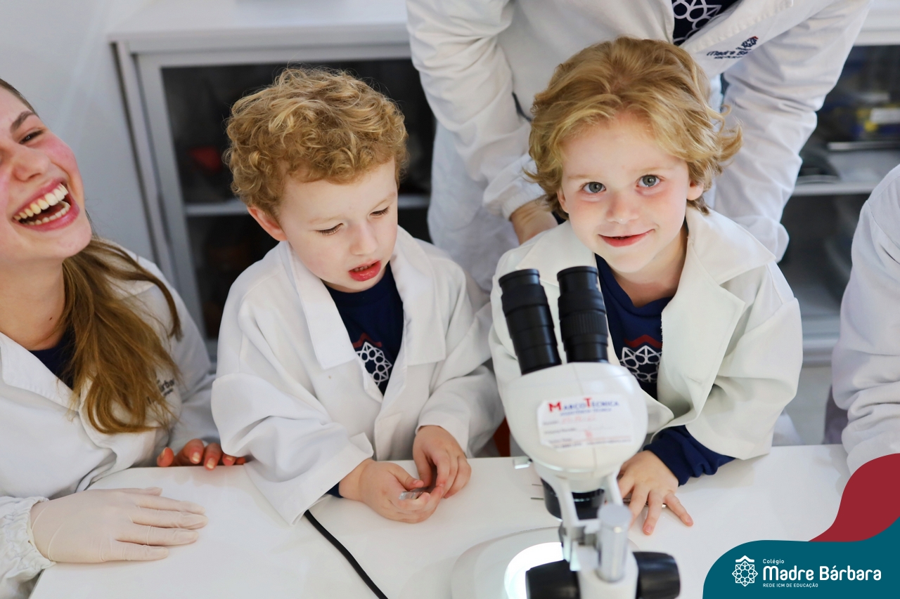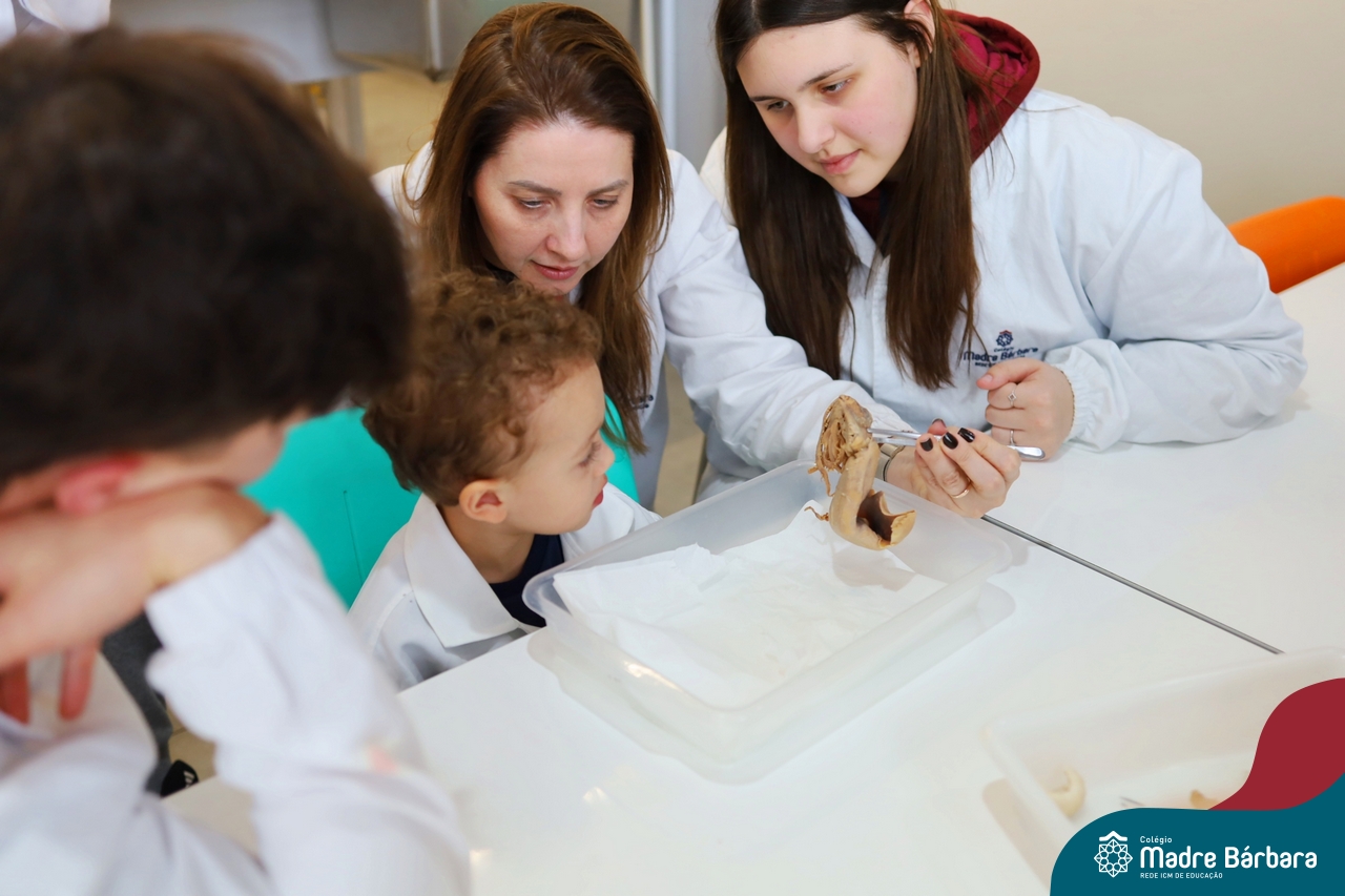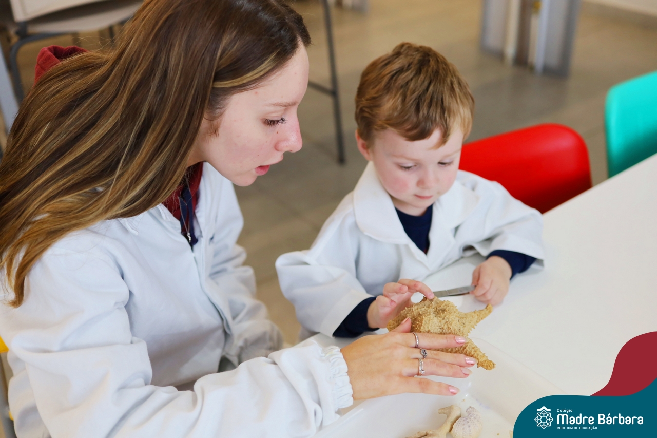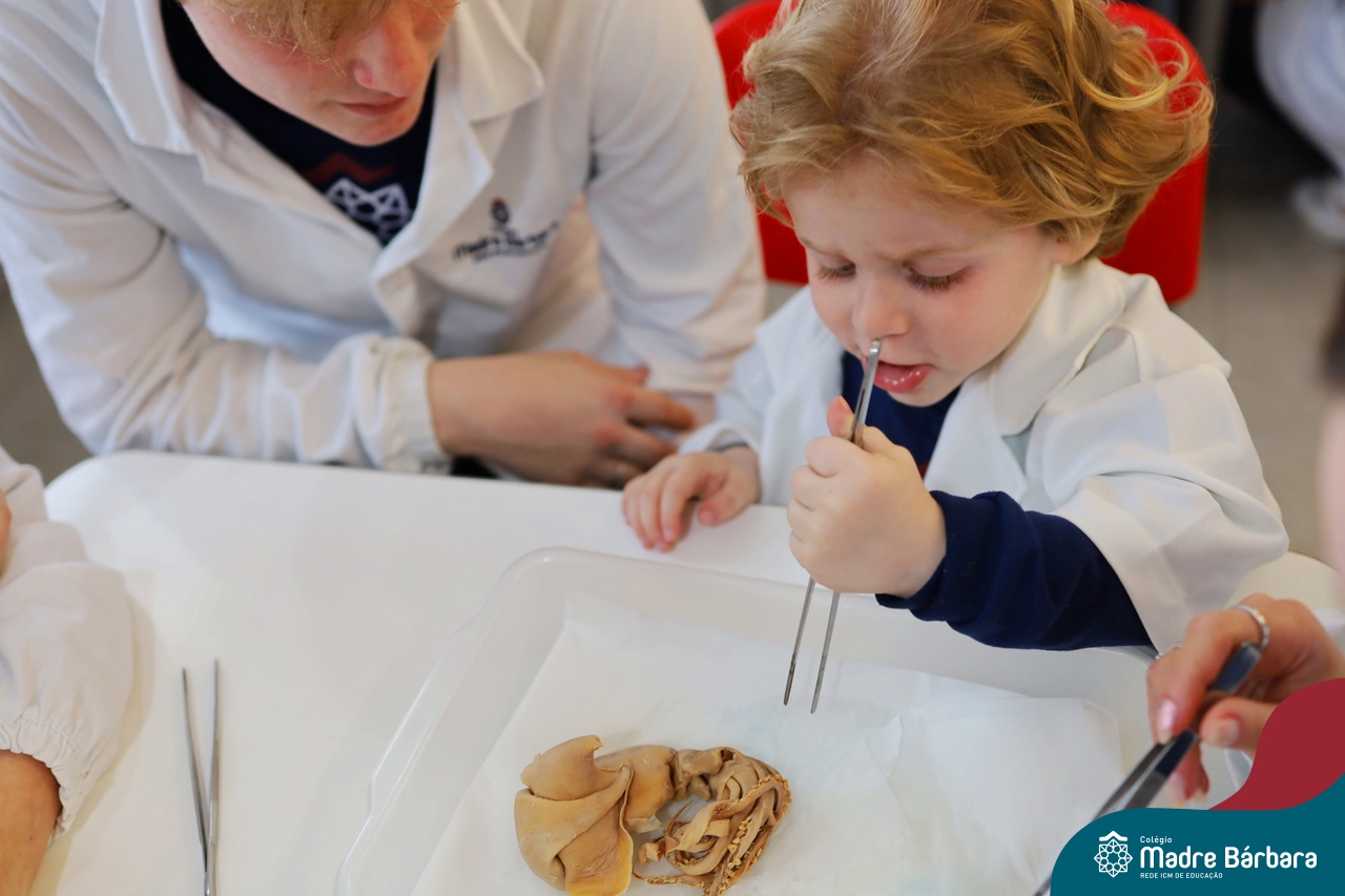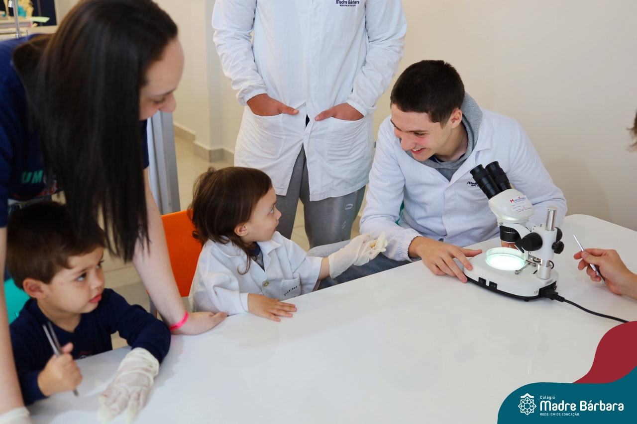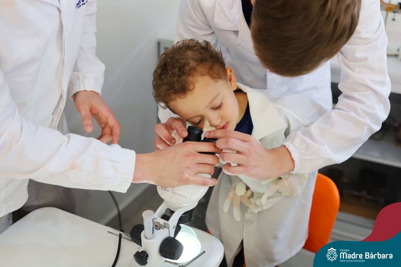 Na tarde do dia 08 de outubro, as crianças do nível 2B puderam ser cientistas no Laboratório de Ciências. Junto com os estudantes do 2°ano do Ensino Médio, vivenciaram um momento de troca de conhecimento sobre a vida marinha. Foi uma tarde de muito encantamento e descobertas sobre o fundo do mar!