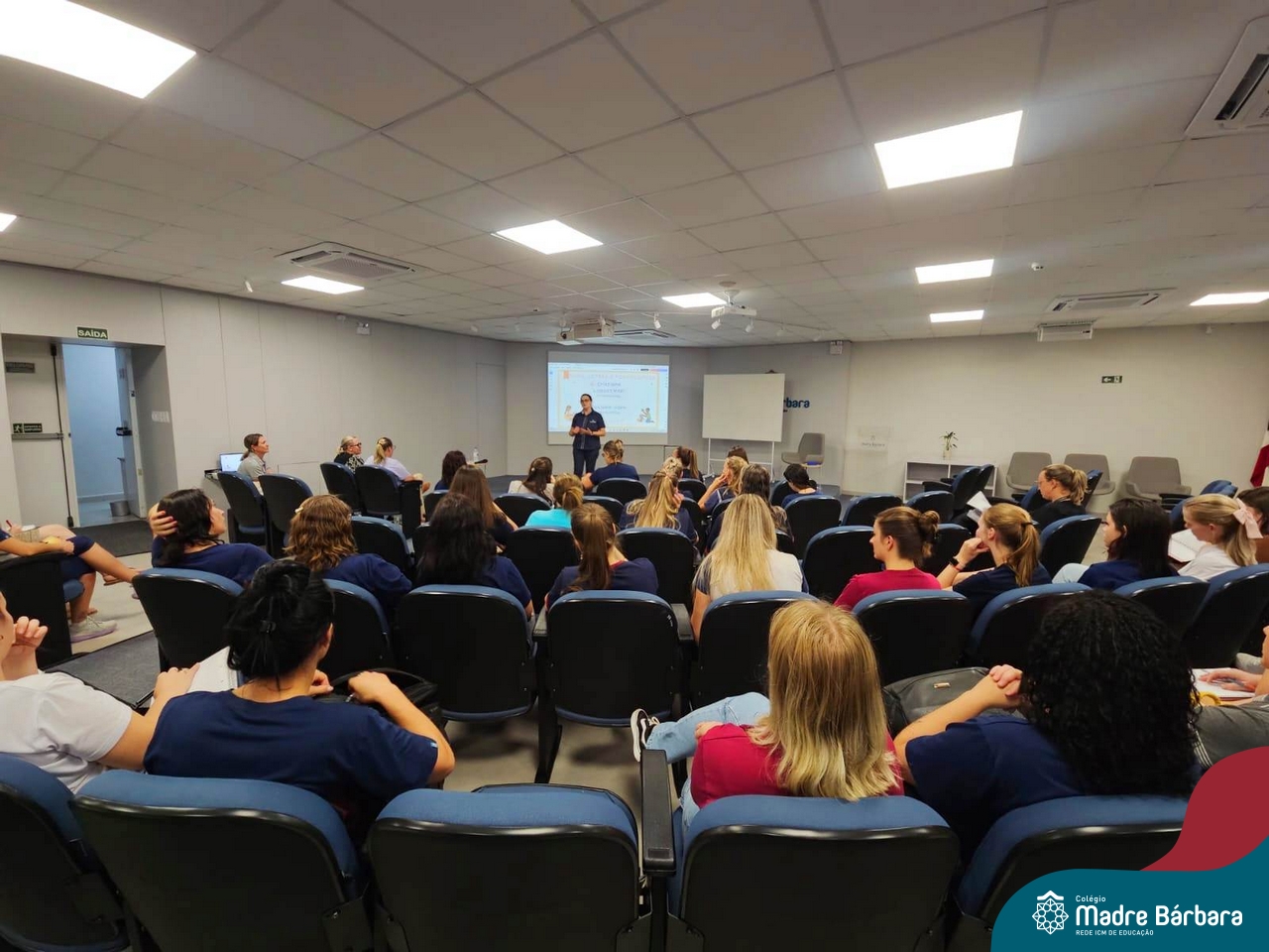 Na noite desta quarta-feira, 15 de abril, o Colégio Madre Bárbara promoveu um importante momento de formação pedagógica voltado aos professores e monitores dos Anos Iniciais, com o tema “Sons, Letras e Possibilidades: pensando em estratégias pedagógicas para trabalhar com os Transtornos de Aprendizagem na Leitura e na Escrita e a Apraxia da Fala”. O encontro foi organizado pelo Serviço de Orientação Educacional, em parceria com a Coordenação Pedagógica, e contou com a contribuição das especialistas Cristiane Loposzinski, psicopedagoga, e Fabiane Horn, fonoaudióloga, que conduziram a formação de forma técnica, sensível e alinhada às demandas do contexto escolar.