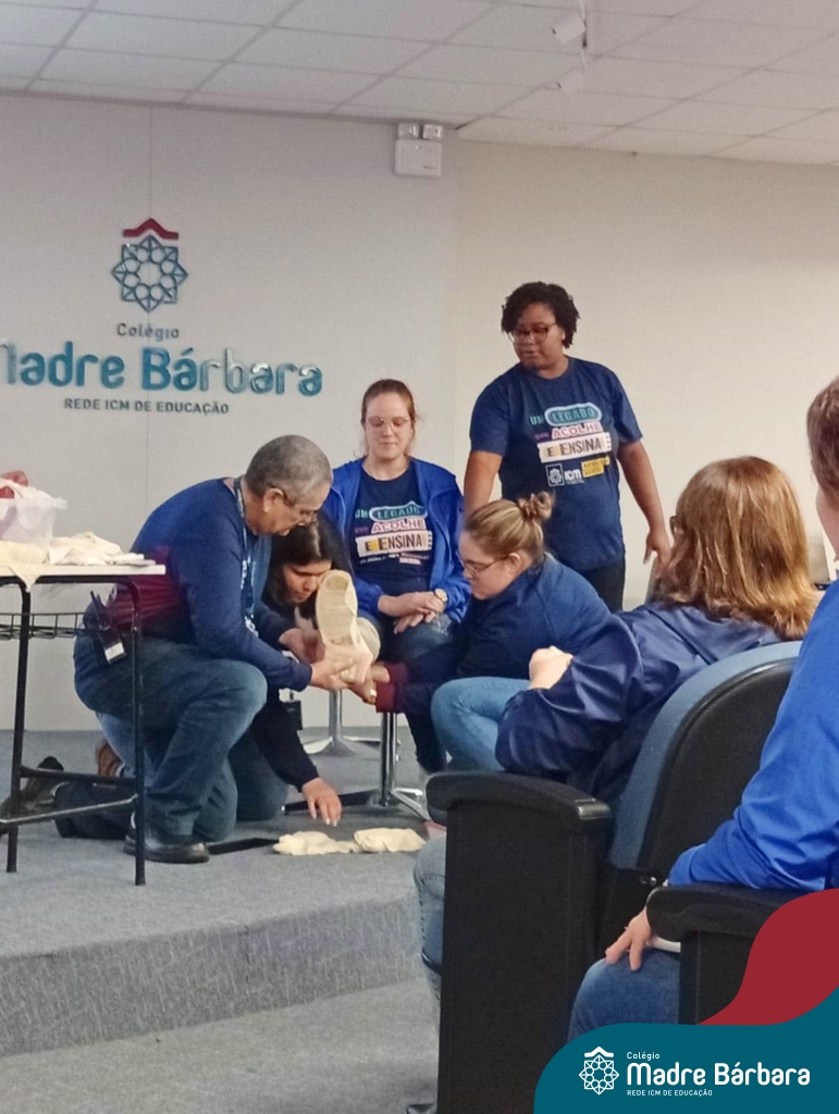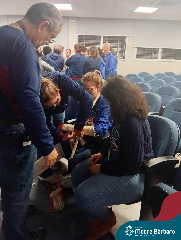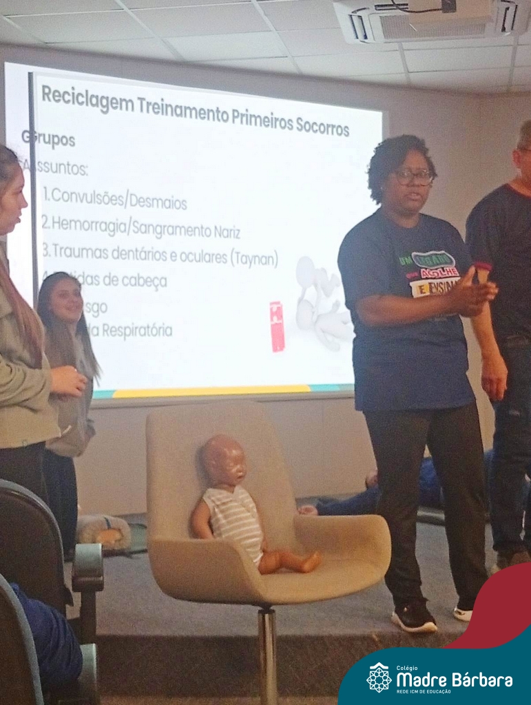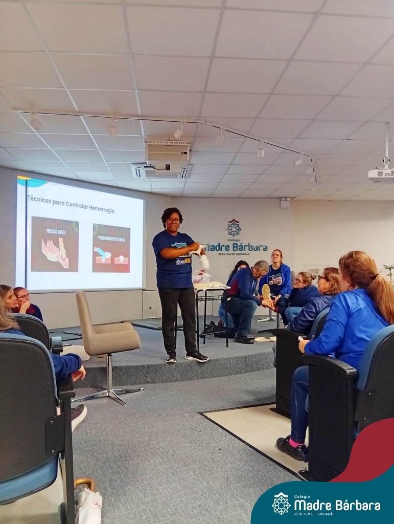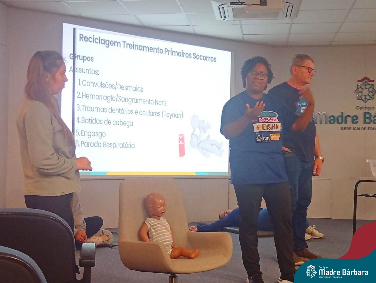 Na noite de segunda-feira (06.10) os colaboradores da Educação Infantil, Anos Iniciais e alguns setores participaram de uma formação conduzida por Taynan de Oliveira, Técnica em Segurança do Trabalho da Rede ICM, que capacitou professores e funcionários para saberem como agir em situações de emergência e urgência, como atenuar a situação até a chegada do atendimento especializado. A iniciativa faz parte da Lei 13.722 conhecida como Lei Lucas. O encontro de segunda abordou com os profissionais os seguintes temas: convulsões, batidas de cabeça, imobilização de possíveis fraturas, engasgo, parada respiratória e hemorragias, com ênfase em sangramento nasal. A iniciativa teve como foco principal a prevenção e a segurança no ambiente escolar, garantindo que todos estejam preparados para lidar com situações críticas de forma segura, rápida e eficiente.