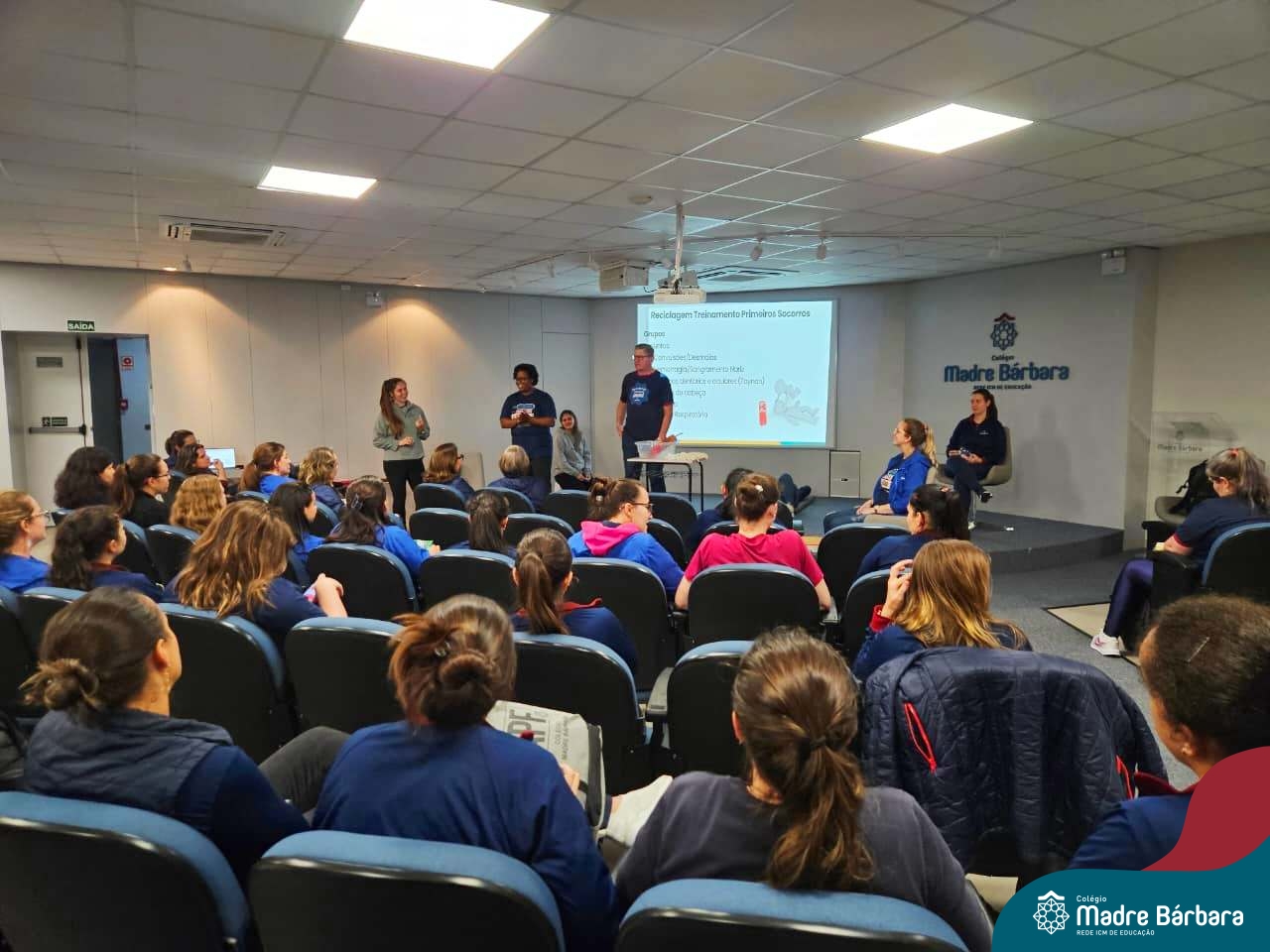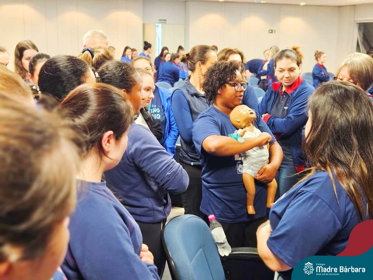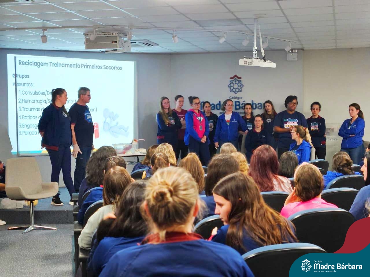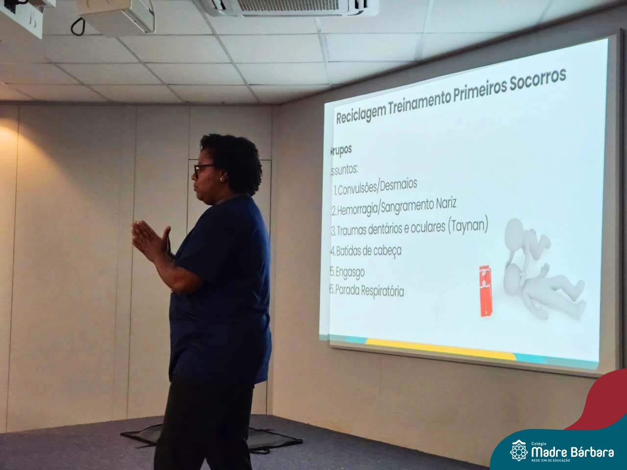 Na noite de segunda-feira (06.10) os colaboradores da Educação Infantil, Anos Iniciais e alguns setores participaram de uma formação conduzida por Taynan de Oliveira, Técnica em Segurança do Trabalho da Rede ICM, que capacitou professores e funcionários para saberem como agir em situações de emergência e urgência, como atenuar a situação até a chegada do atendimento especializado. A iniciativa faz parte da Lei 13.722 conhecida como Lei Lucas. O encontro de segunda abordou com os profissionais os seguintes temas: convulsões, batidas de cabeça, imobilização de possíveis fraturas, engasgo, parada respiratória e hemorragias, com ênfase em sangramento nasal. A iniciativa teve como foco principal a prevenção e a segurança no ambiente escolar, garantindo que todos estejam preparados para lidar com situações críticas de forma segura, rápida e eficiente.