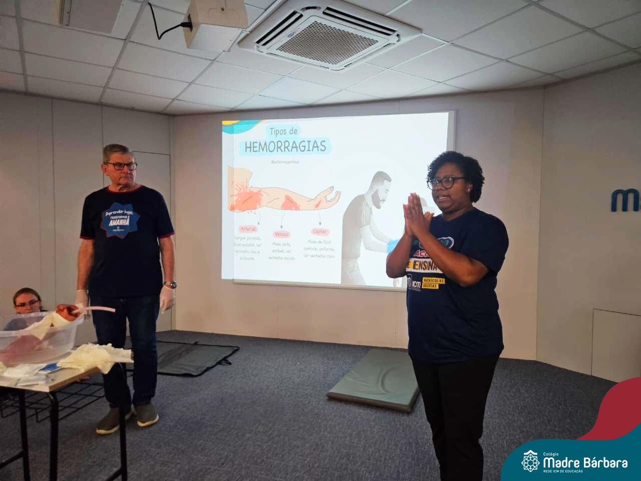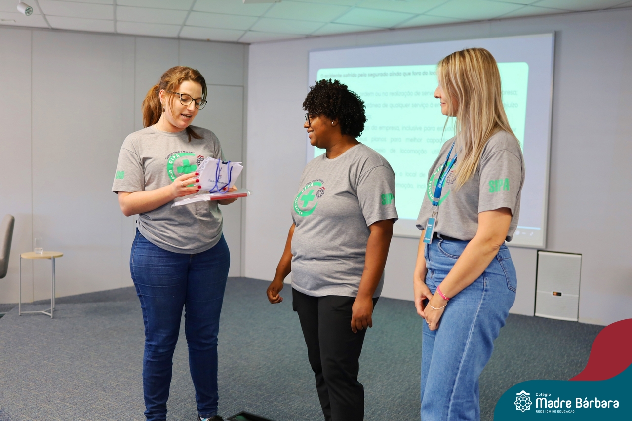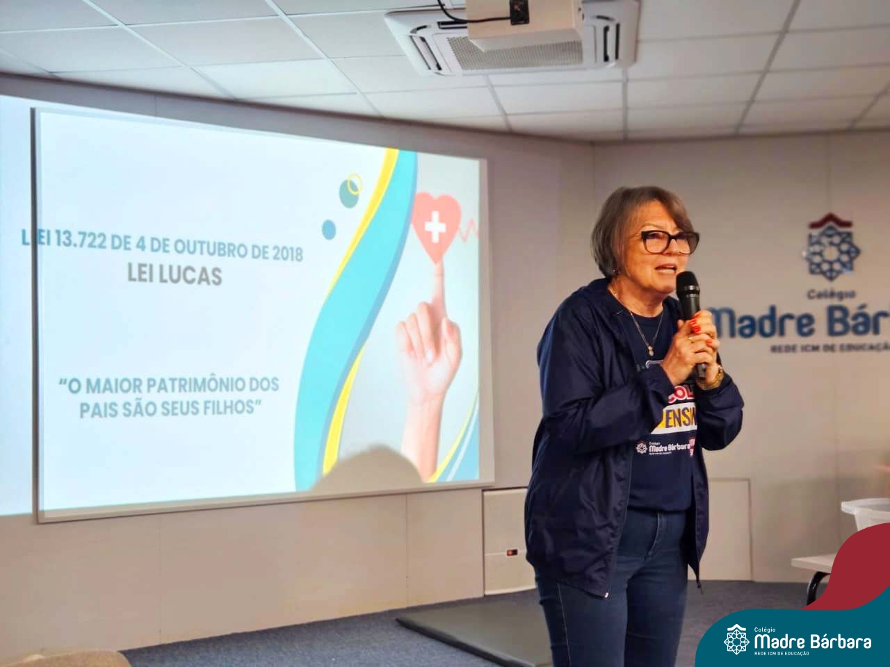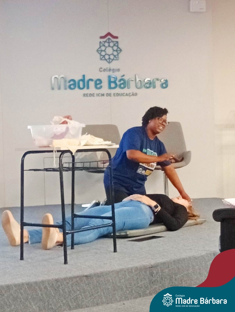 Na noite de segunda-feira (06.10) os colaboradores da Educação Infantil, Anos Iniciais e alguns setores participaram de uma formação conduzida por Taynan de Oliveira, Técnica em Segurança do Trabalho da Rede ICM, que capacitou professores e funcionários para saberem como agir em situações de emergência e urgência, como atenuar a situação até a chegada do atendimento especializado. A iniciativa faz parte da Lei 13.722 conhecida como Lei Lucas. O encontro de segunda abordou com os profissionais os seguintes temas: convulsões, batidas de cabeça, imobilização de possíveis fraturas, engasgo, parada respiratória e hemorragias, com ênfase em sangramento nasal. A iniciativa teve como foco principal a prevenção e a segurança no ambiente escolar, garantindo que todos estejam preparados para lidar com situações críticas de forma segura, rápida e eficiente.