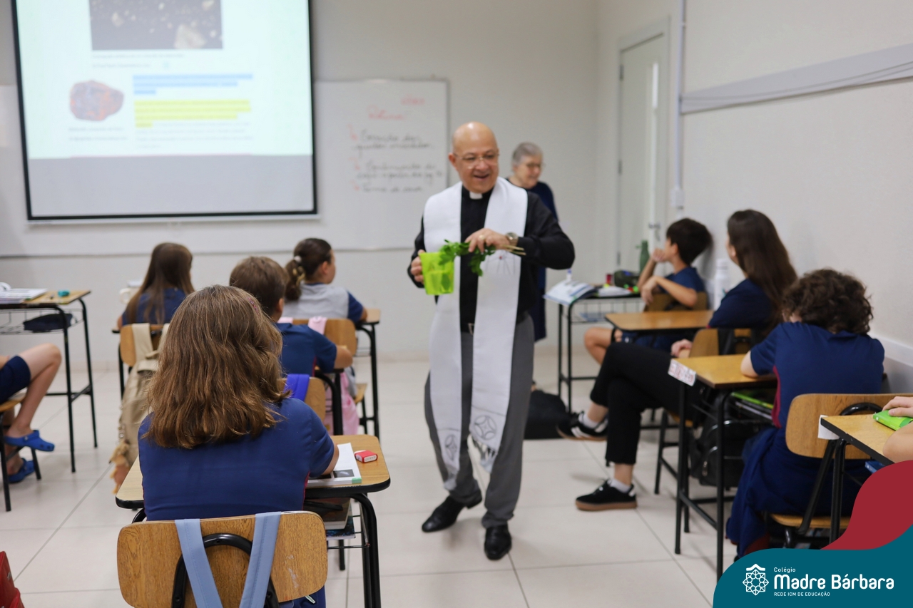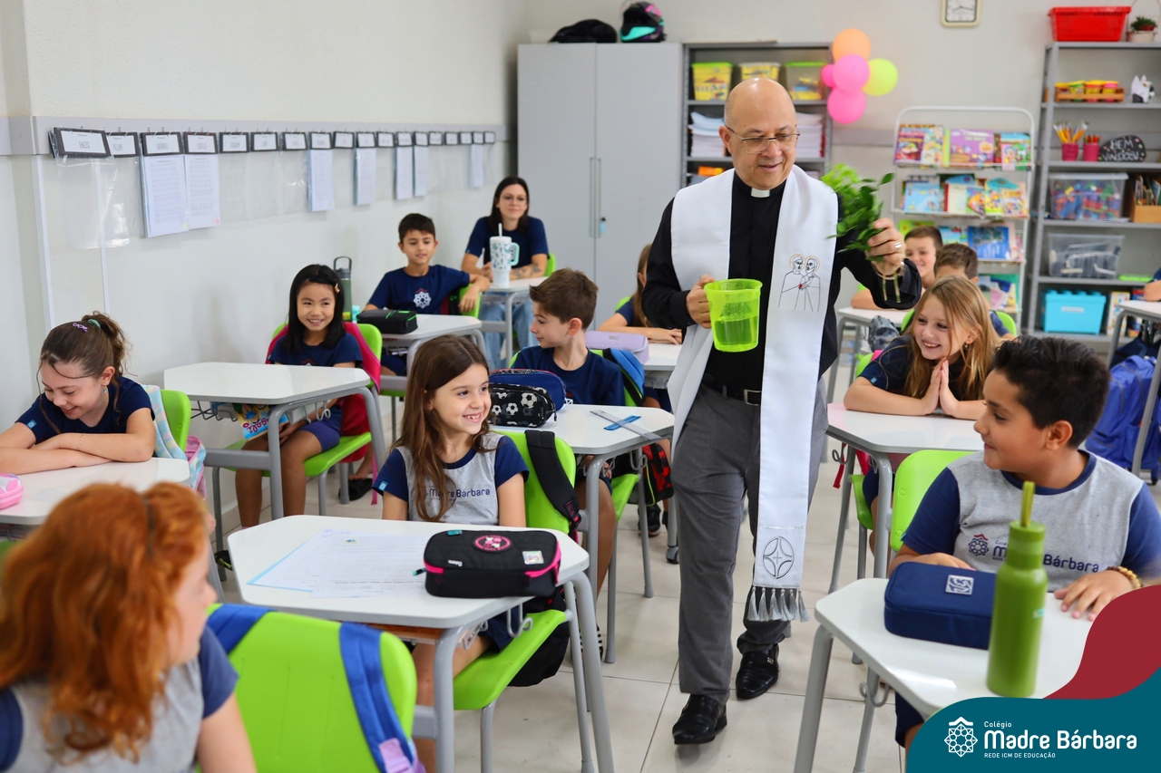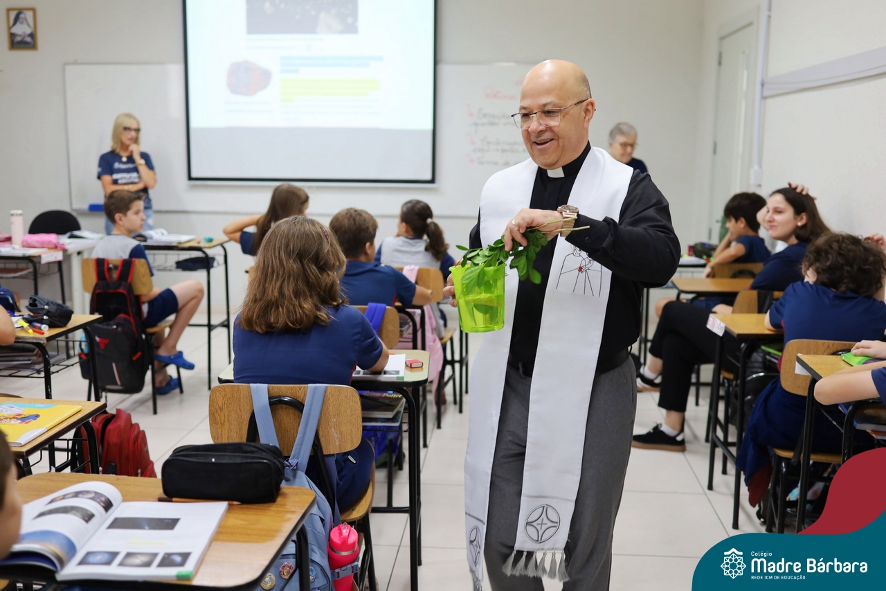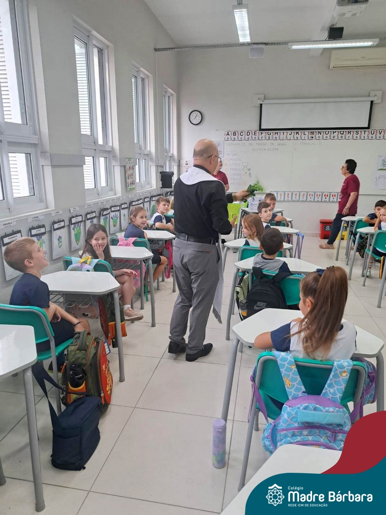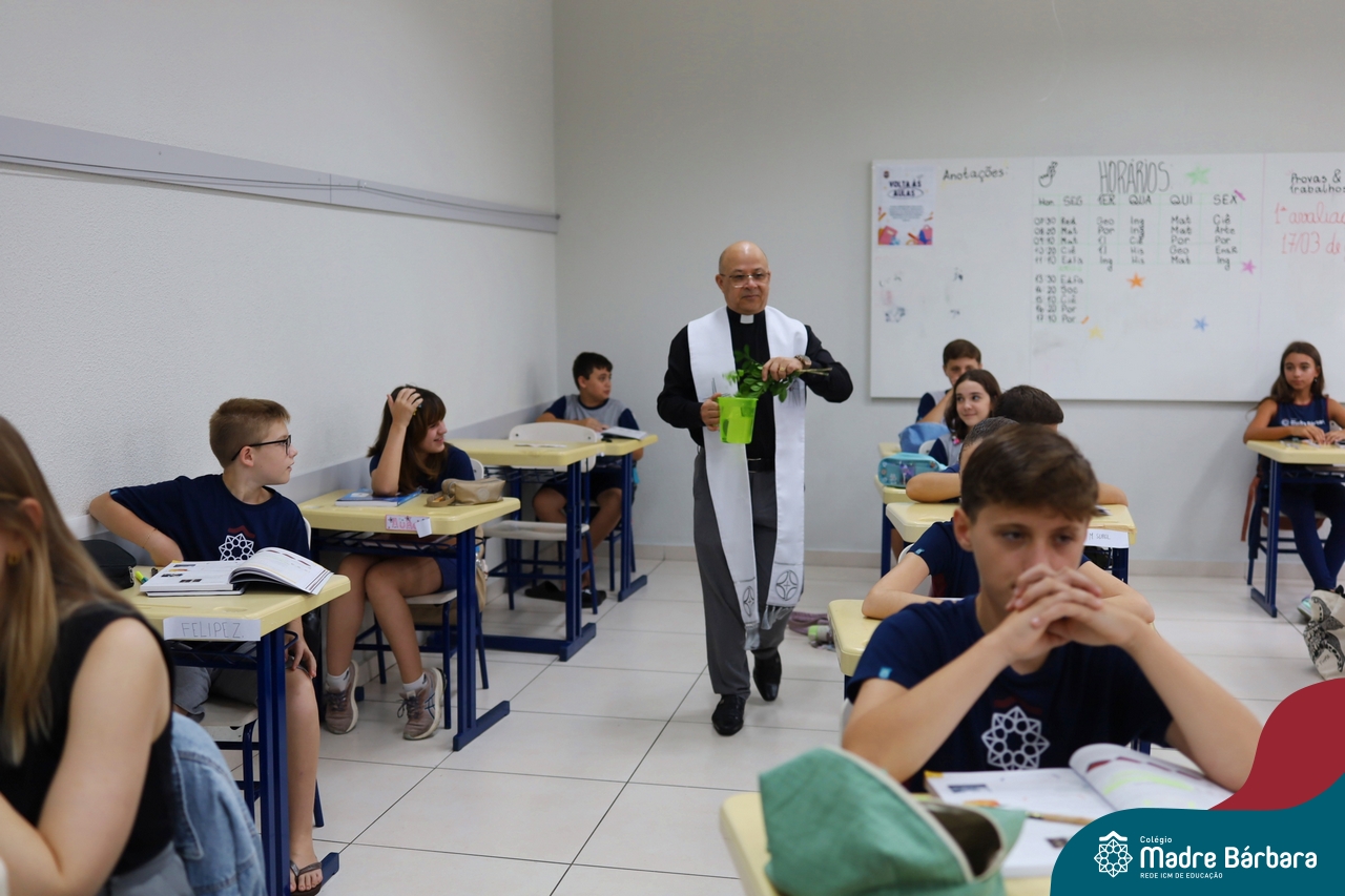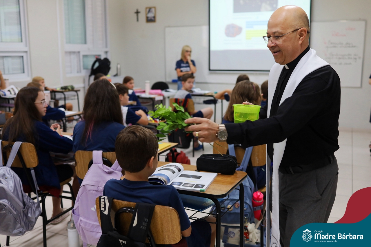 Na manhã desta quinta-feira, 5 de março, o Colégio Madre Bárbara – Rede ICM, realizou um momento especial de fé e acolhida para marcar o início do ano letivo. A tradicional Bênção do Ano Letivo foi conduzida pelos padres Antônio Puhl, Rogério Kunrath e Gesildo Torres Monteiro. Durante a visita, os sacerdotes percorreram todas as salas de aula, contemplando estudantes de todos os níveis de ensino, além de passarem pelos diversos setores do Colégio. Em cada espaço, realizaram orações, palavras de bênção e a água benta, desejando um ano letivo repleto de aprendizado, convivência e crescimento humano e espiritual.