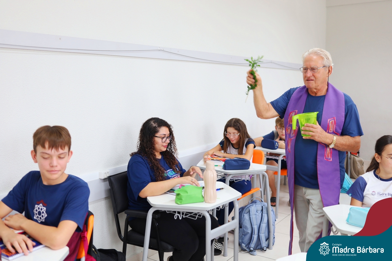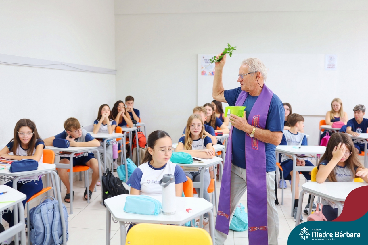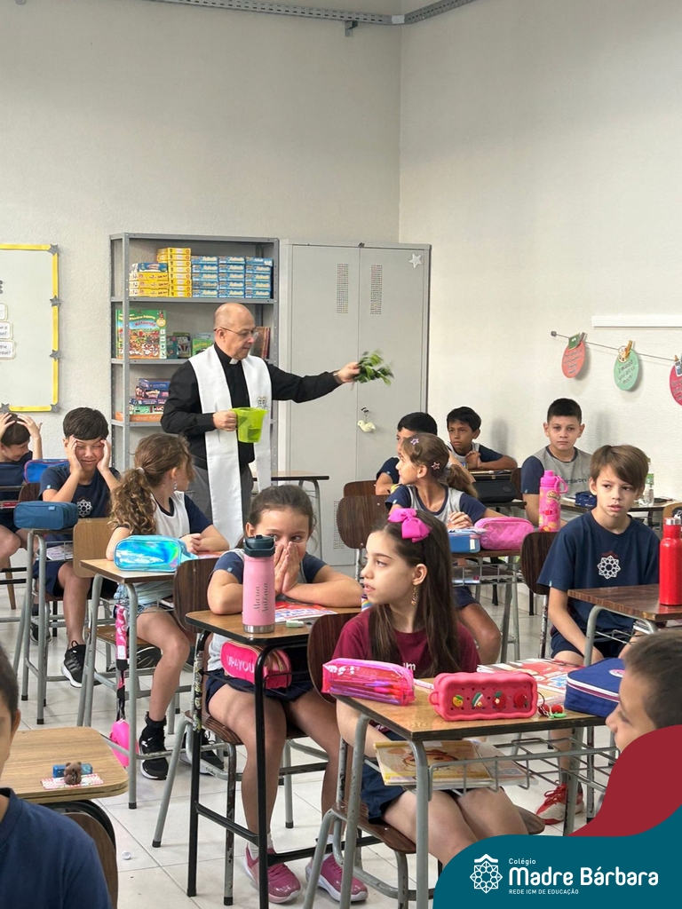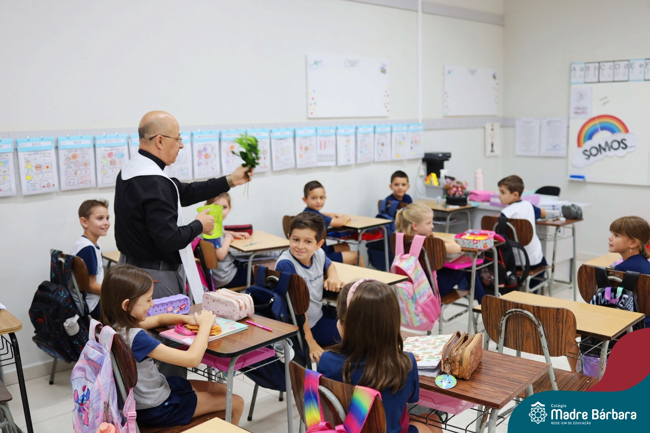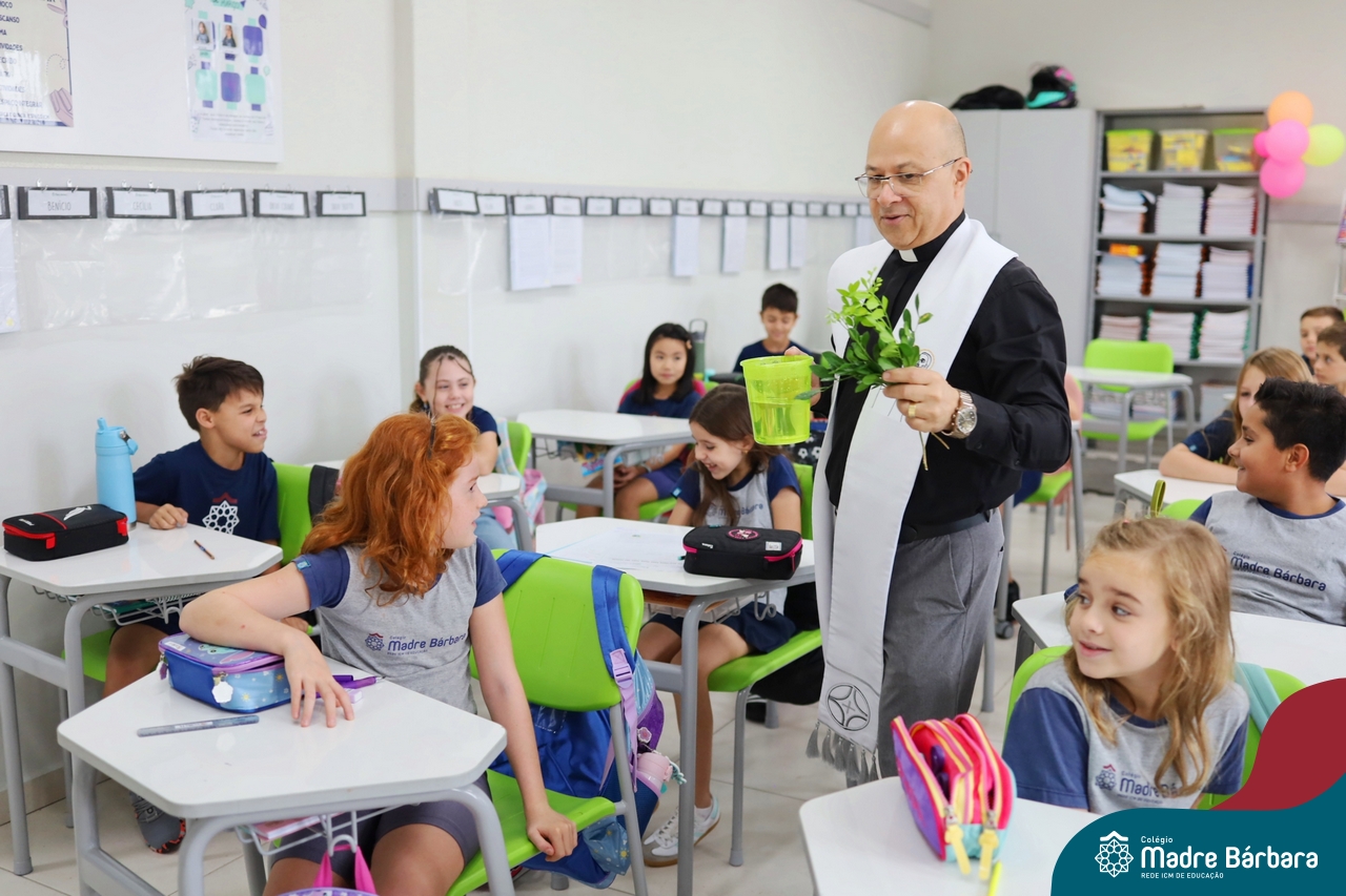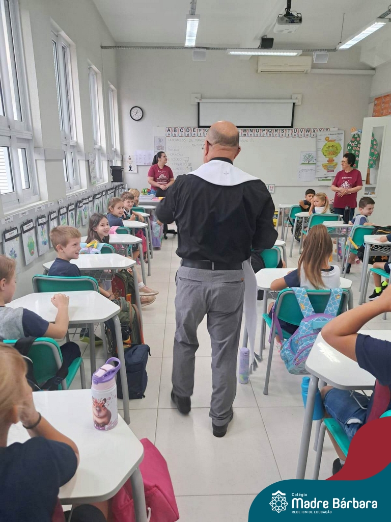Na manhã desta quinta-feira, 5 de março, o Colégio Madre Bárbara – Rede ICM, realizou um momento especial de fé e acolhida para marcar o início do ano letivo. A tradicional Bênção do Ano Letivo foi conduzida pelos padres Antônio Puhl, Rogério Kunrath e Gesildo Torres Monteiro. Durante a visita, os sacerdotes percorreram todas as salas de aula, contemplando estudantes de todos os níveis de ensino, além de passarem pelos diversos setores do Colégio. Em cada espaço, realizaram orações, palavras de bênção e a água benta, desejando um ano letivo repleto de aprendizado, convivência e crescimento humano e espiritual.