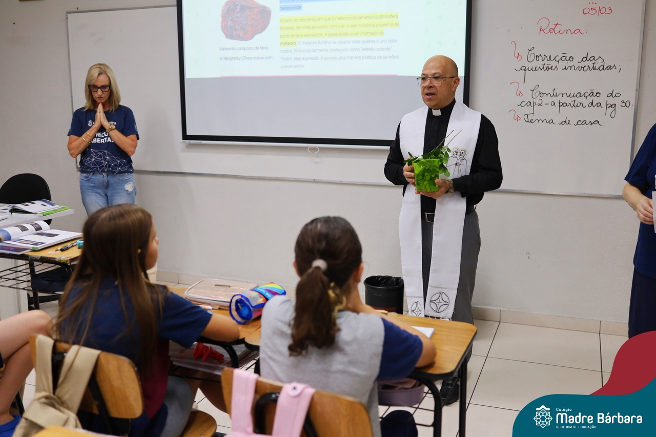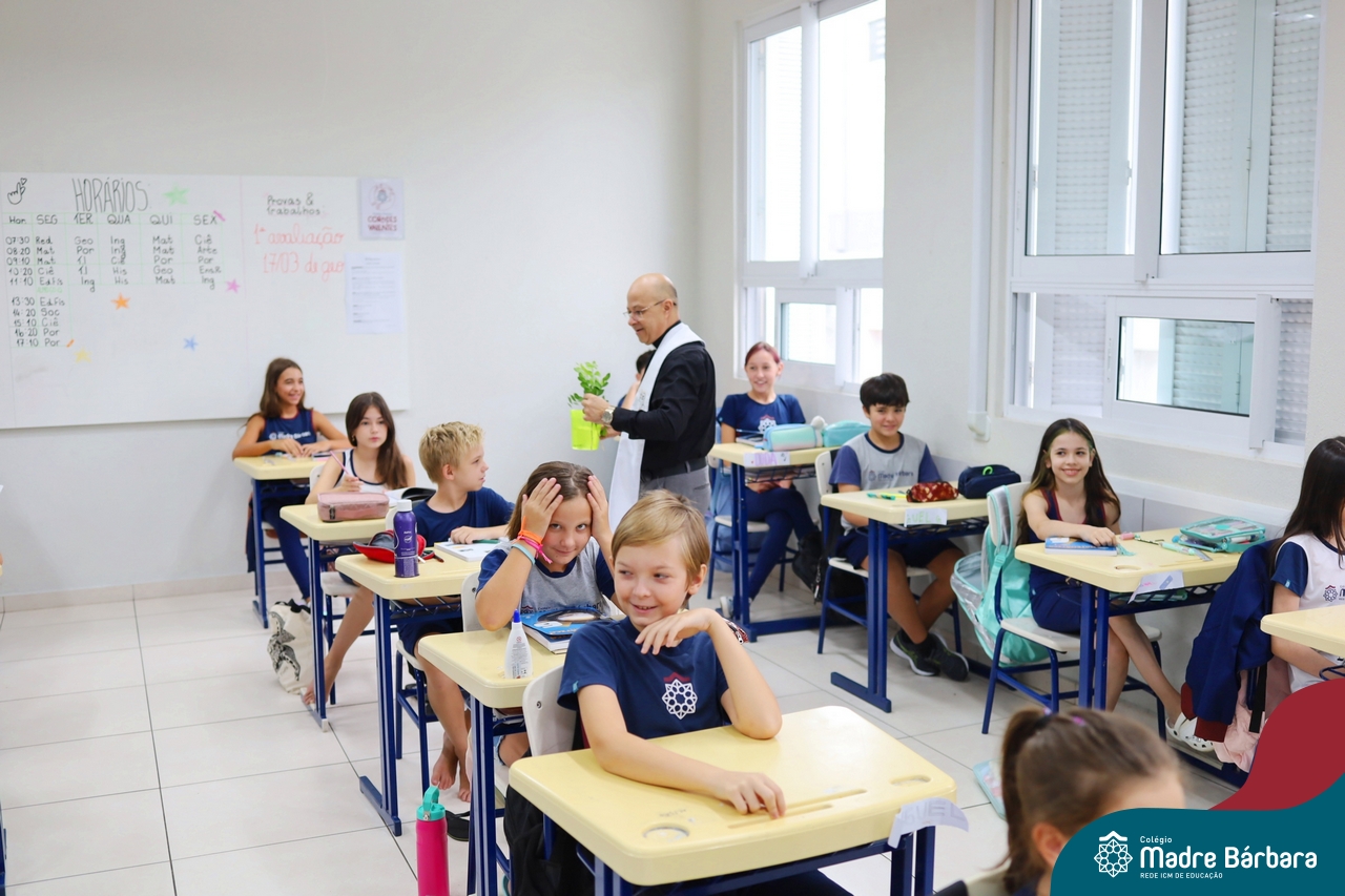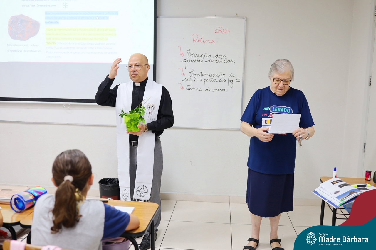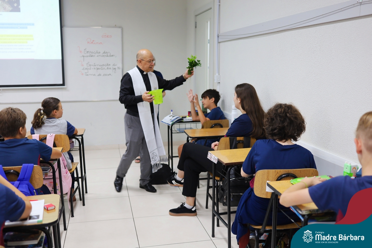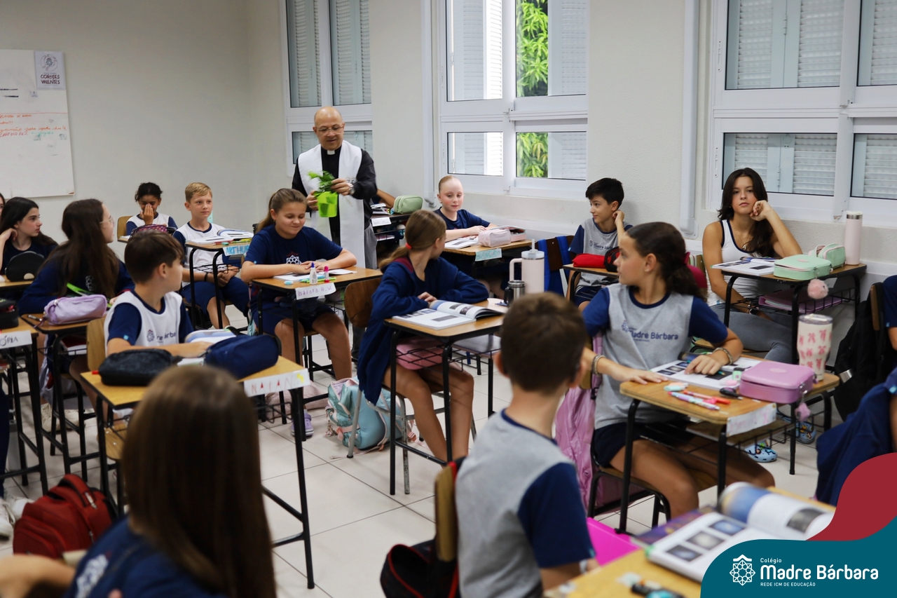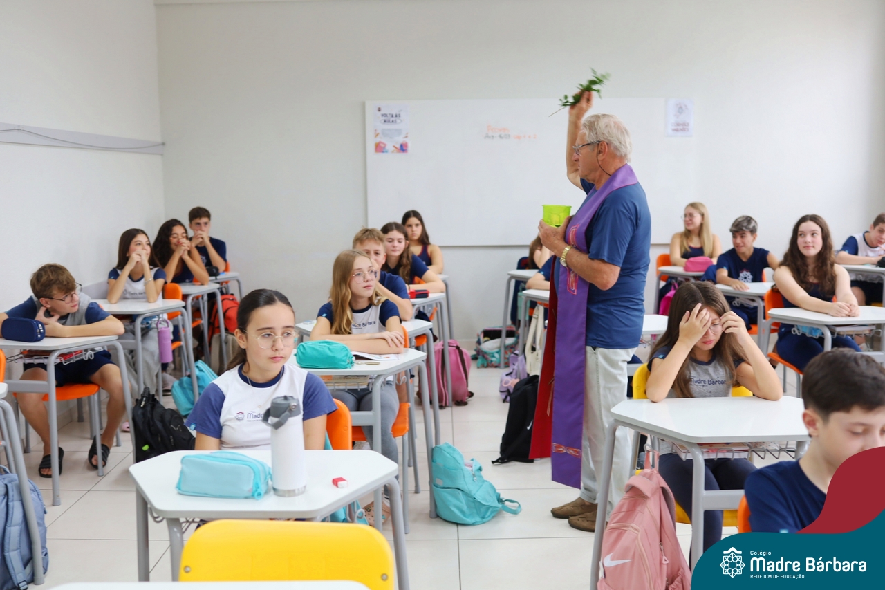 Na manhã desta quinta-feira, 5 de março, o Colégio Madre Bárbara – Rede ICM, realizou um momento especial de fé e acolhida para marcar o início do ano letivo. A tradicional Bênção do Ano Letivo foi conduzida pelos padres Antônio Puhl, Rogério Kunrath e Gesildo Torres Monteiro. Durante a visita, os sacerdotes percorreram todas as salas de aula, contemplando estudantes de todos os níveis de ensino, além de passarem pelos diversos setores do Colégio. Em cada espaço, realizaram orações, palavras de bênção e a água benta, desejando um ano letivo repleto de aprendizado, convivência e crescimento humano e espiritual.