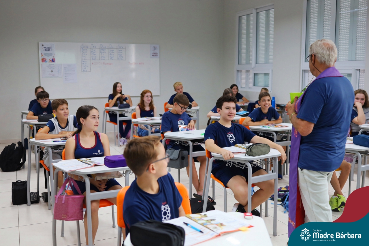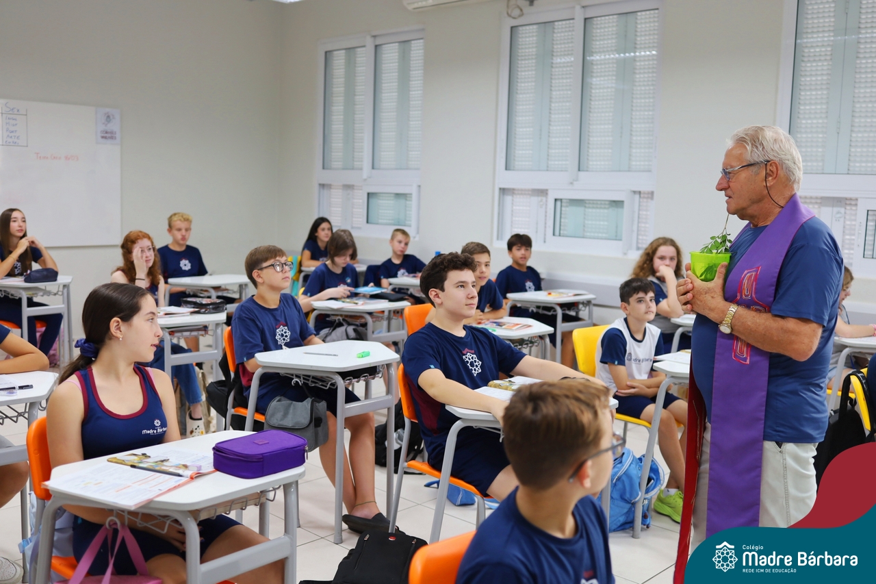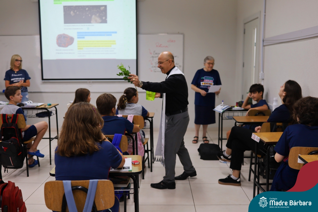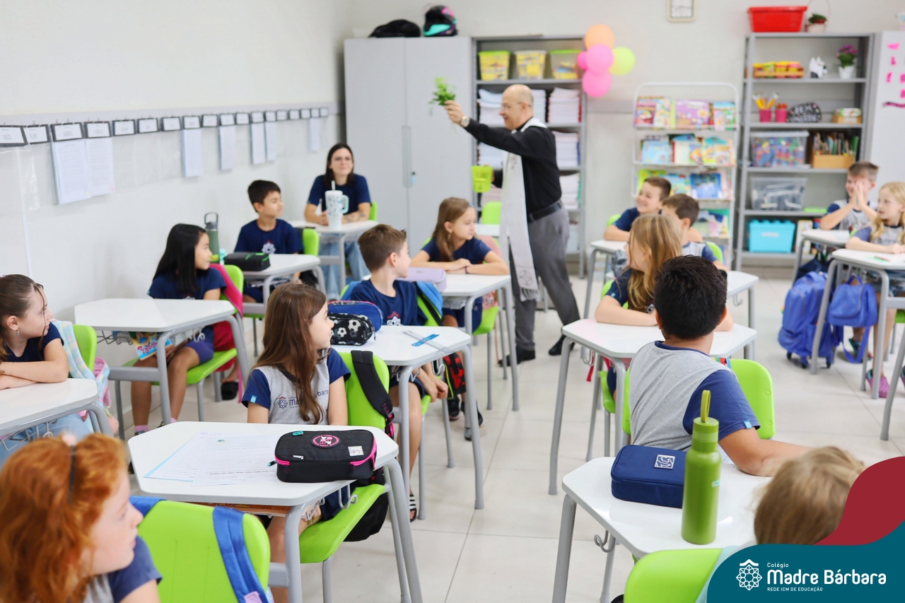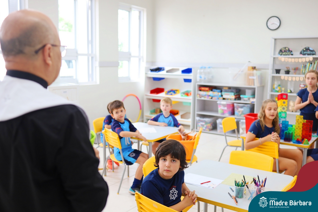 Na manhã desta quinta-feira, 5 de março, o Colégio Madre Bárbara – Rede ICM, realizou um momento especial de fé e acolhida para marcar o início do ano letivo. A tradicional Bênção do Ano Letivo foi conduzida pelos padres Antônio Puhl, Rogério Kunrath e Gesildo Torres Monteiro. Durante a visita, os sacerdotes percorreram todas as salas de aula, contemplando estudantes de todos os níveis de ensino, além de passarem pelos diversos setores do Colégio. Em cada espaço, realizaram orações, palavras de bênção e a água benta, desejando um ano letivo repleto de aprendizado, convivência e crescimento humano e espiritual.