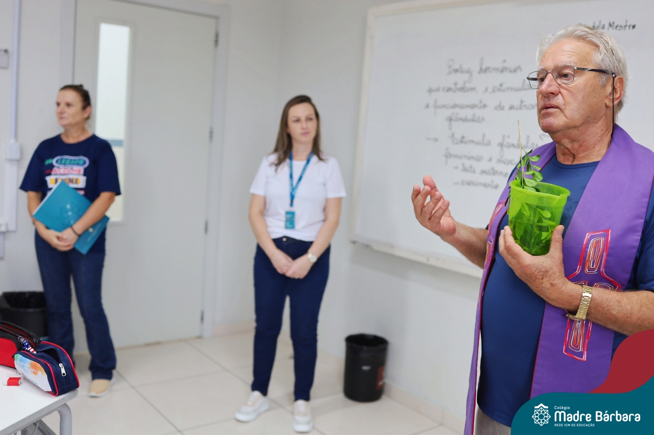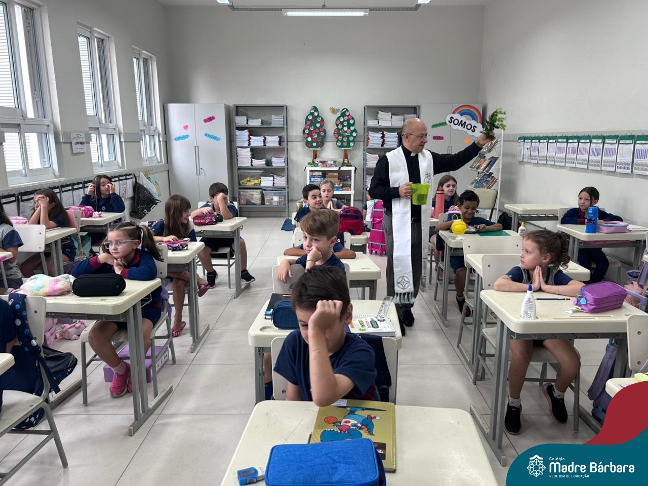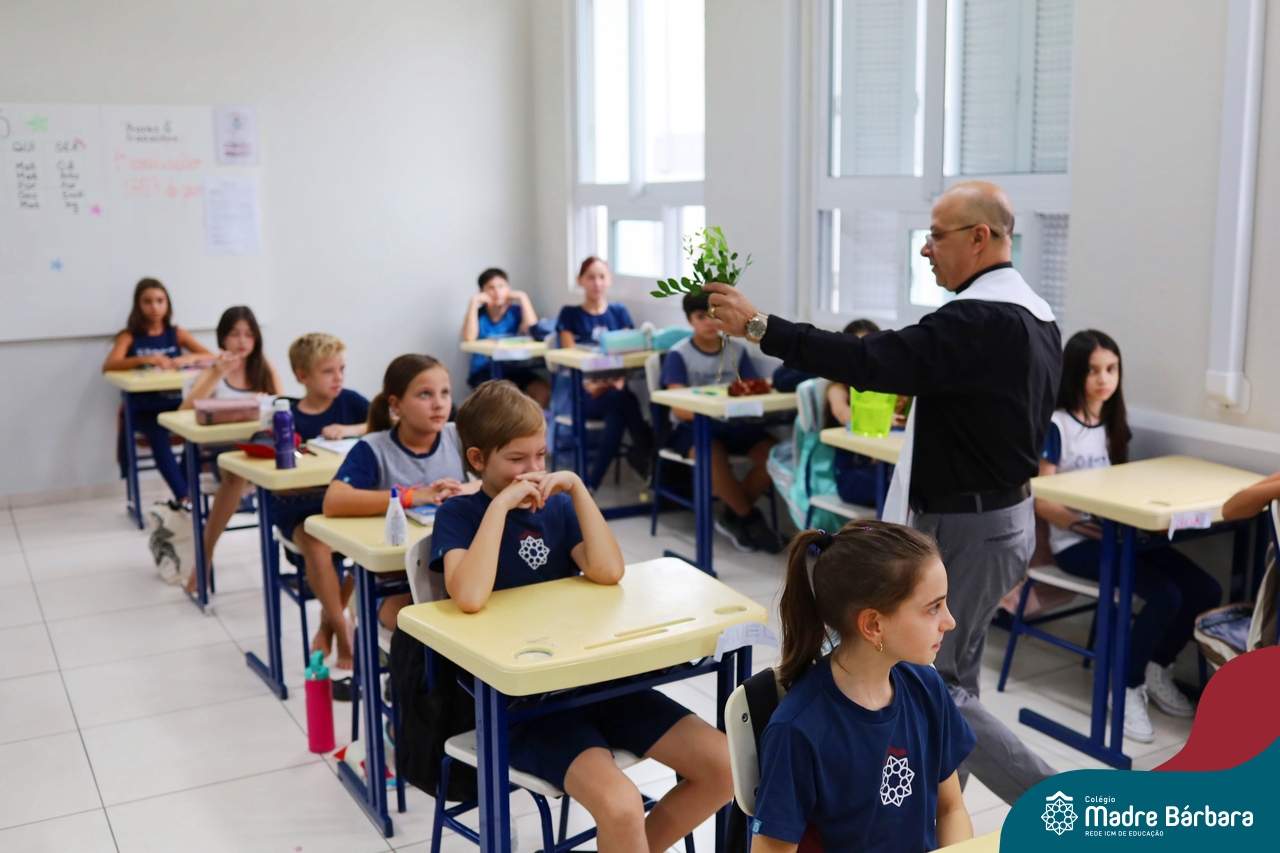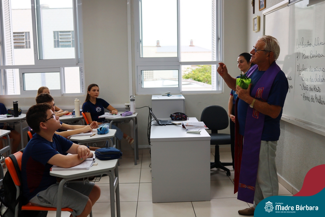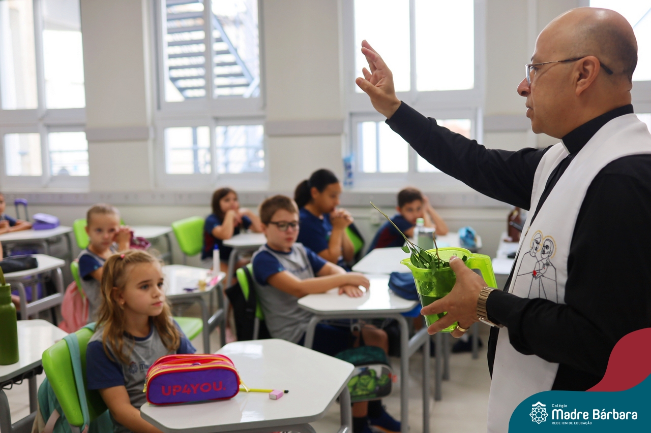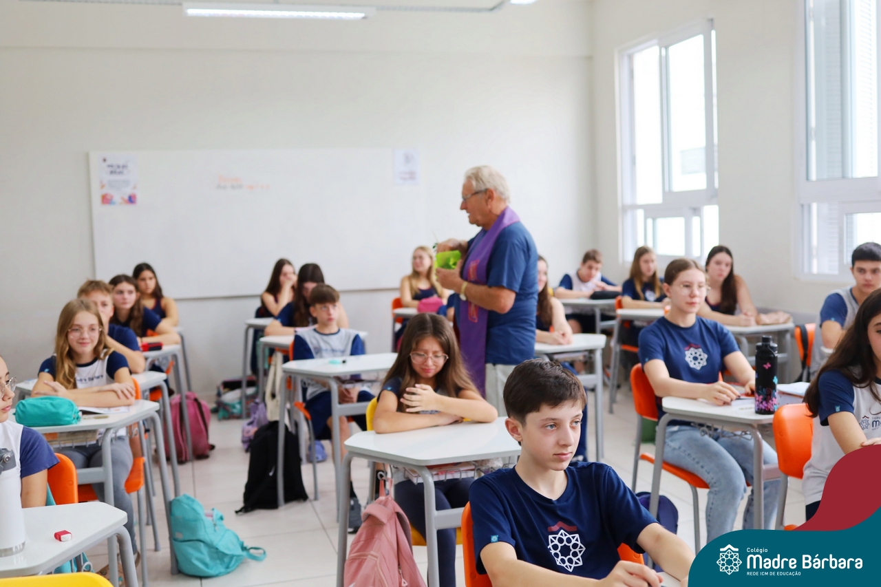 Na manhã desta quinta-feira, 5 de março, o Colégio Madre Bárbara – Rede ICM, realizou um momento especial de fé e acolhida para marcar o início do ano letivo. A tradicional Bênção do Ano Letivo foi conduzida pelos padres Antônio Puhl, Rogério Kunrath e Gesildo Torres Monteiro. Durante a visita, os sacerdotes percorreram todas as salas de aula, contemplando estudantes de todos os níveis de ensino, além de passarem pelos diversos setores do Colégio. Em cada espaço, realizaram orações, palavras de bênção e a água benta, desejando um ano letivo repleto de aprendizado, convivência e crescimento humano e espiritual.
