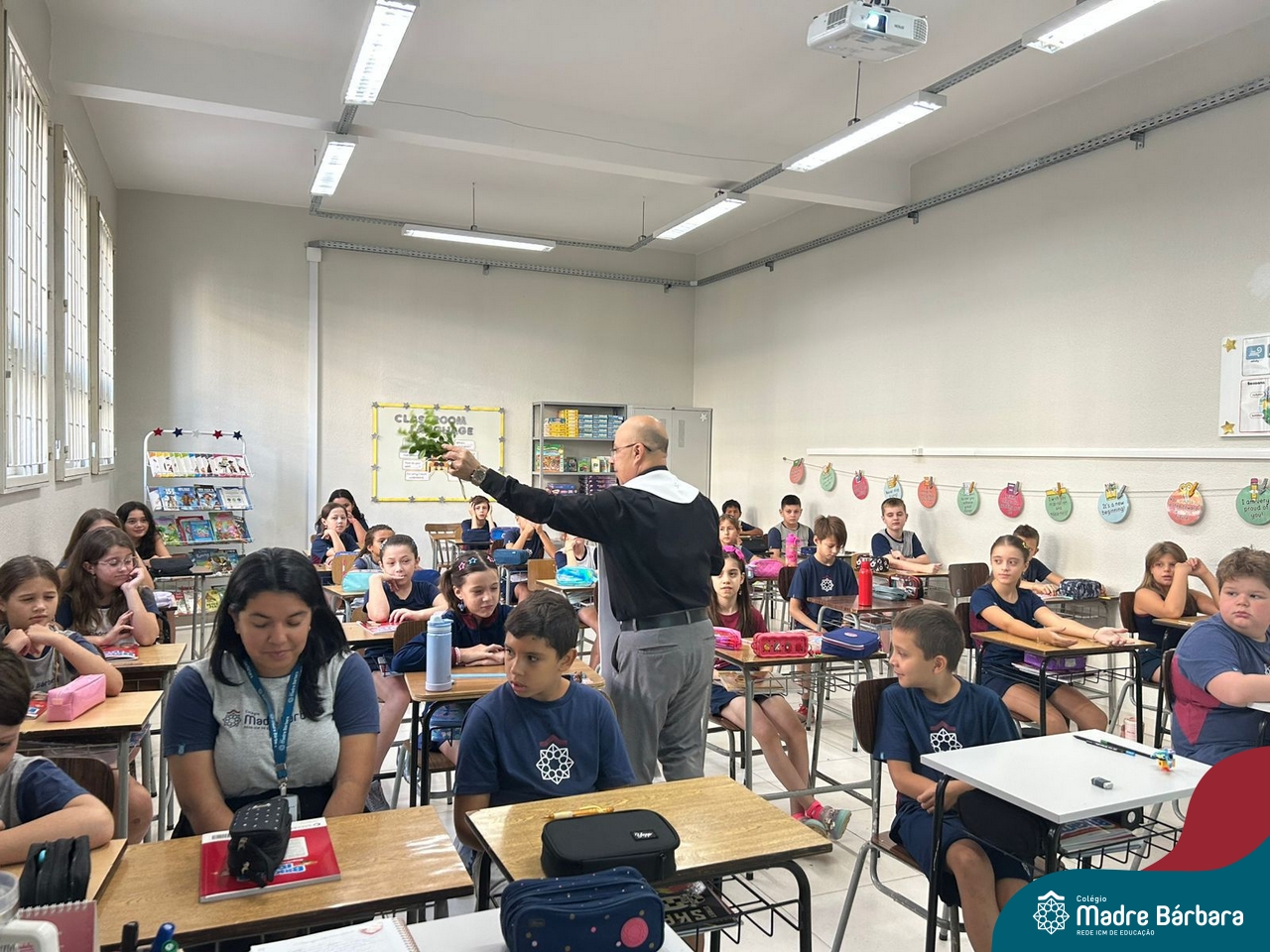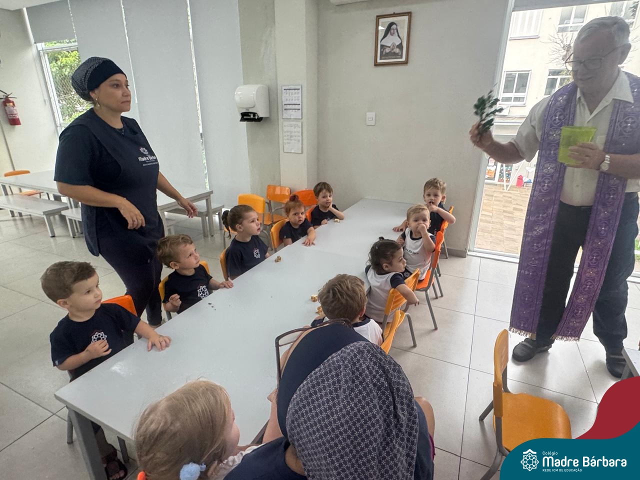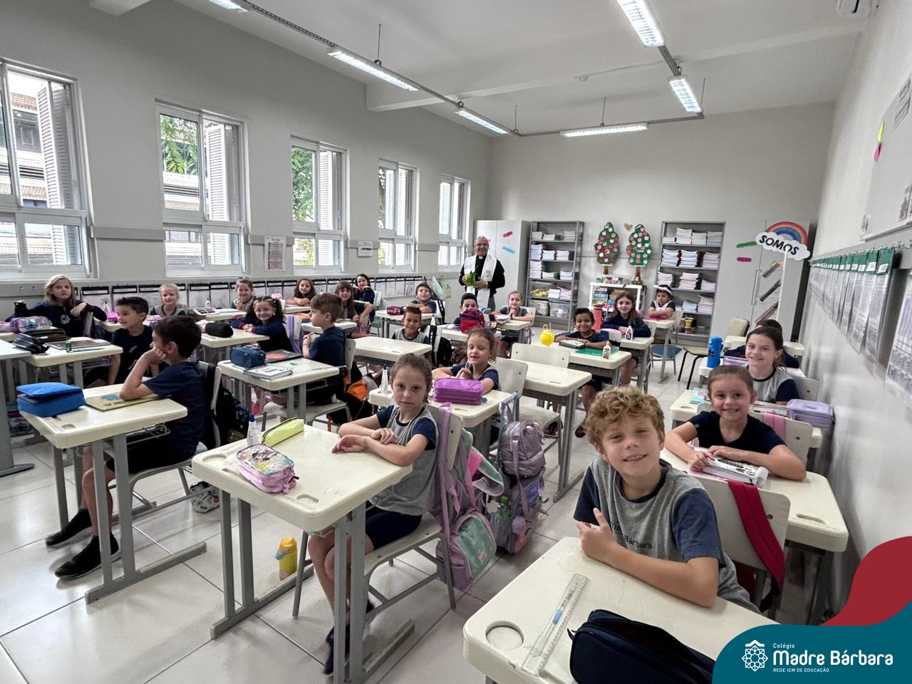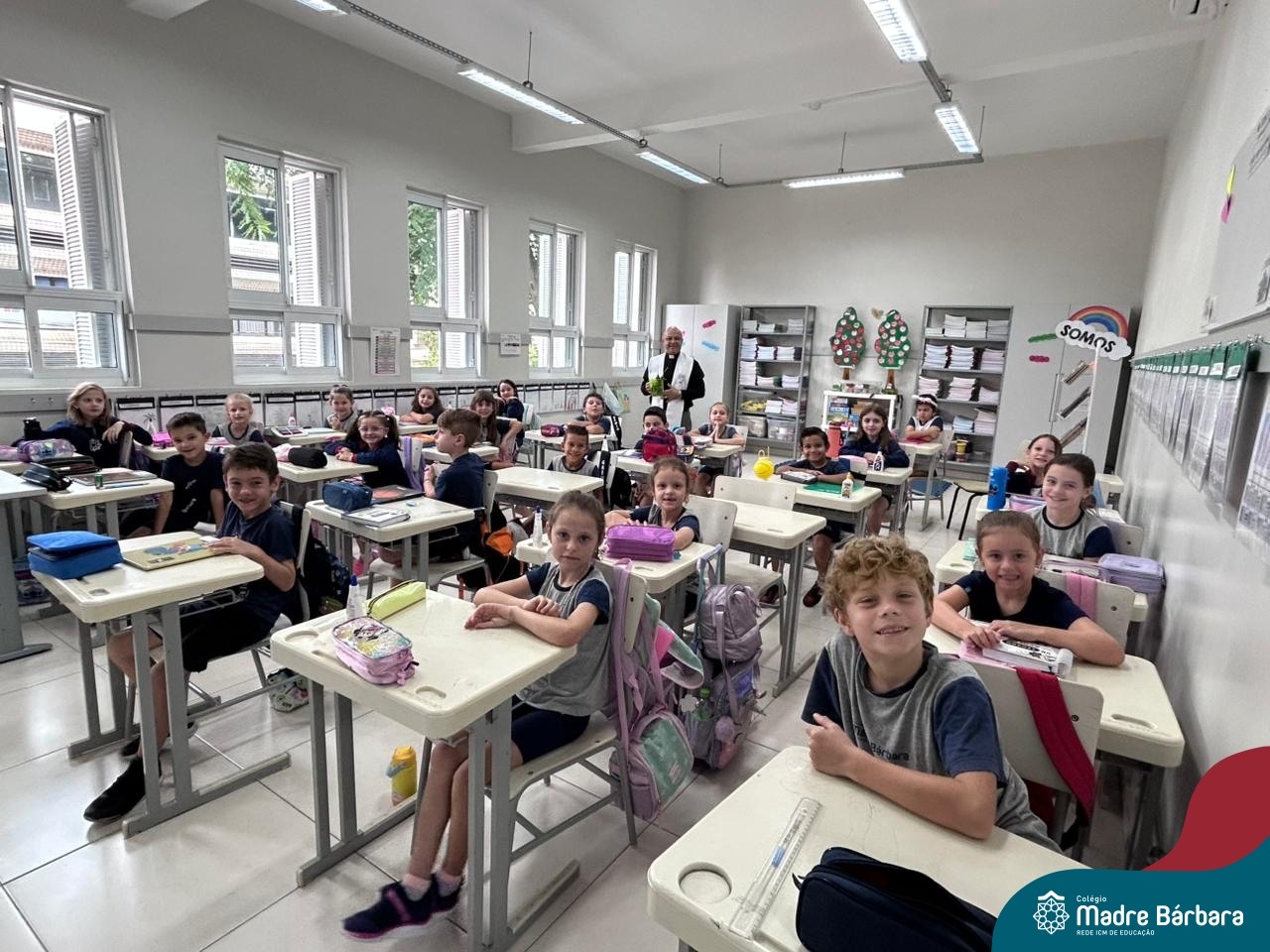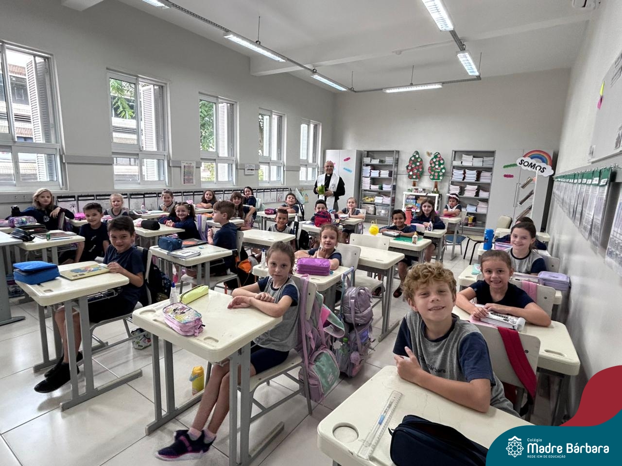 Na manhã desta quinta-feira, 5 de março, o Colégio Madre Bárbara – Rede ICM, realizou um momento especial de fé e acolhida para marcar o início do ano letivo. A tradicional Bênção do Ano Letivo foi conduzida pelos padres Antônio Puhl, Rogério Kunrath e Gesildo Torres Monteiro. Durante a visita, os sacerdotes percorreram todas as salas de aula, contemplando estudantes de todos os níveis de ensino, além de passarem pelos diversos setores do Colégio. Em cada espaço, realizaram orações, palavras de bênção e a água benta, desejando um ano letivo repleto de aprendizado, convivência e crescimento humano e espiritual.
