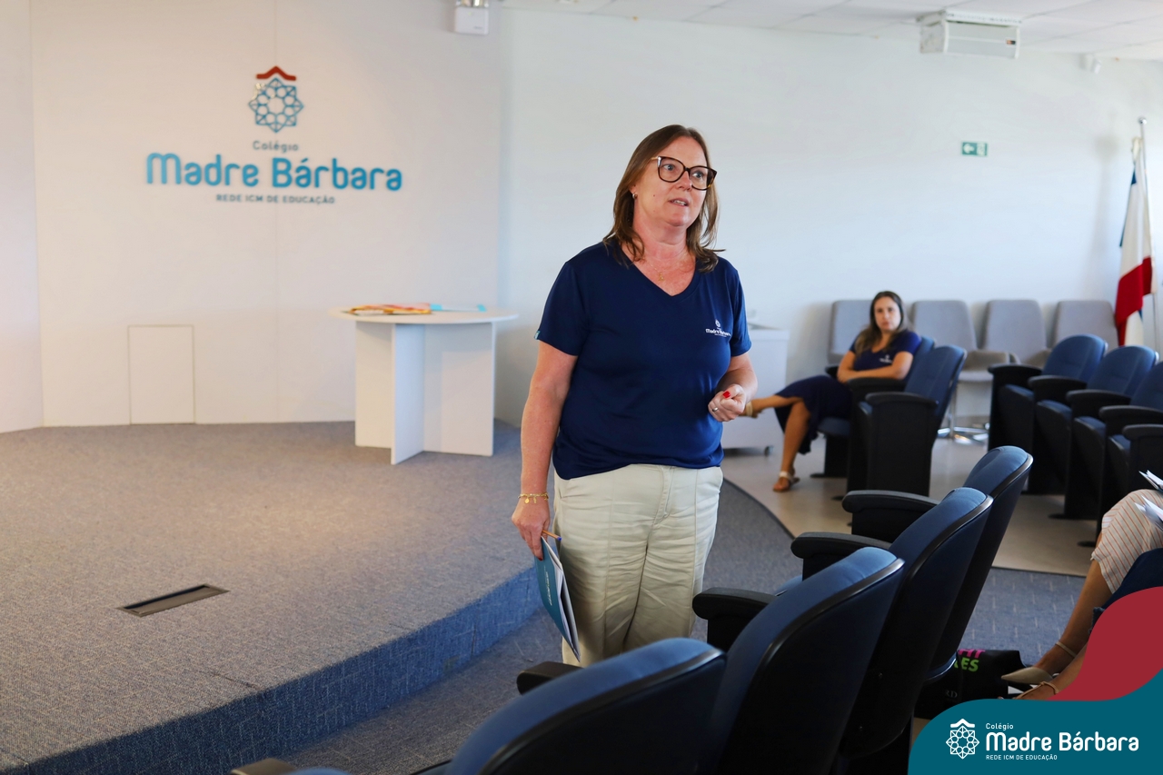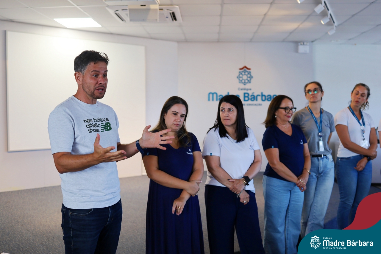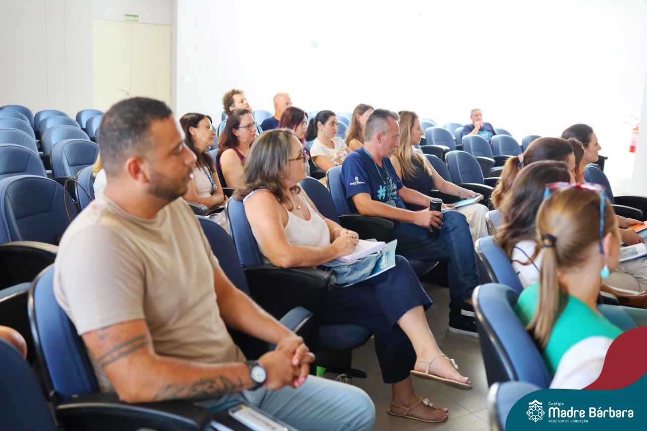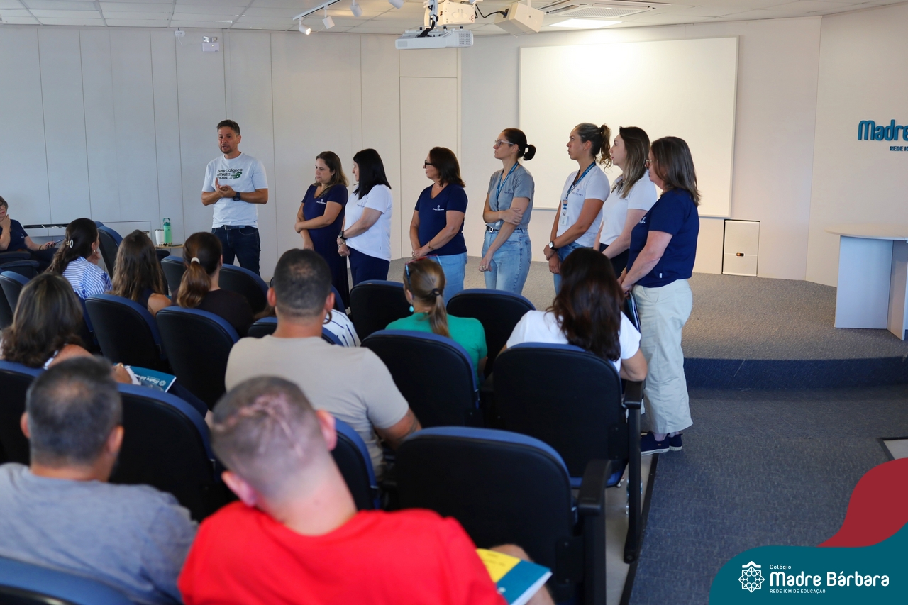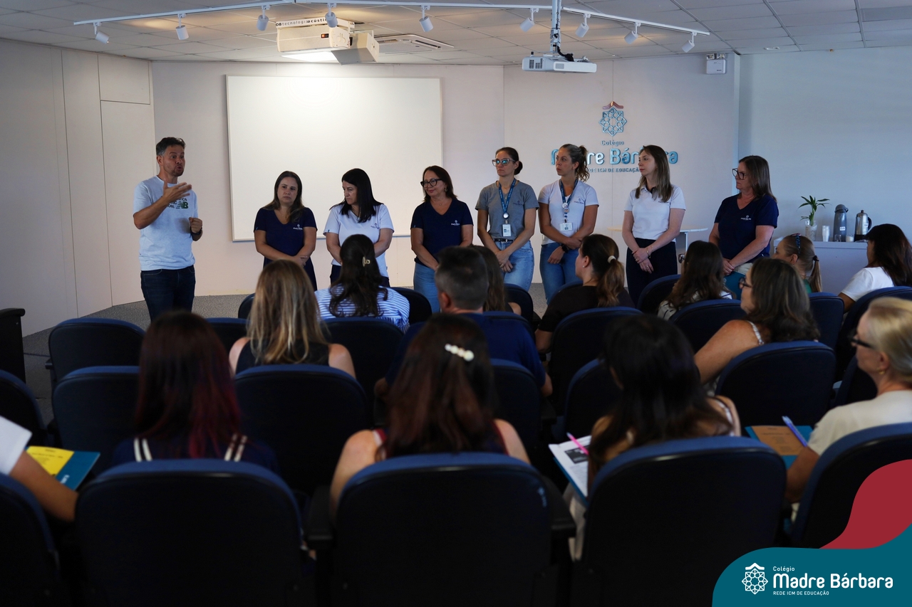 No turno da tarde, a jornada seguiu no Colégio com a reunião pedagógica, momento dedicado ao diálogo, à partilha de ideias e ao planejamento. Houve a apresentação dos setores, promovendo maior integração entre as equipes e compreensão do trabalho coletivo. A programação contou ainda com a fala da Pastoral Escolar, que iluminou a missão institucional e reforçou o chamado a viver a missão com propósito.