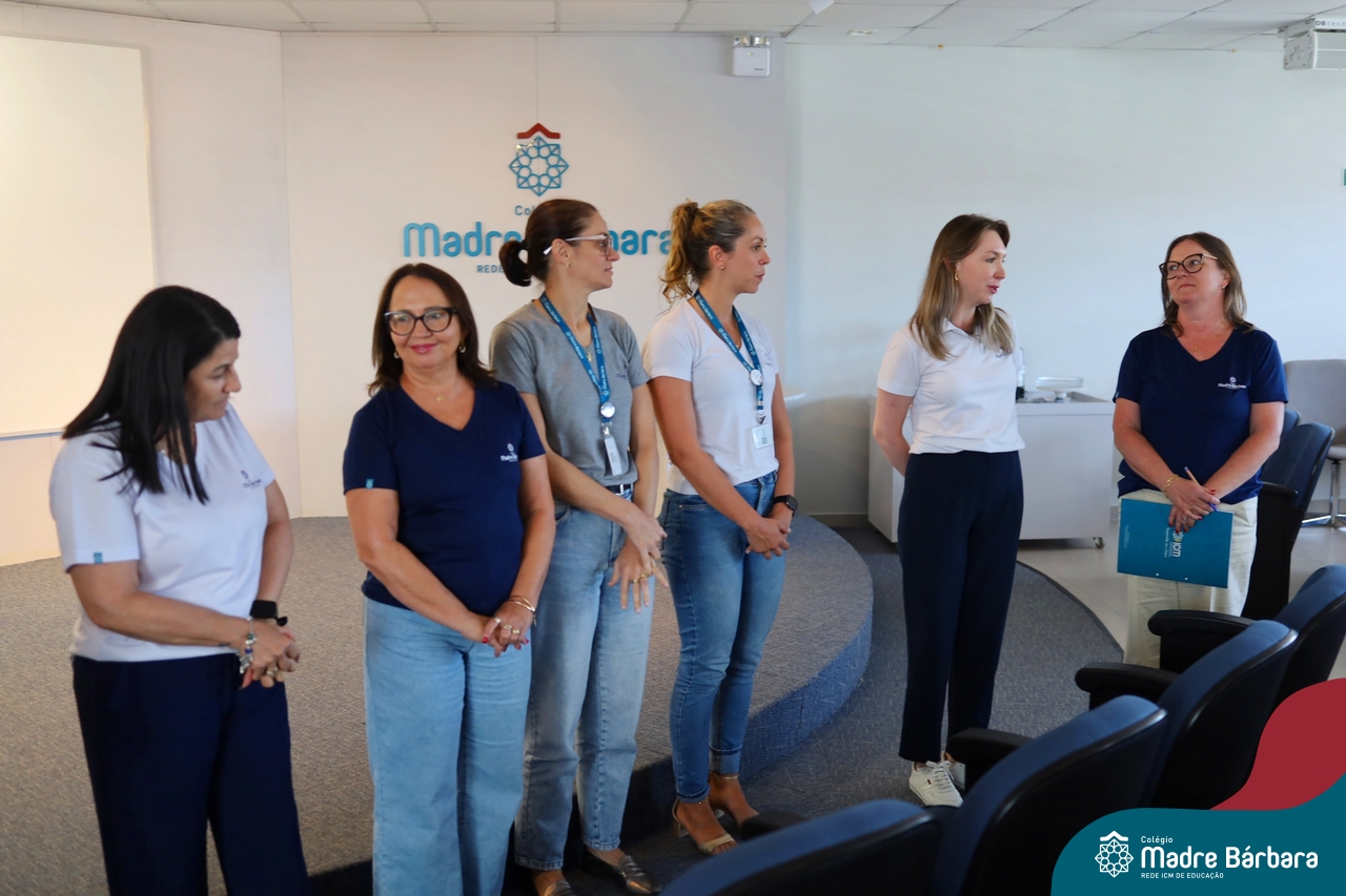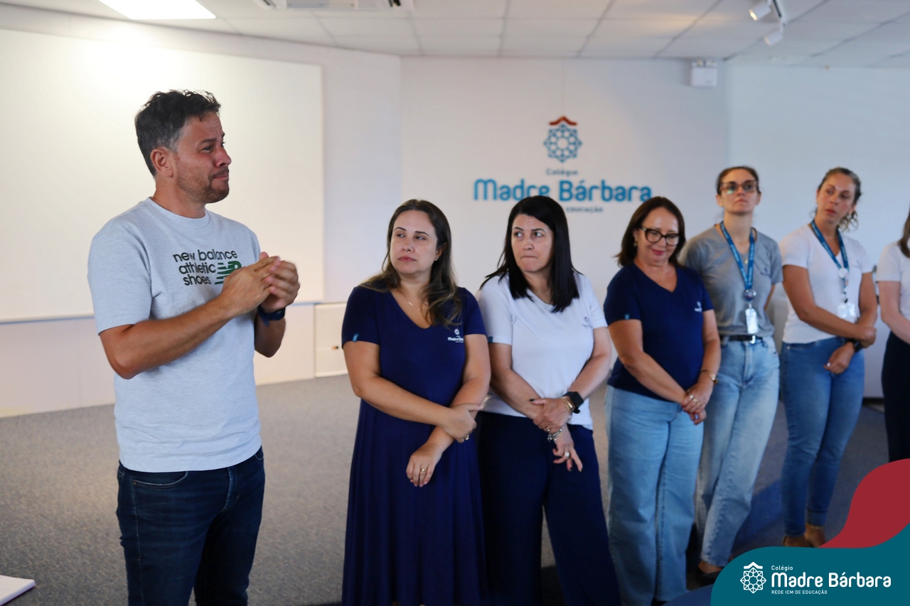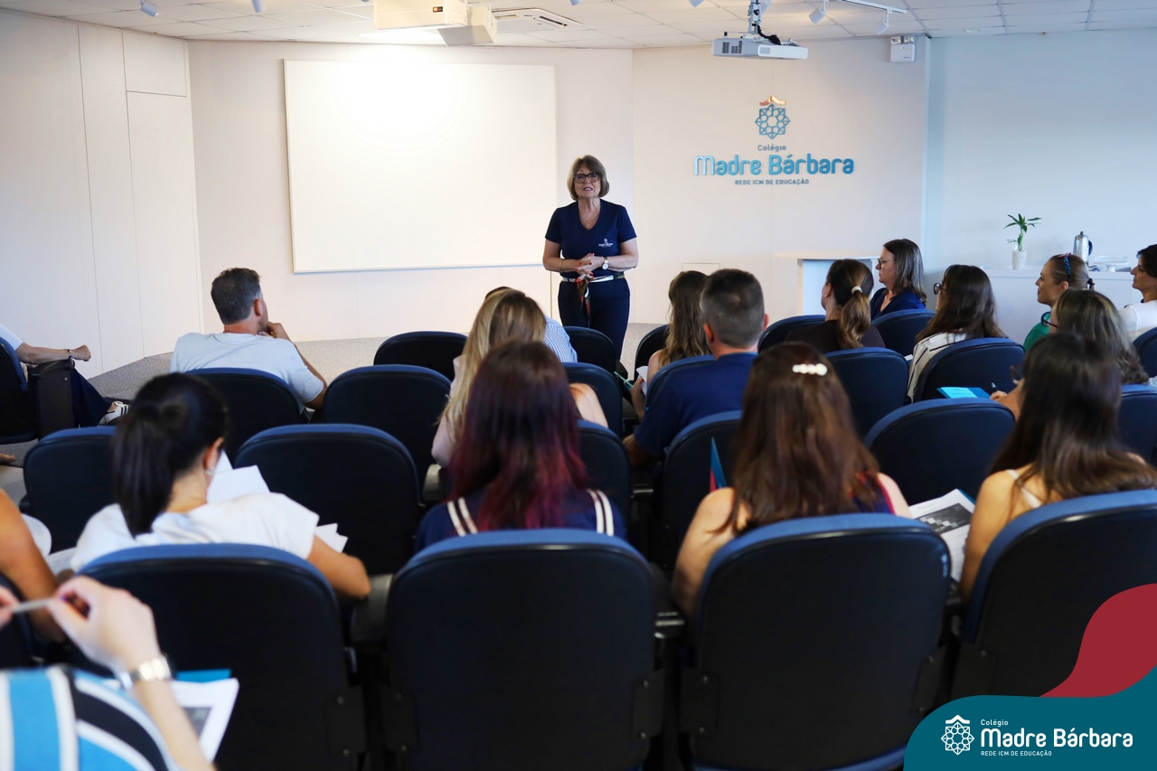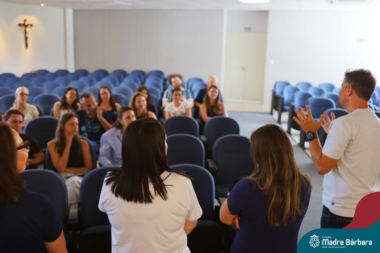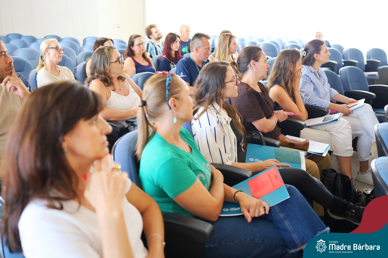 No turno da tarde, a jornada seguiu no Colégio com a reunião pedagógica, momento dedicado ao diálogo, à partilha de ideias e ao planejamento. Houve a apresentação dos setores, promovendo maior integração entre as equipes e compreensão do trabalho coletivo. A programação contou ainda com a fala da Pastoral Escolar, que iluminou a missão institucional e reforçou o chamado a viver a missão com propósito.