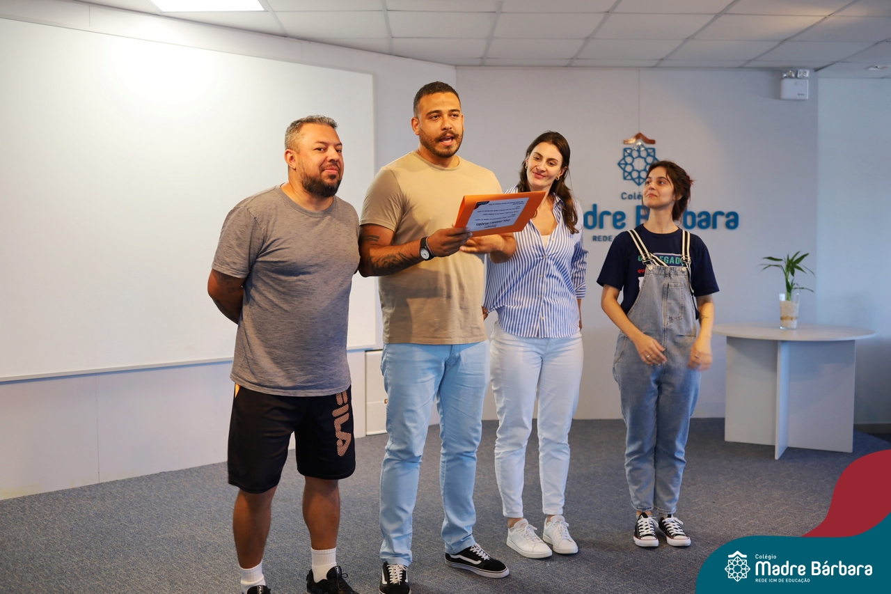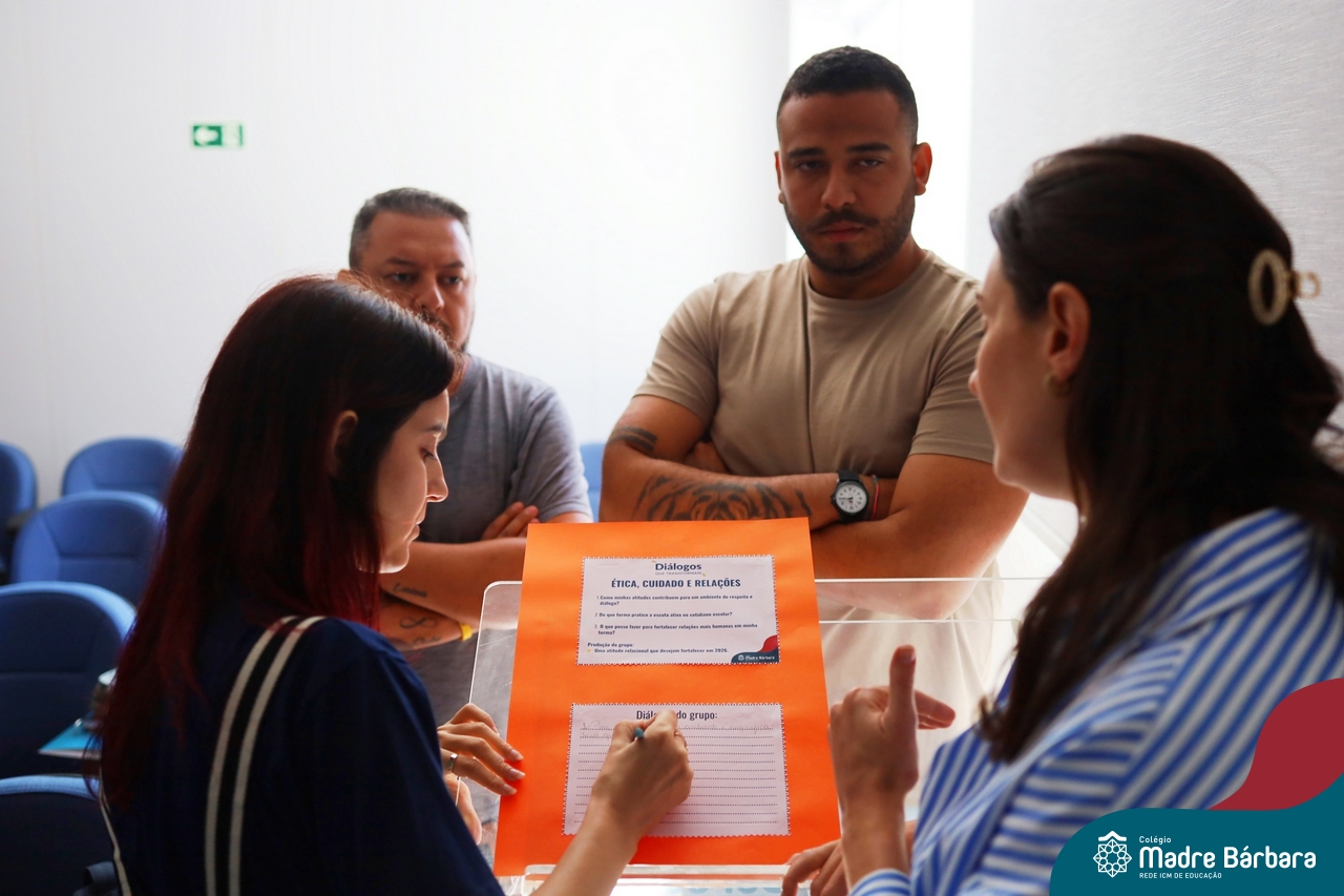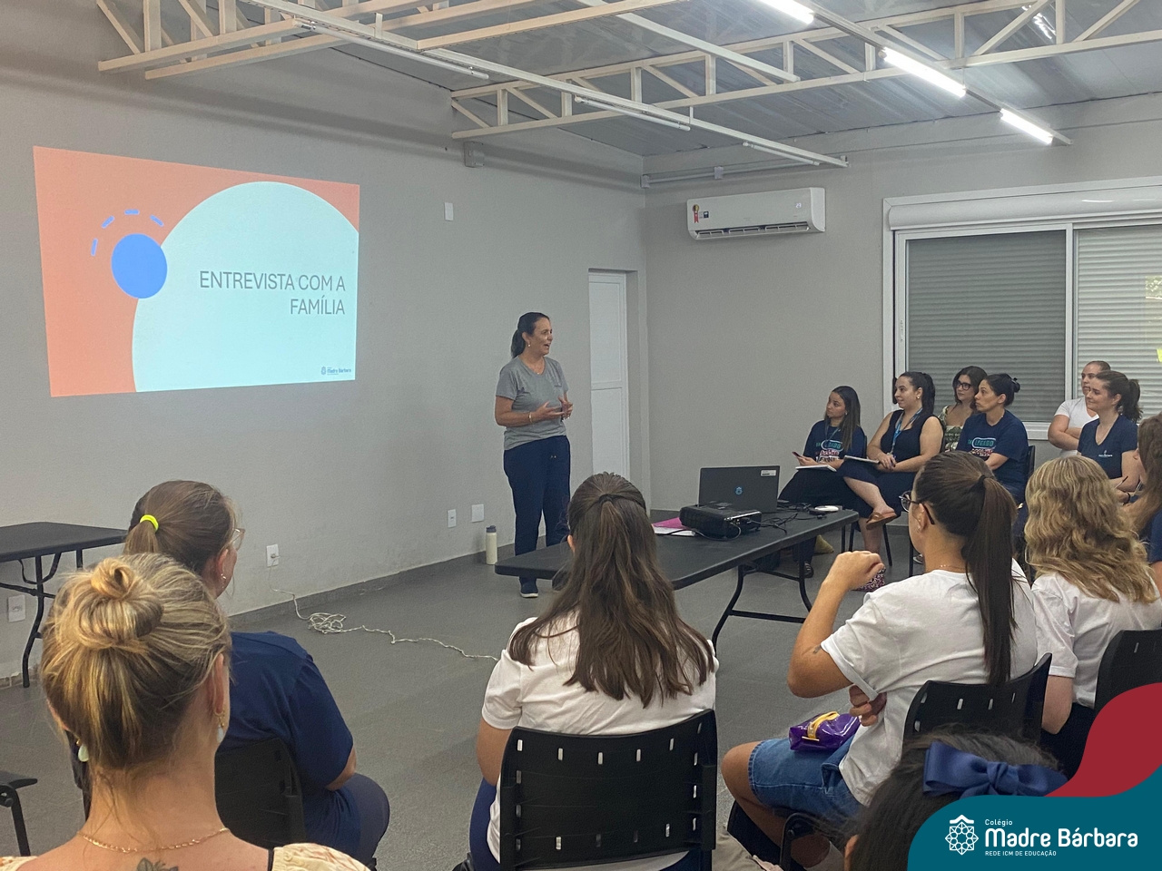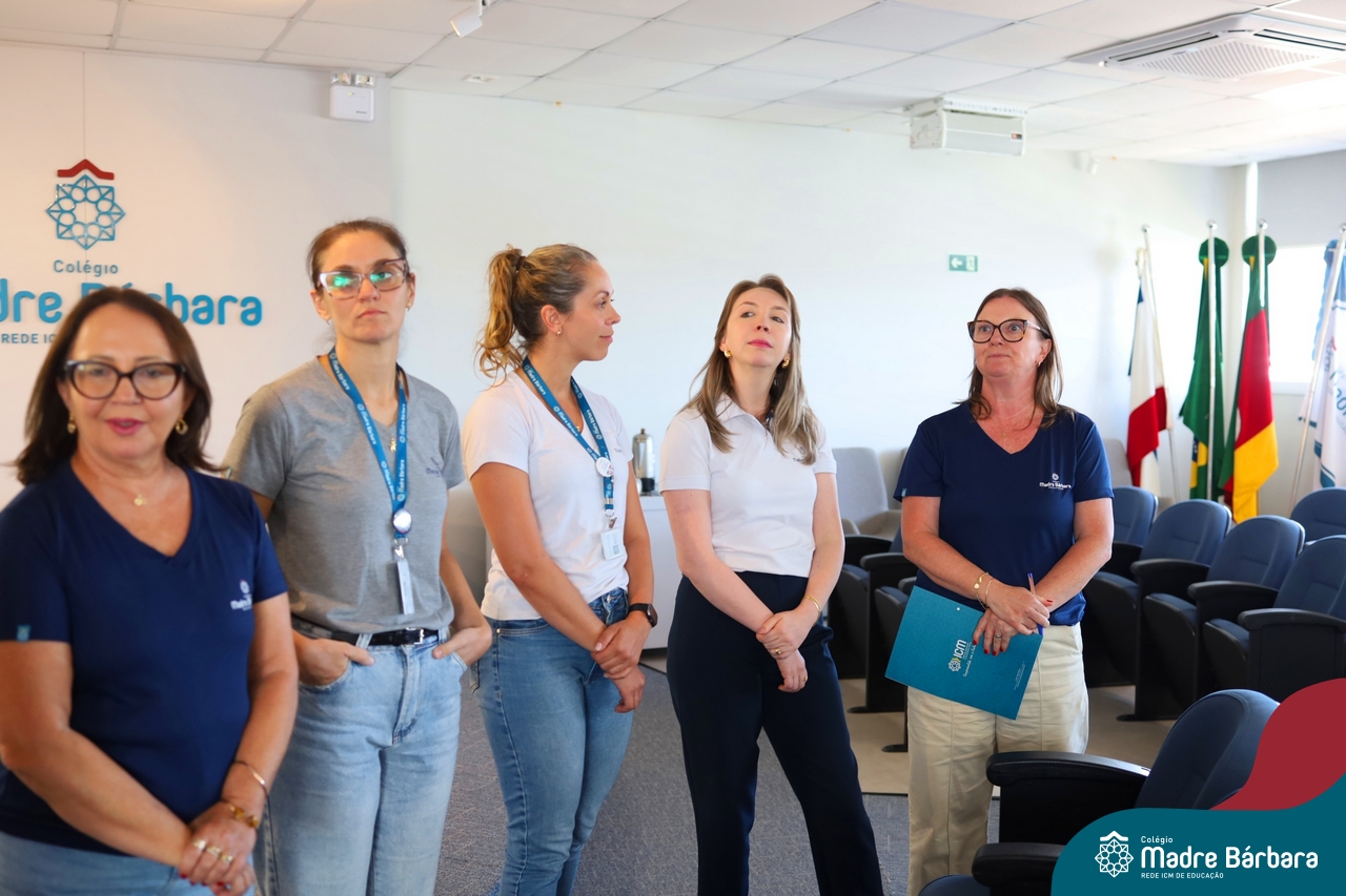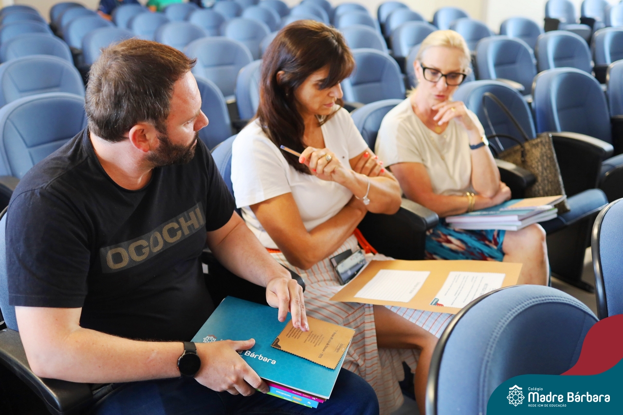 No turno da tarde, a jornada seguiu no Colégio com a reunião pedagógica, momento dedicado ao diálogo, à partilha de ideias e ao planejamento. Houve a apresentação dos setores, promovendo maior integração entre as equipes e compreensão do trabalho coletivo. A programação contou ainda com a fala da Pastoral Escolar, que iluminou a missão institucional e reforçou o chamado a viver a missão com propósito.