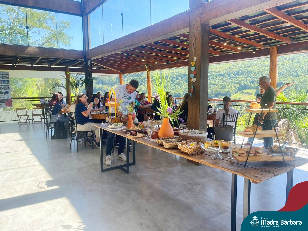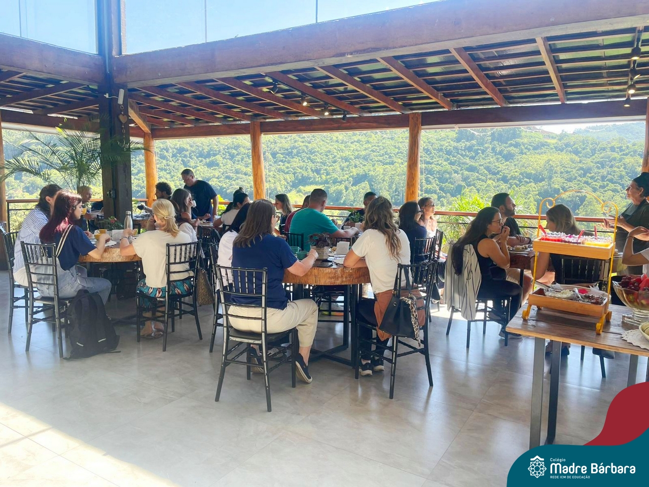 Nessa segunda-feira, também ocorreu a Jornada Pedagógica dos Anos Finais e do Ensino Médio, marcando um momento especial de reencontro, acolhida e alinhamento para o novo ano letivo. Inspirada pela temática da semana, “Diálogos que transformam”, a jornada convidou os educadores a refletirem sobre a missão de educar com propósito, intencionalidade e sentido. Pela manhã, a equipe viveu um momento de integração no Aloha Espaço Natural, em Arroio do Meio. Em meio à natureza, rodeados por plantas e por um ambiente de tranquilidade, os professores participaram de um acolhedor café colonial, fortalecendo vínculos e celebrando a alegria de estar juntos. Esse tempo de convivência reforçou valores essenciais como cuidar das relações, educar pelo exemplo e reconhecer a importância do outro na caminhada educativa.