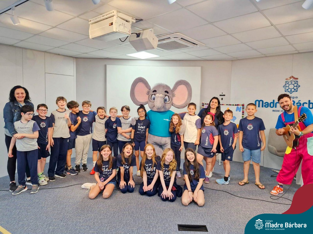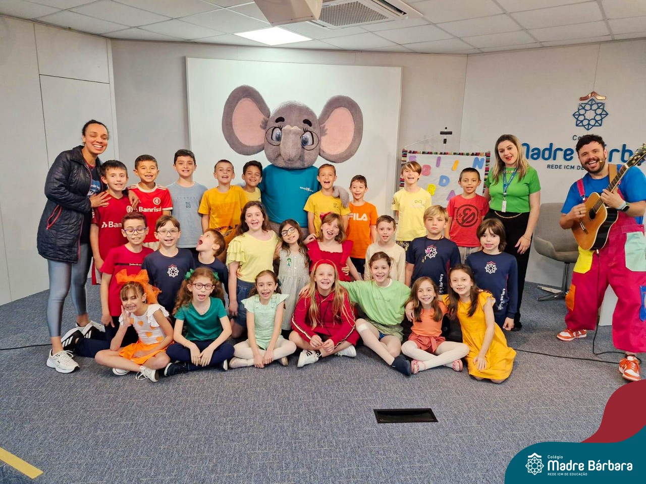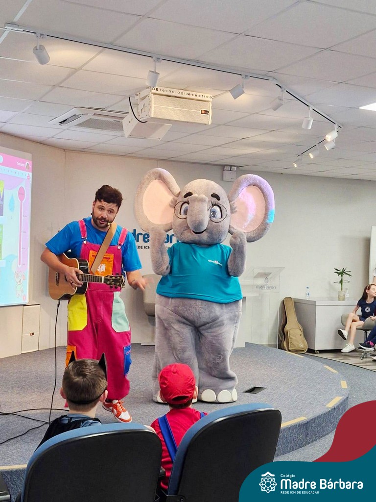 Nesta sexta-feira (10.10), os Anos Iniciais viveram um momento mágico para encerrar a Semana da Criança com muita alegria e aprendizado! Tiveram a visita especial do Sr. Elefante Letrado, que encantou a todos com histórias incríveis, músicas animadas, brincadeiras divertidas e muita interação!