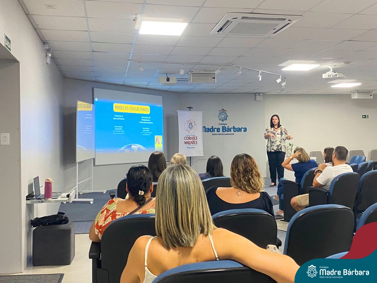Na noite desta segunda-feira, 31.03, o Colégio Madre Bárbara realizou um importante encontro com as famílias dos Anos Iniciais, abordando o tema “Parentalidade Ativa: Como Identificar, Prevenir e Agir Diante do Bullying”. A ação integra o conjunto de iniciativas do programa “Vozes Fortes, Corações Valentes: juntos contra o Bullying”, que tem como objetivo promover um ambiente escolar seguro, acolhedor e fundamentado no respeito às diferenças.