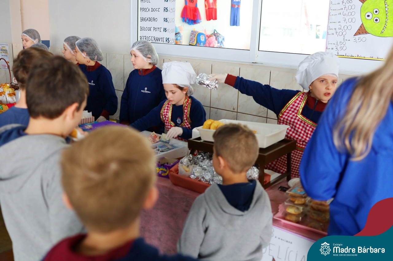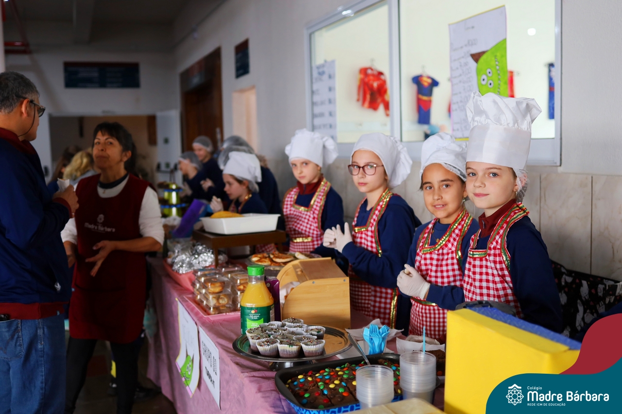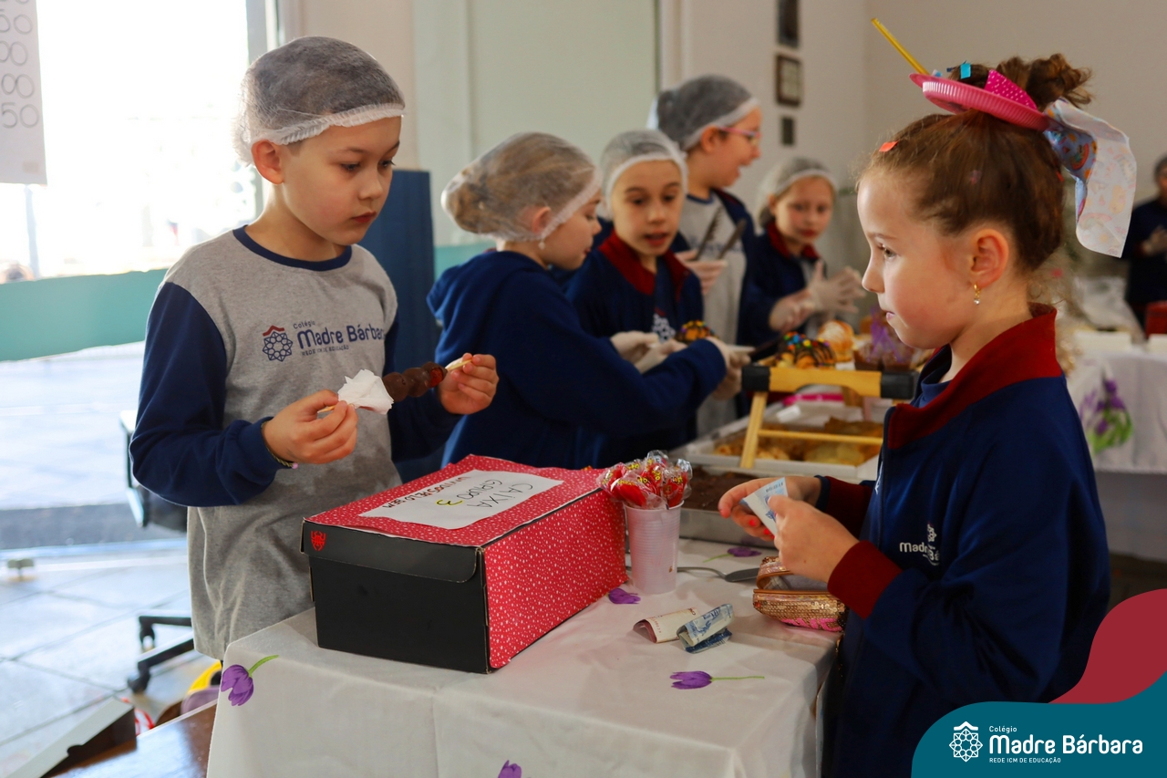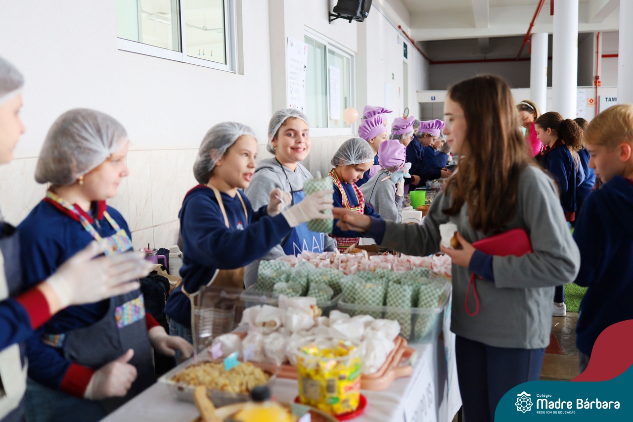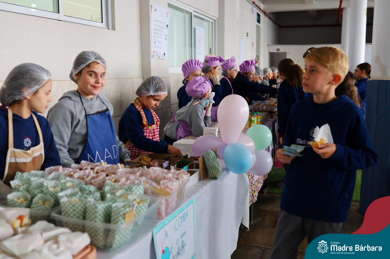 E a Feira vai além! Com o valor arrecadado, os alunos vão ao mercado, pesquisam preços, fazem compras de alimentos não perecíveis, produtos de higiene e limpeza, e depois destinam tudo a instituições da nossa região. É o aprendizado saindo da sala de aula e ganhando um lindo propósito social! Essa ação incrível já acontece há mais de 20 anos no Colégio Madre Bárbara – Rede ICM e a cada edição, renova o compromisso da comunidade escolar com a solidariedade e a formação cidadã.