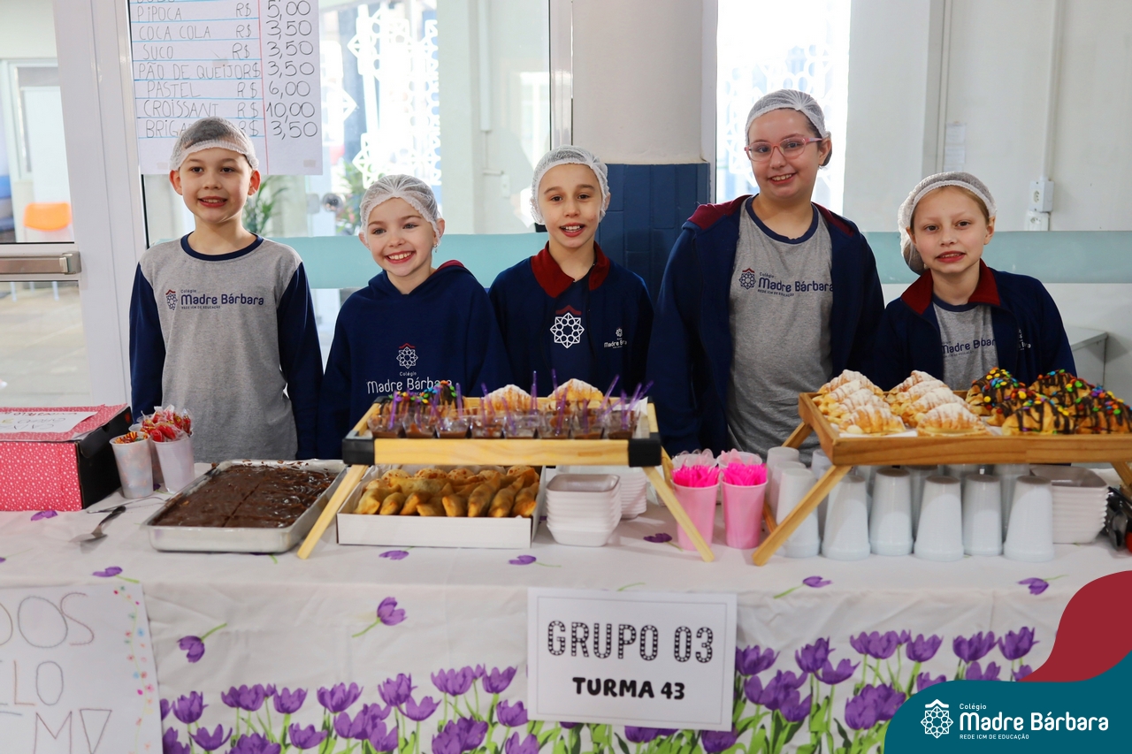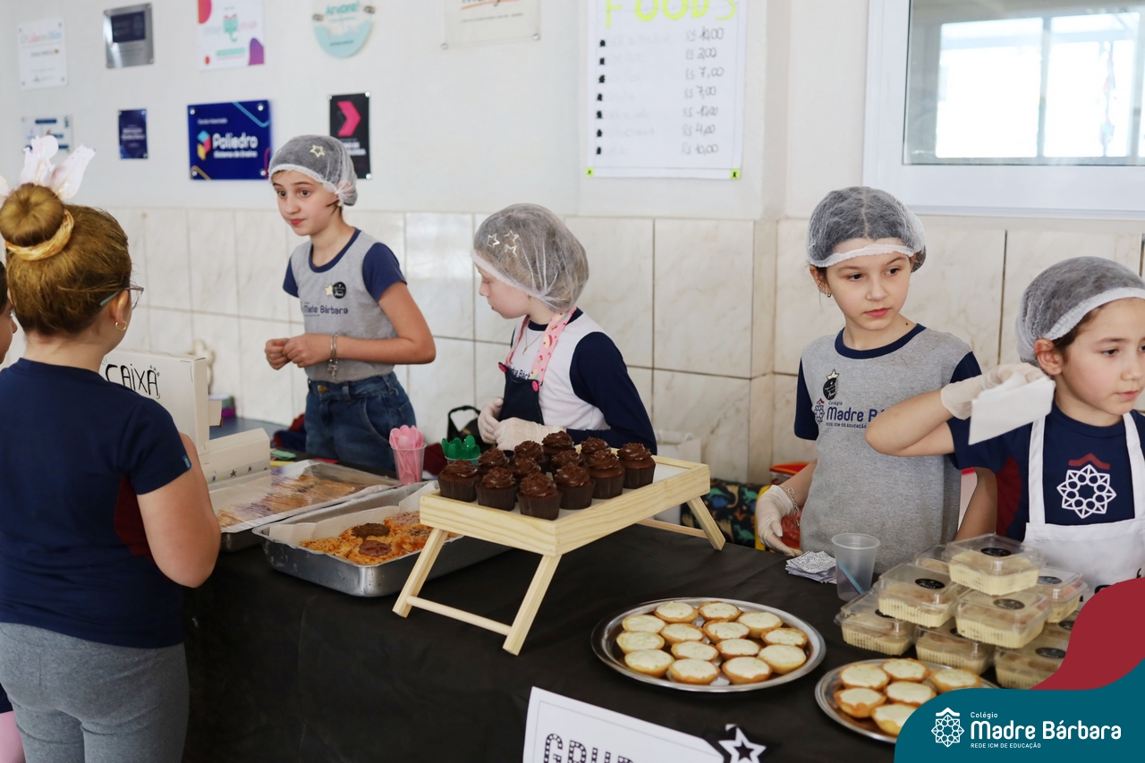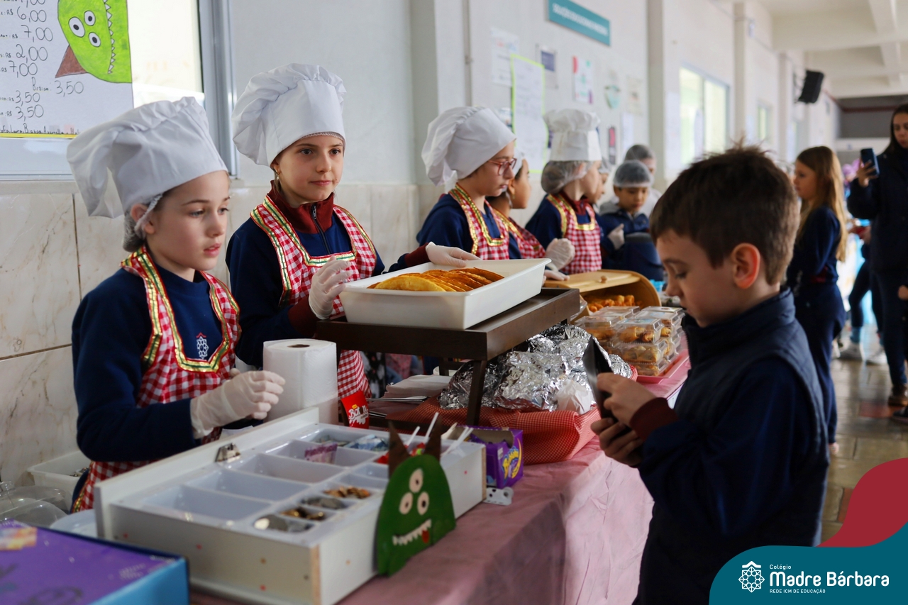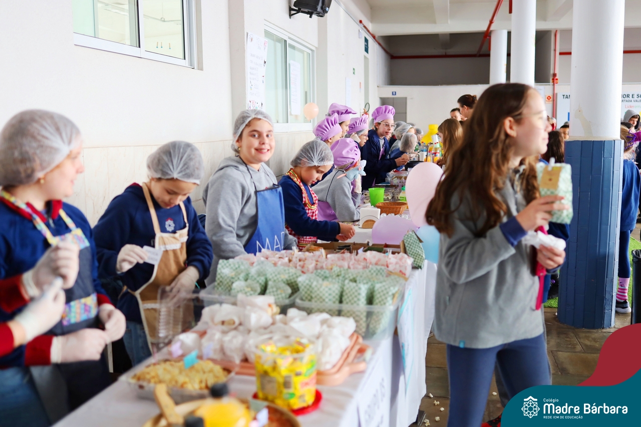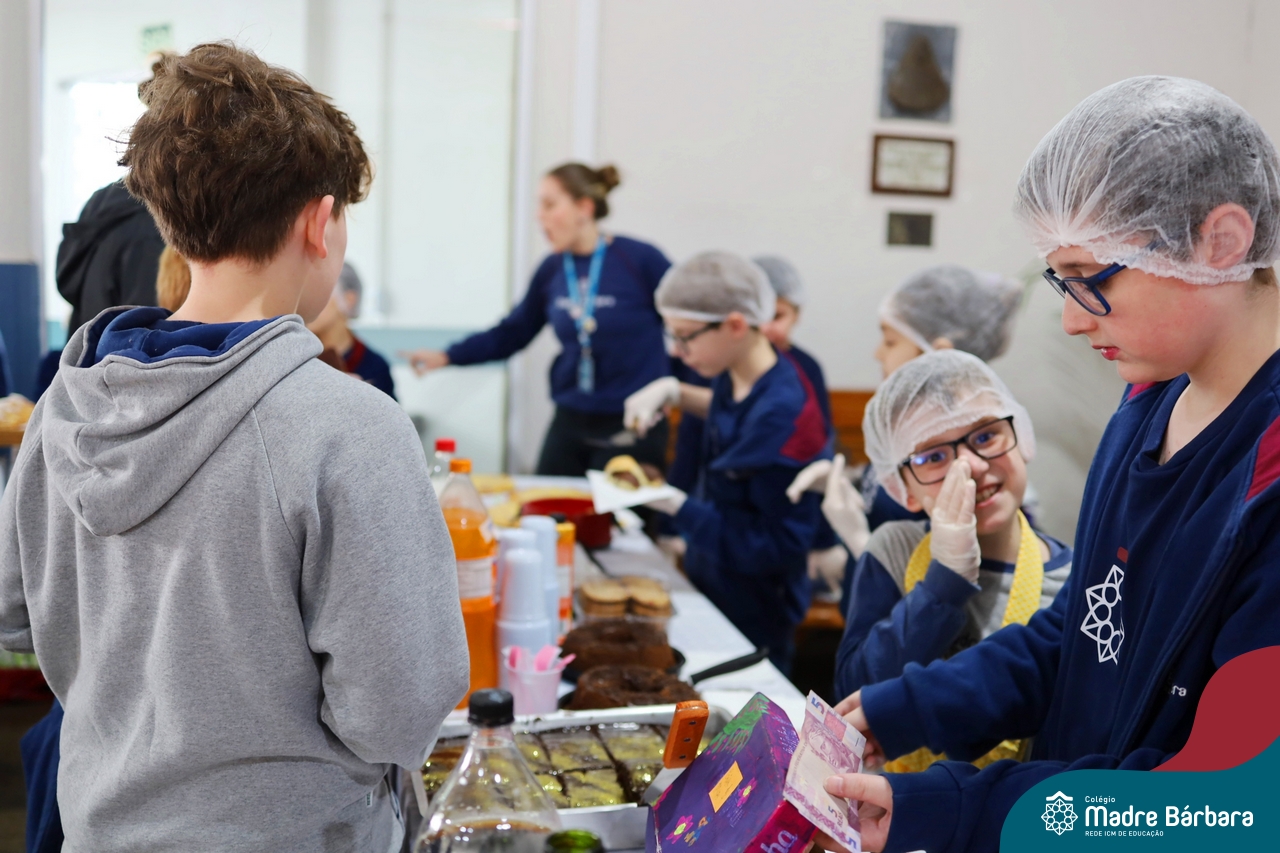 E a Feira vai além! Com o valor arrecadado, os alunos vão ao mercado, pesquisam preços, fazem compras de alimentos não perecíveis, produtos de higiene e limpeza, e depois destinam tudo a instituições da nossa região. É o aprendizado saindo da sala de aula e ganhando um lindo propósito social! Essa ação incrível já acontece há mais de 20 anos no Colégio Madre Bárbara – Rede ICM e a cada edição, renova o compromisso da comunidade escolar com a solidariedade e a formação cidadã.