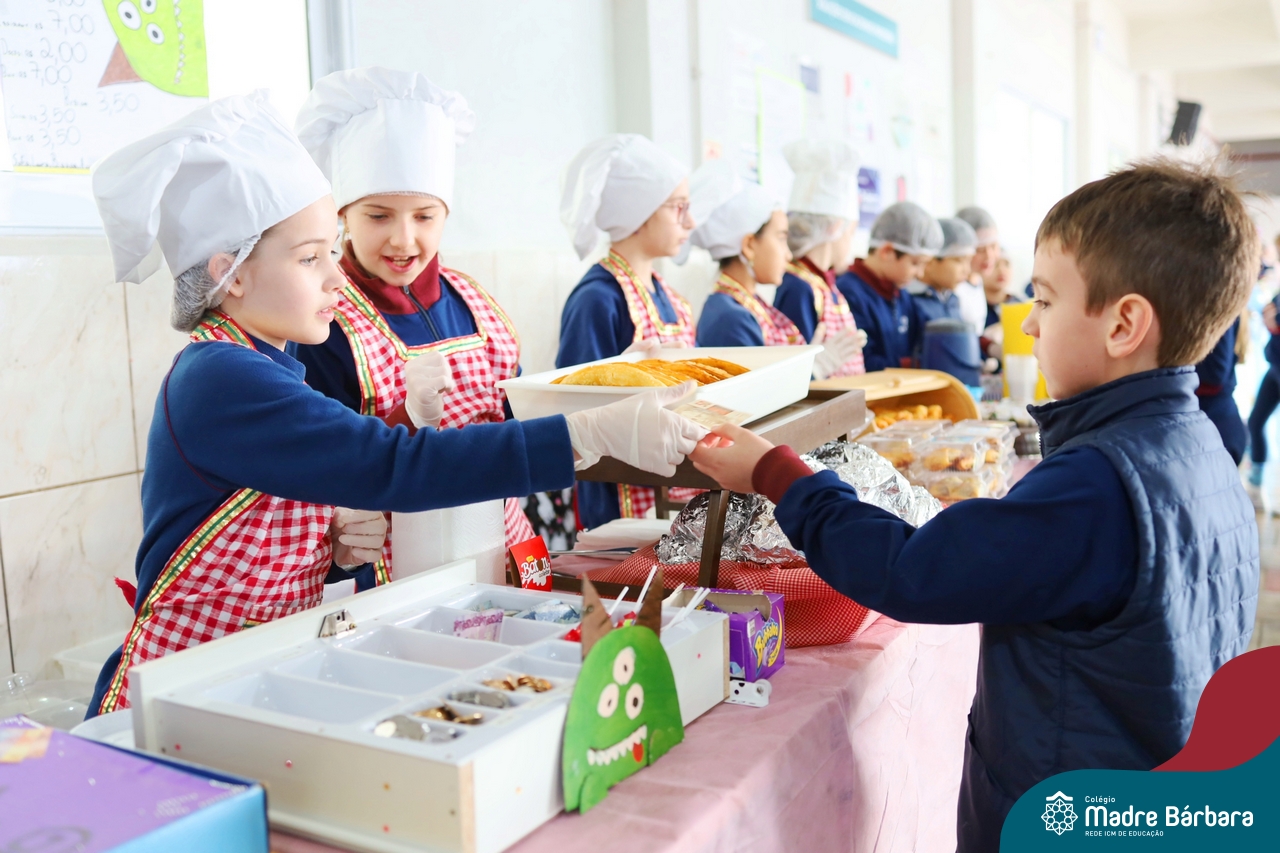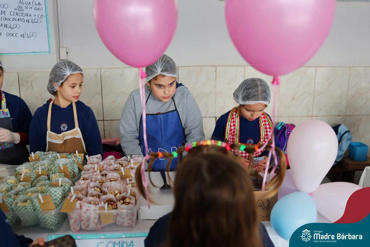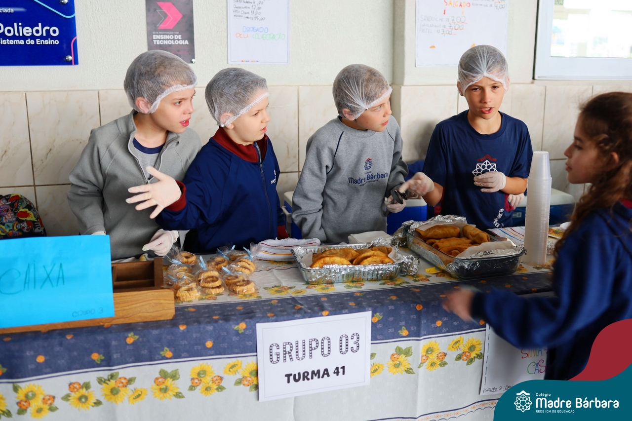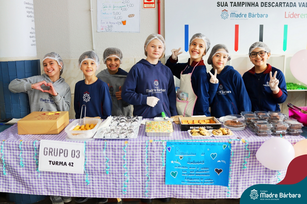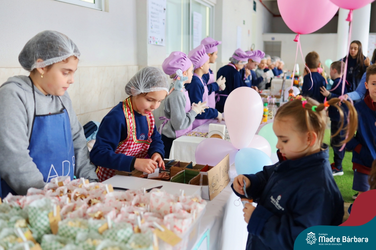 E a Feira vai além! Com o valor arrecadado, os alunos vão ao mercado, pesquisam preços, fazem compras de alimentos não perecíveis, produtos de higiene e limpeza, e depois destinam tudo a instituições da nossa região. É o aprendizado saindo da sala de aula e ganhando um lindo propósito social! Essa ação incrível já acontece há mais de 20 anos no Colégio Madre Bárbara – Rede ICM e a cada edição, renova o compromisso da comunidade escolar com a solidariedade e a formação cidadã.