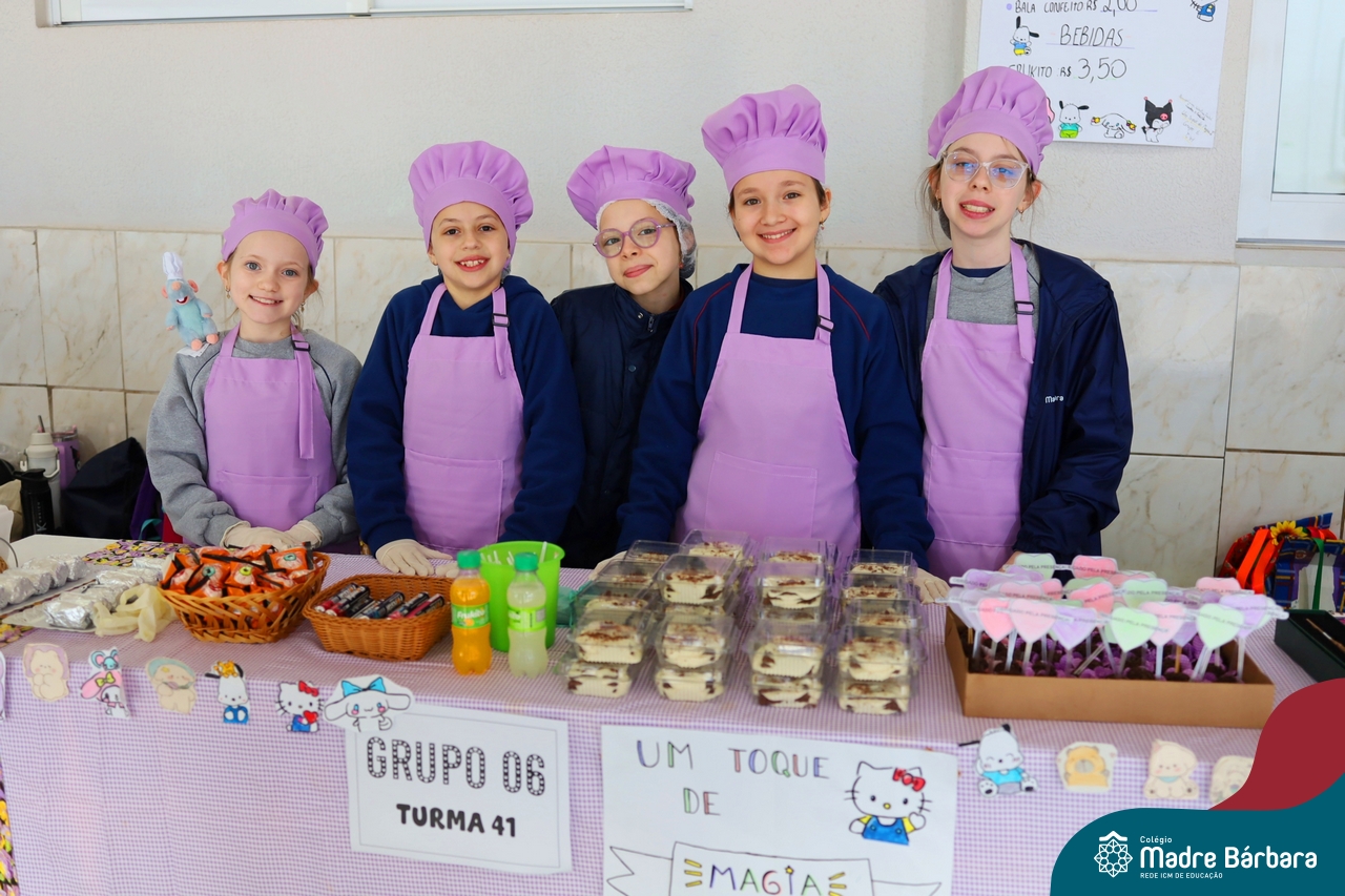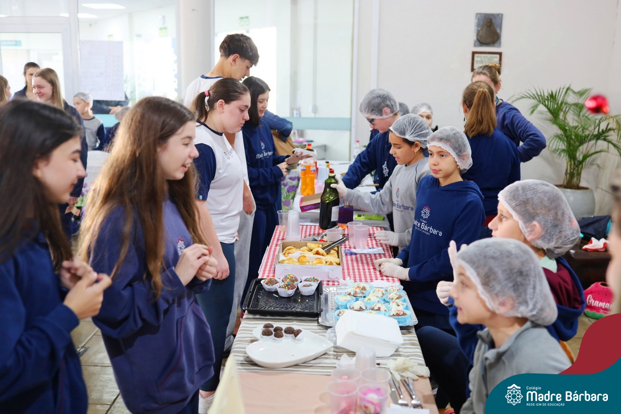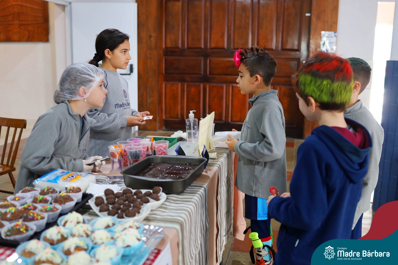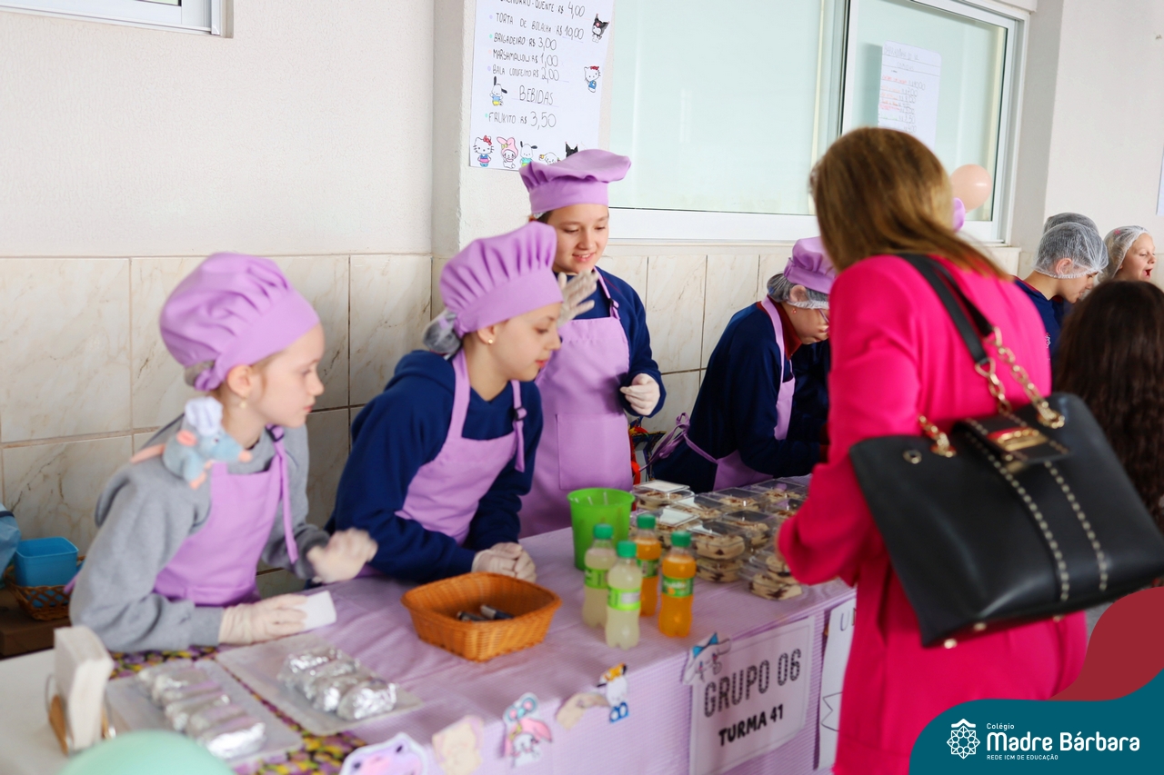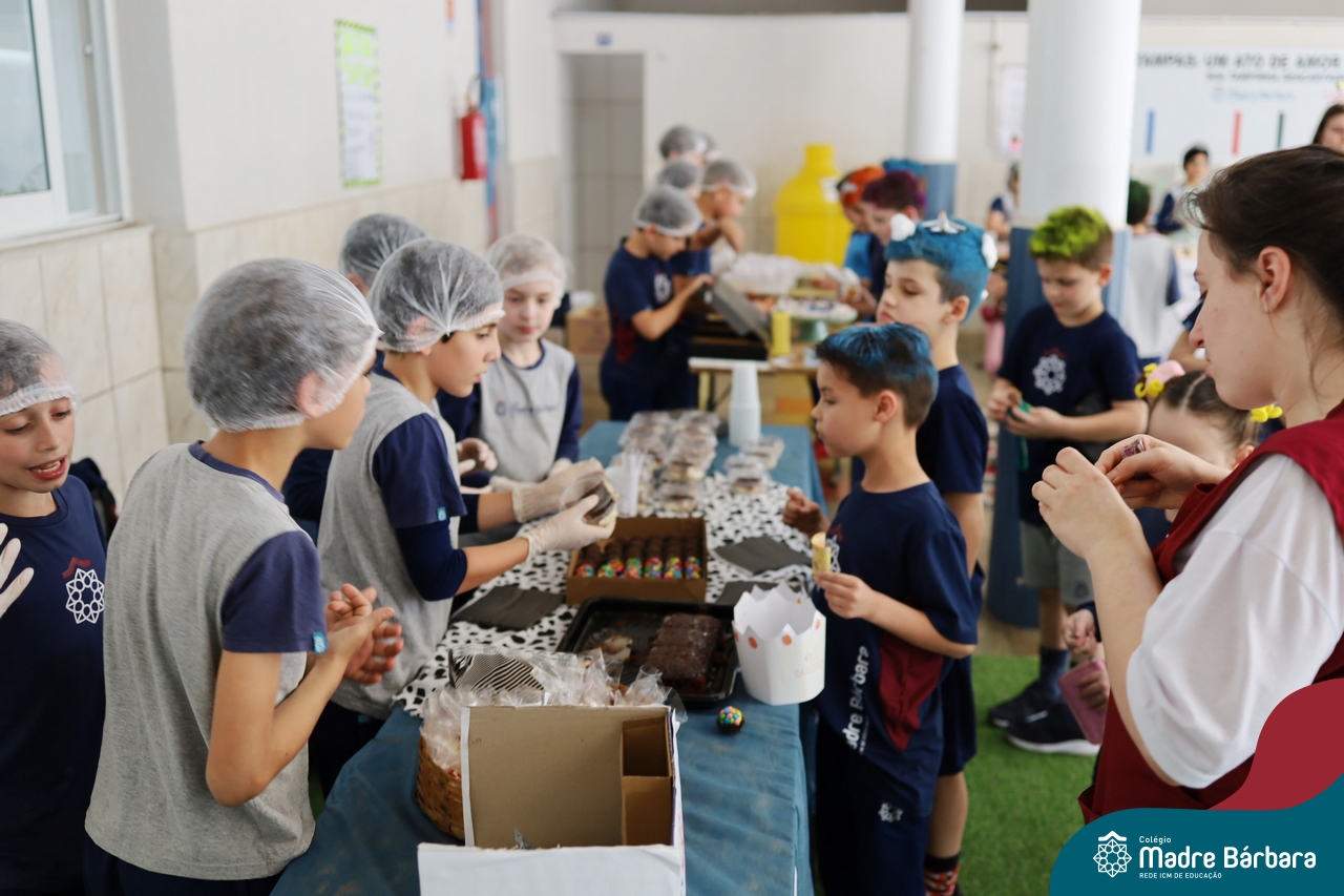 E a Feira vai além! Com o valor arrecadado, os alunos vão ao mercado, pesquisam preços, fazem compras de alimentos não perecíveis, produtos de higiene e limpeza, e depois destinam tudo a instituições da nossa região. É o aprendizado saindo da sala de aula e ganhando um lindo propósito social! Essa ação incrível já acontece há mais de 20 anos no Colégio Madre Bárbara – Rede ICM e a cada edição, renova o compromisso da comunidade escolar com a solidariedade e a formação cidadã.