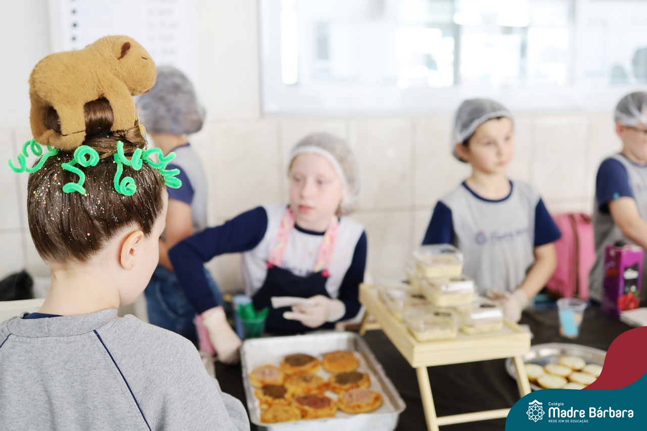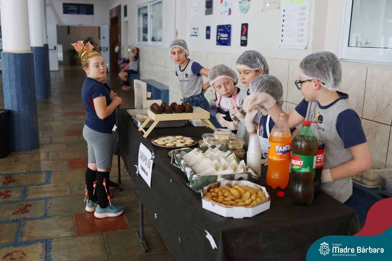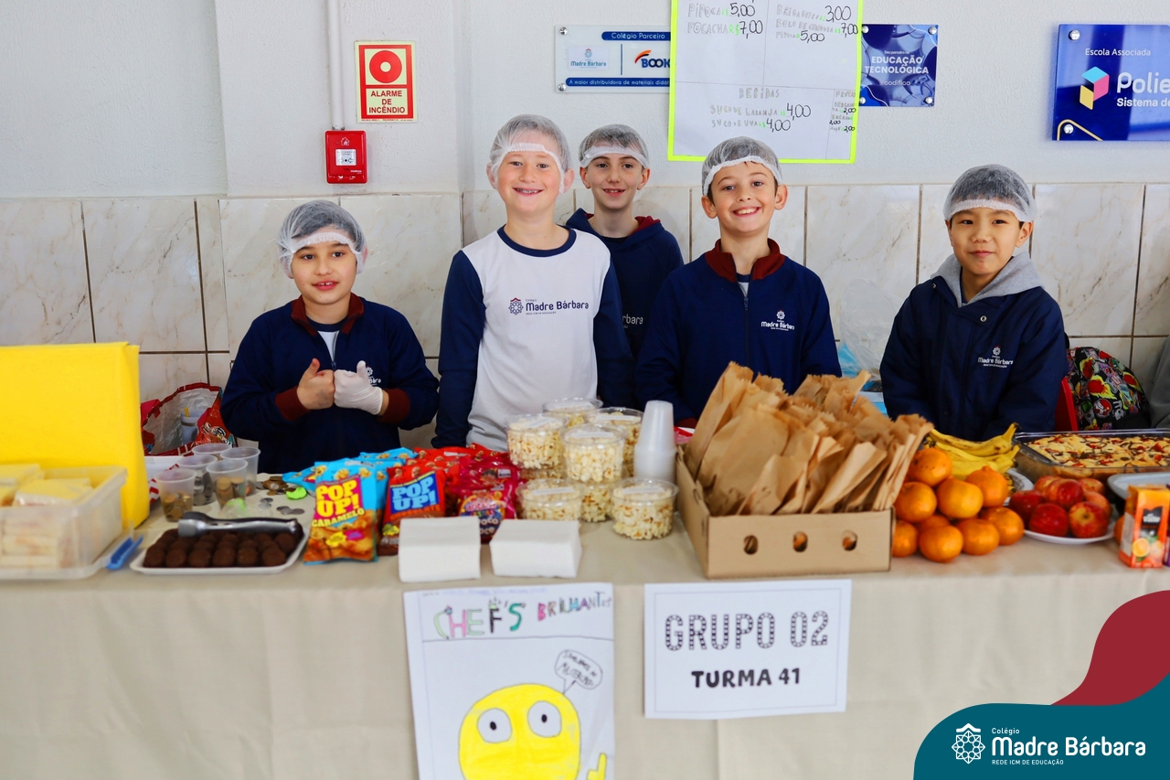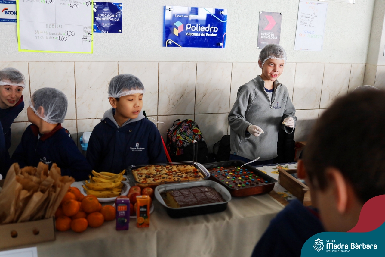Na manhã desta quinta-feira (09.10), os estudantes dos 4ºs anos do Ensino Fundamental – Anos Iniciais realizaram mais uma edição da tradicional Feira da Merenda Solidária, um projeto que une educação financeira, criatividade e empatia. Divididos em grupos, as crianças colocam a mão na massa: criaram nomes para suas barraquinhas, organizaram os espaços e prepararam os lanches com muito carinho (todos gentilmente doados pelas famílias). Durante o recreio, eles venderam as delícias aos colegas de escola, numa experiência prática de compra, venda e trabalho em equipe.