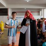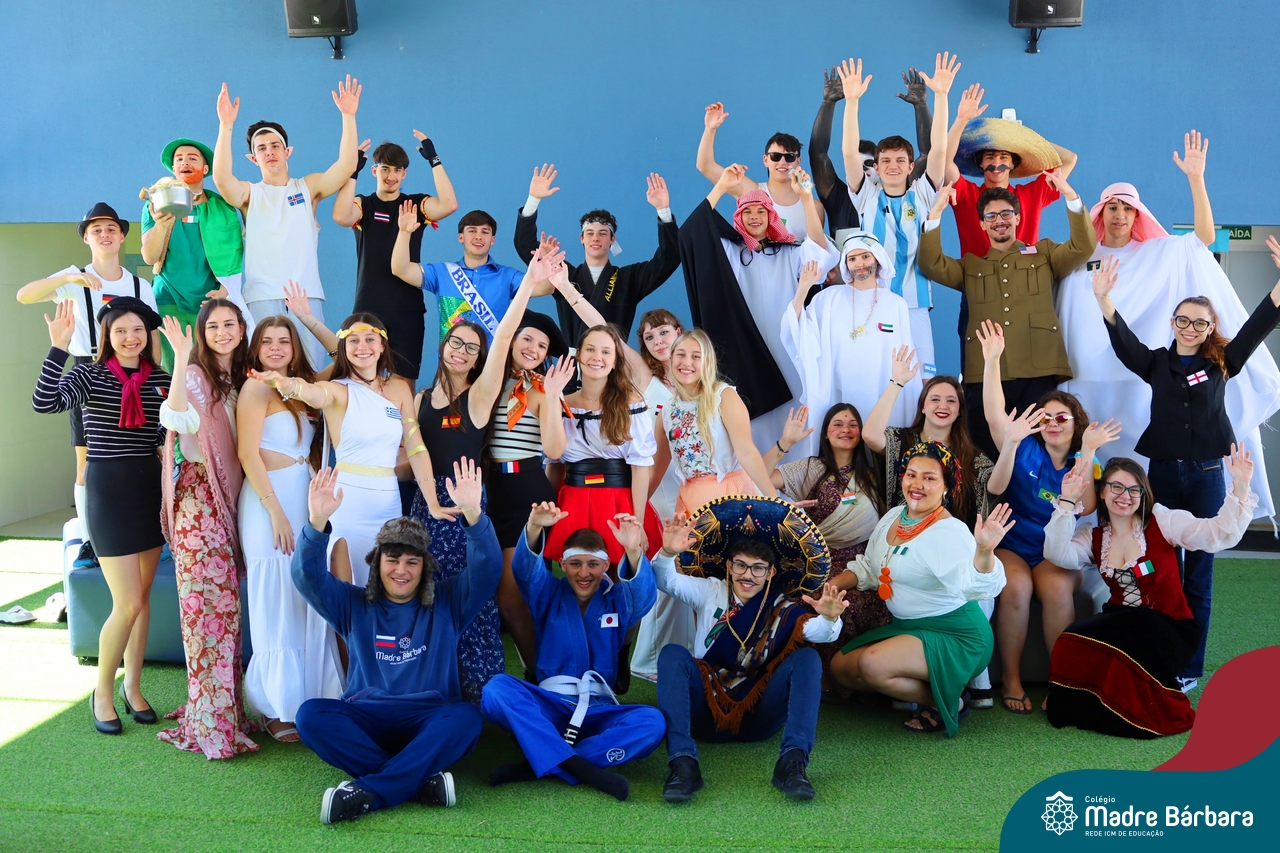 O Grêmio Estudantil do Colégio Madre Bárbara (Gembar) organizou o último trote do ano, superdivertido e cheio de criatividade com os estudantes do Terceirão. O tema foi “Países e Culturas”, e cada estudante caprichou nas vestimentas, representando diferentes partes do mundo com muito respeito e originalidade. Durante o evento, os alunos fizeram um lanche coletivo, posaram para fotos na área verde e animaram o recreio com um desfile cultural na área coberta. O momento foi marcado por integração, alegria e descontração, celebrando o espírito de união e encerrando mais uma etapa importante da caminhada escolar.