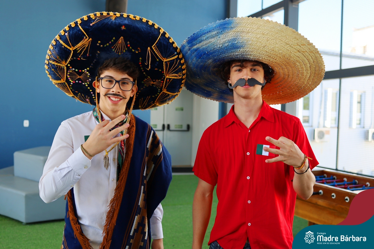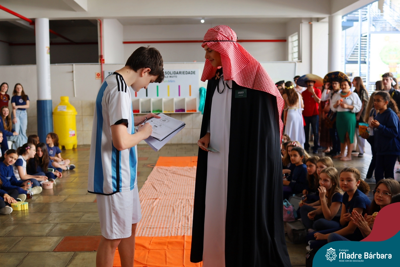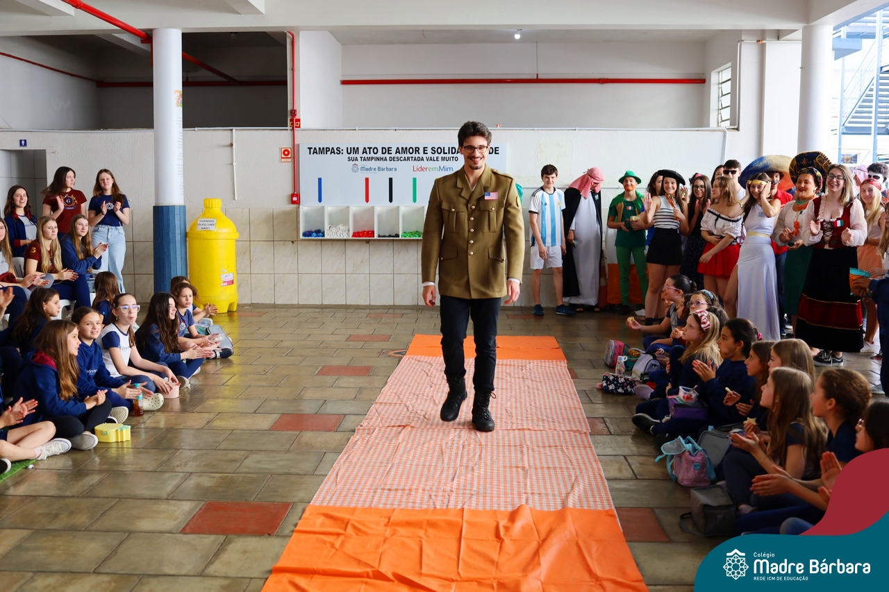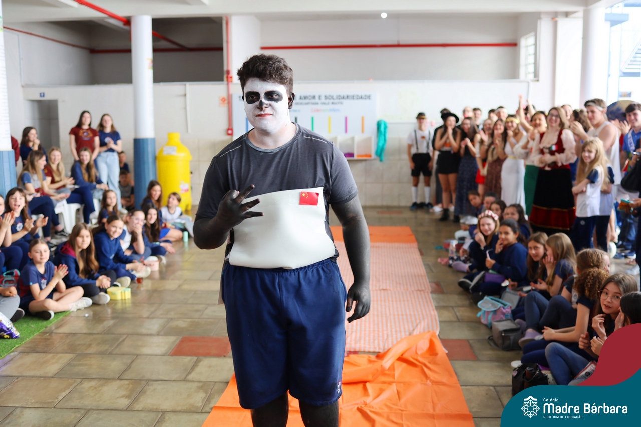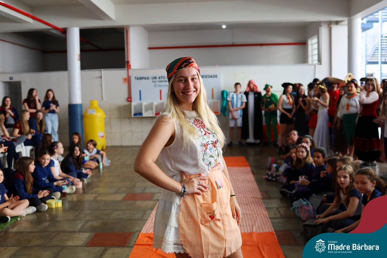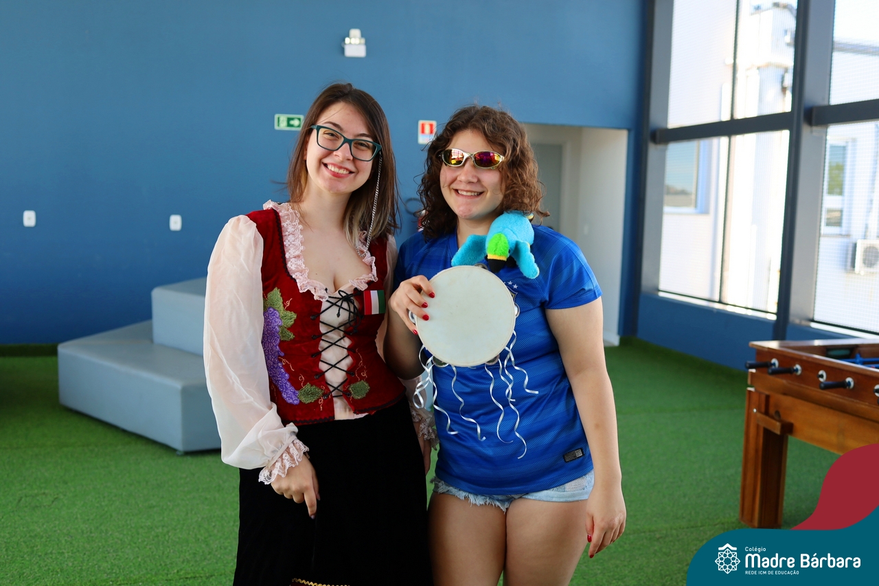 O Grêmio Estudantil do Colégio Madre Bárbara (Gembar) organizou o último trote do ano, superdivertido e cheio de criatividade com os estudantes do Terceirão. O tema foi “Países e Culturas”, e cada estudante caprichou nas vestimentas, representando diferentes partes do mundo com muito respeito e originalidade. Durante o evento, os alunos fizeram um lanche coletivo, posaram para fotos na área verde e animaram o recreio com um desfile cultural na área coberta. O momento foi marcado por integração, alegria e descontração, celebrando o espírito de união e encerrando mais uma etapa importante da caminhada escolar.