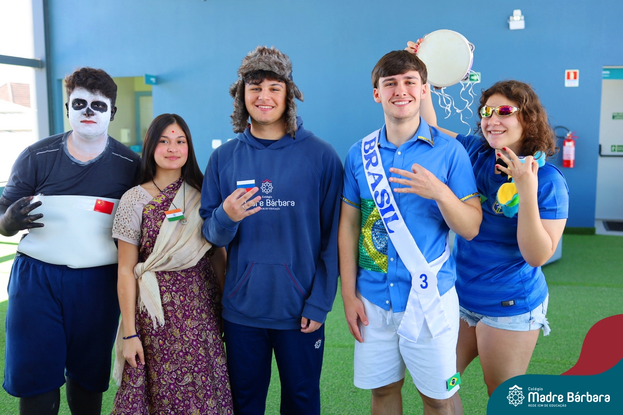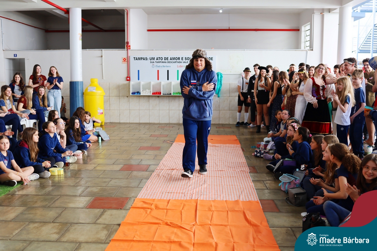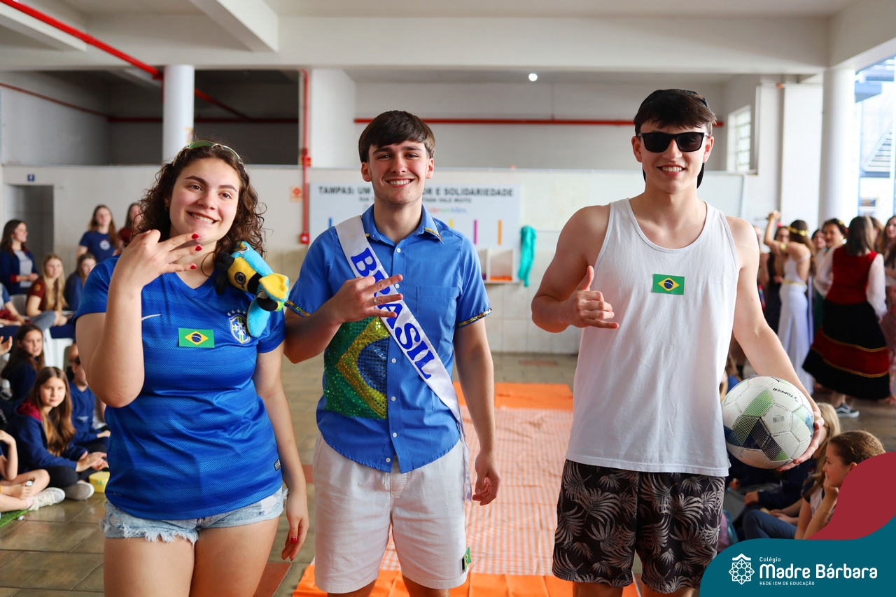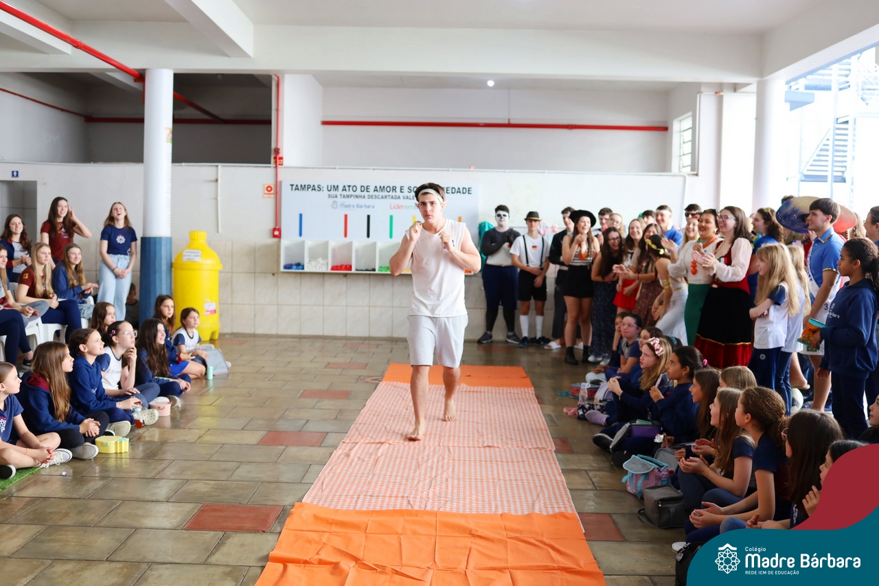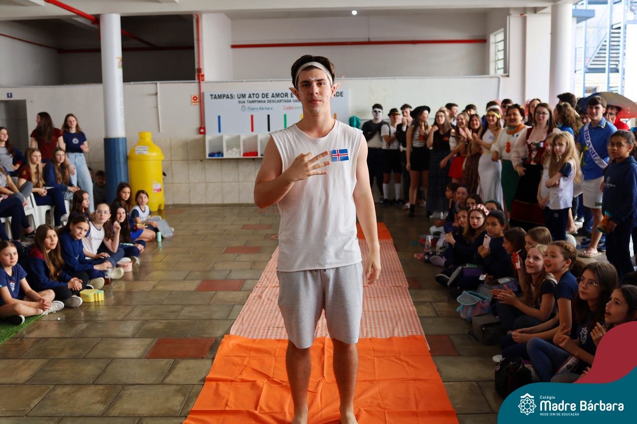 O Grêmio Estudantil do Colégio Madre Bárbara (Gembar) organizou o último trote do ano, superdivertido e cheio de criatividade com os estudantes do Terceirão. O tema foi “Países e Culturas”, e cada estudante caprichou nas vestimentas, representando diferentes partes do mundo com muito respeito e originalidade. Durante o evento, os alunos fizeram um lanche coletivo, posaram para fotos na área verde e animaram o recreio com um desfile cultural na área coberta. O momento foi marcado por integração, alegria e descontração, celebrando o espírito de união e encerrando mais uma etapa importante da caminhada escolar.