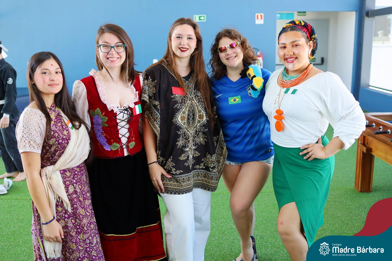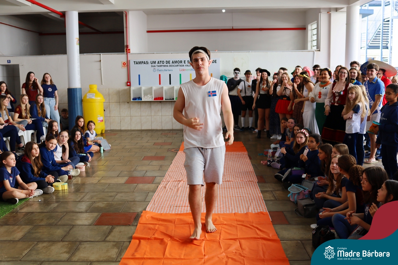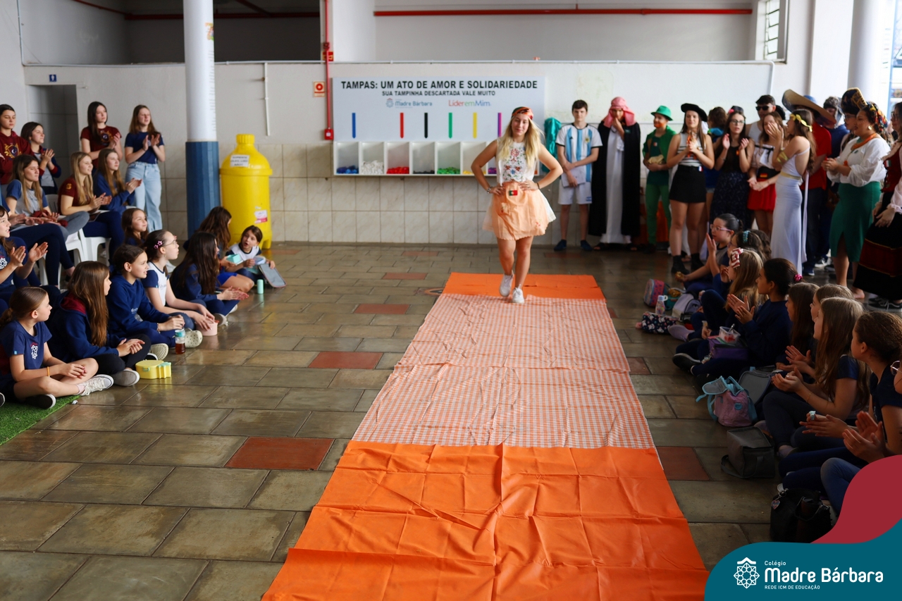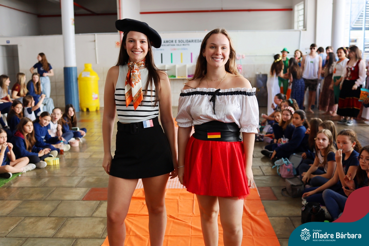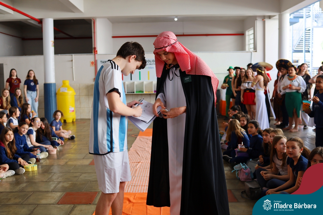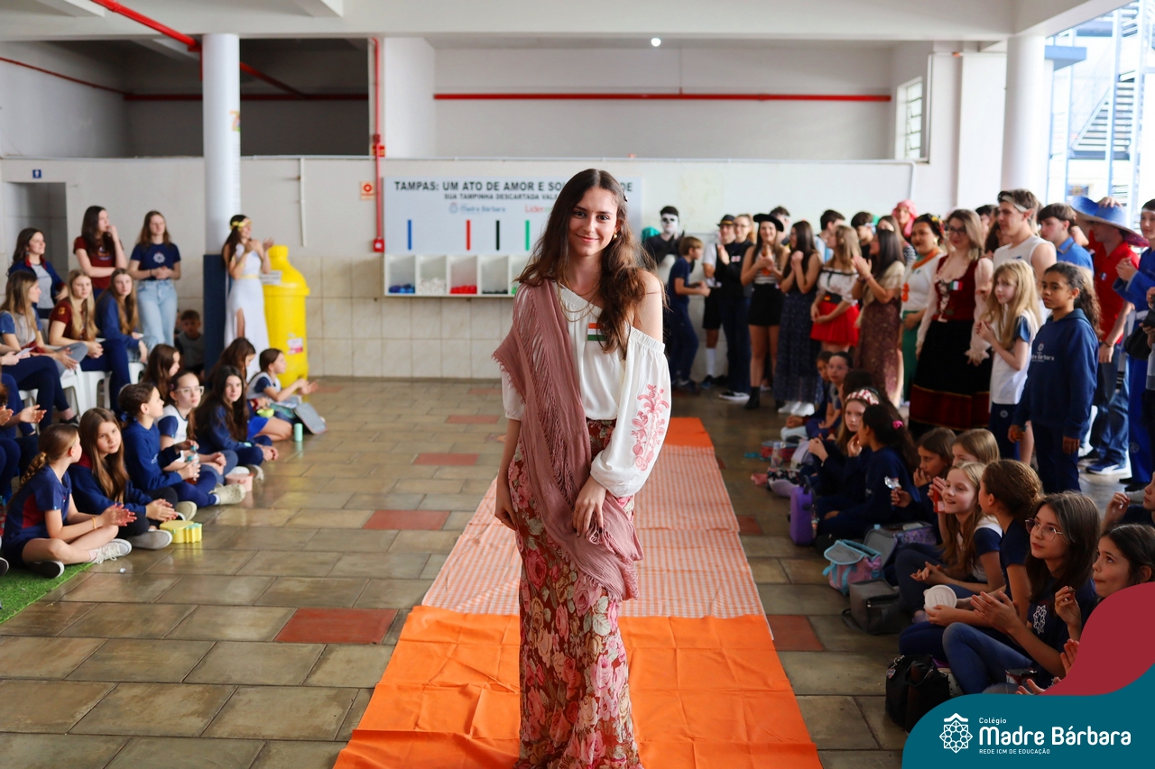 O Grêmio Estudantil do Colégio Madre Bárbara (Gembar) organizou o último trote do ano, superdivertido e cheio de criatividade com os estudantes do Terceirão. O tema foi “Países e Culturas”, e cada estudante caprichou nas vestimentas, representando diferentes partes do mundo com muito respeito e originalidade. Durante o evento, os alunos fizeram um lanche coletivo, posaram para fotos na área verde e animaram o recreio com um desfile cultural na área coberta. O momento foi marcado por integração, alegria e descontração, celebrando o espírito de união e encerrando mais uma etapa importante da caminhada escolar.