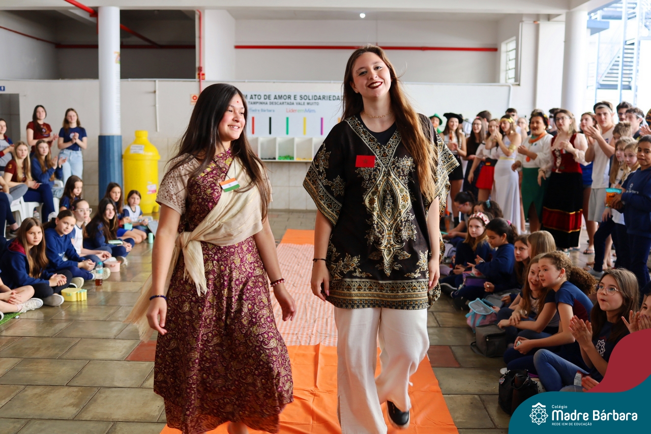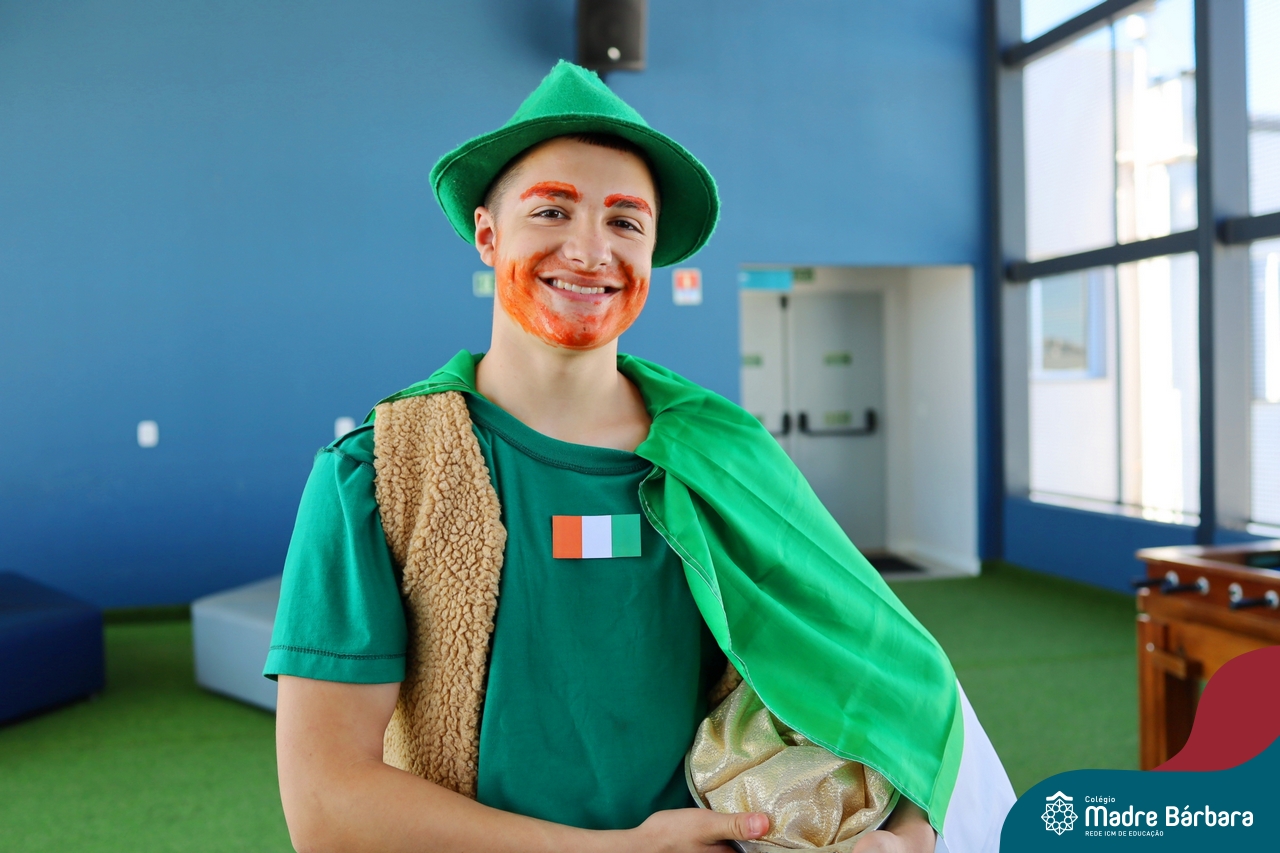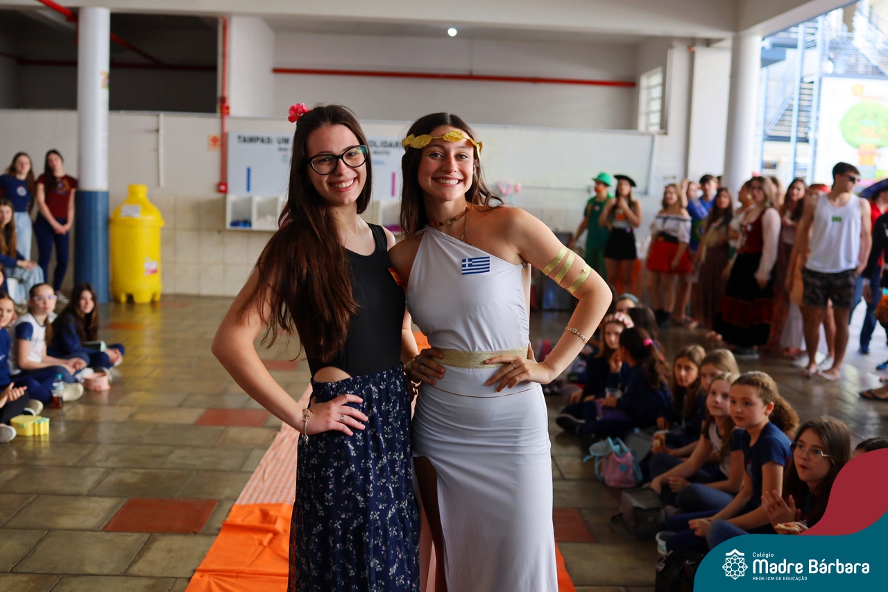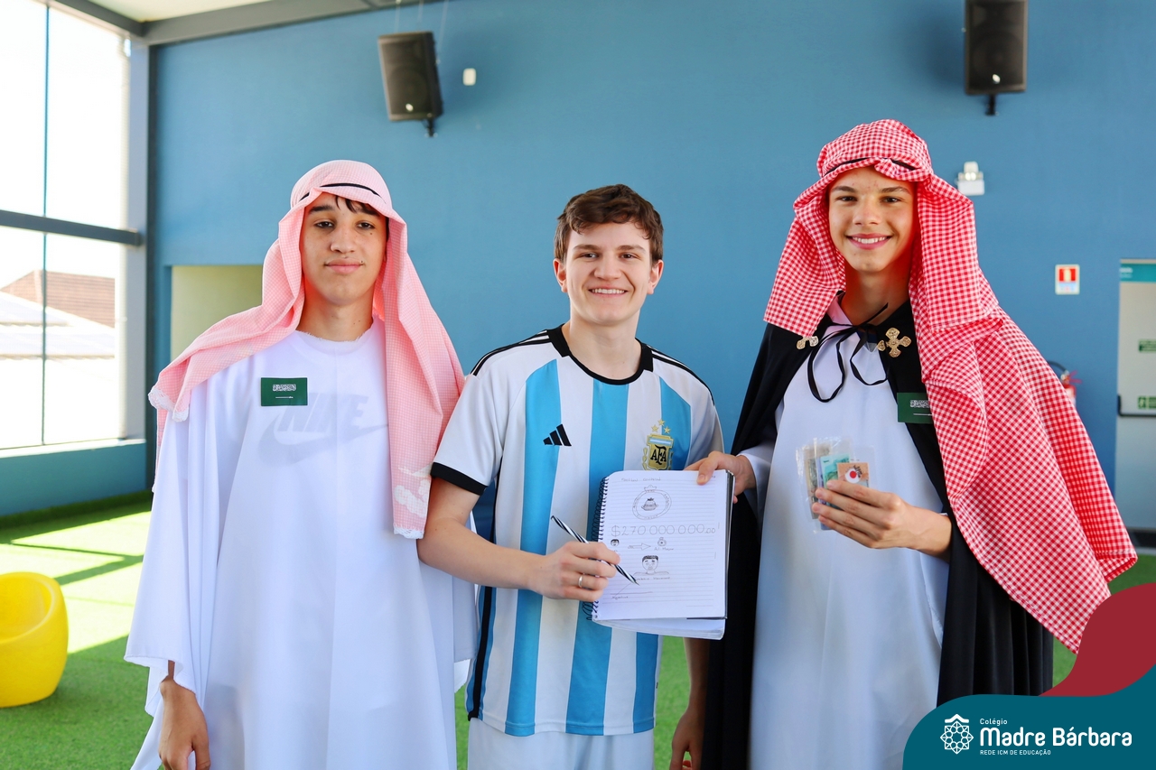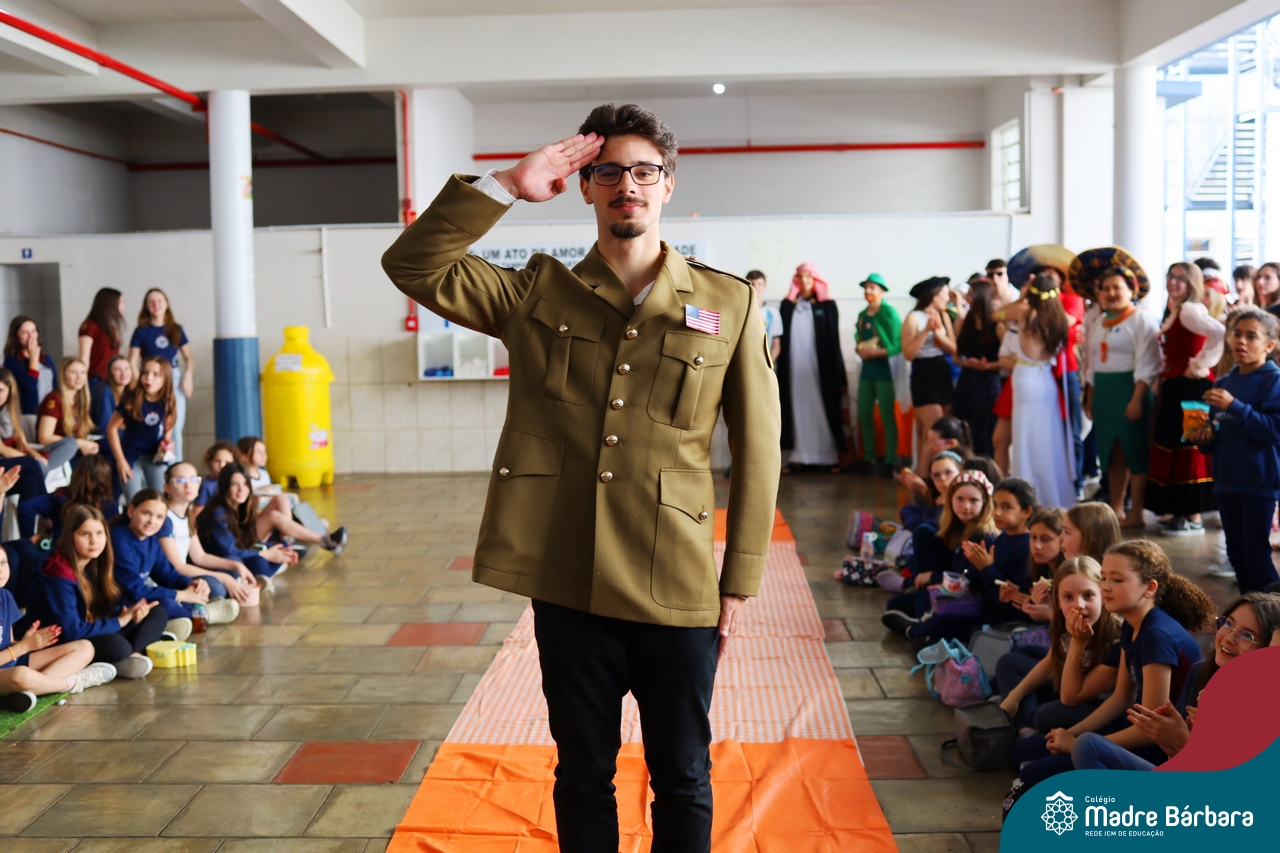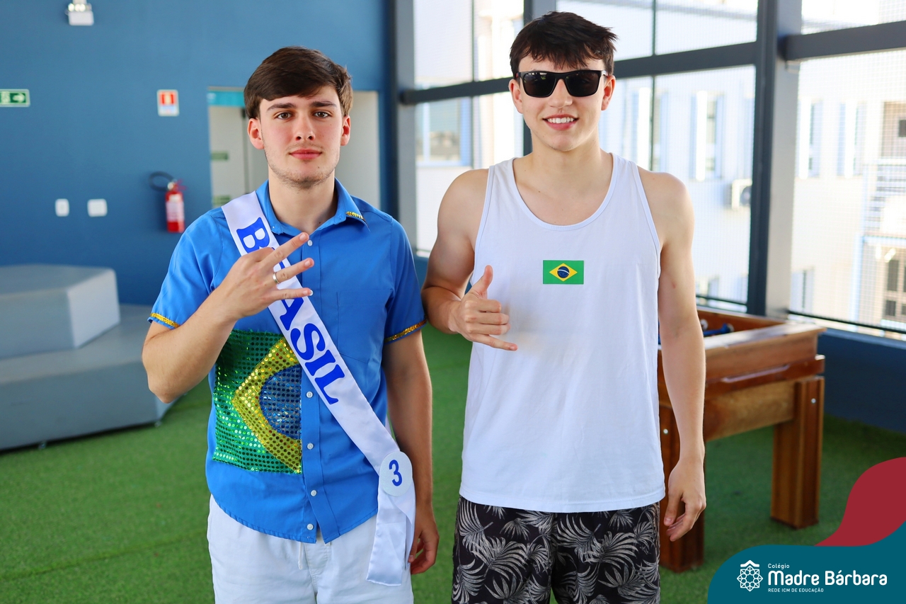 O Grêmio Estudantil do Colégio Madre Bárbara (Gembar) organizou o último trote do ano, superdivertido e cheio de criatividade com os estudantes do Terceirão. O tema foi “Países e Culturas”, e cada estudante caprichou nas vestimentas, representando diferentes partes do mundo com muito respeito e originalidade. Durante o evento, os alunos fizeram um lanche coletivo, posaram para fotos na área verde e animaram o recreio com um desfile cultural na área coberta. O momento foi marcado por integração, alegria e descontração, celebrando o espírito de união e encerrando mais uma etapa importante da caminhada escolar.