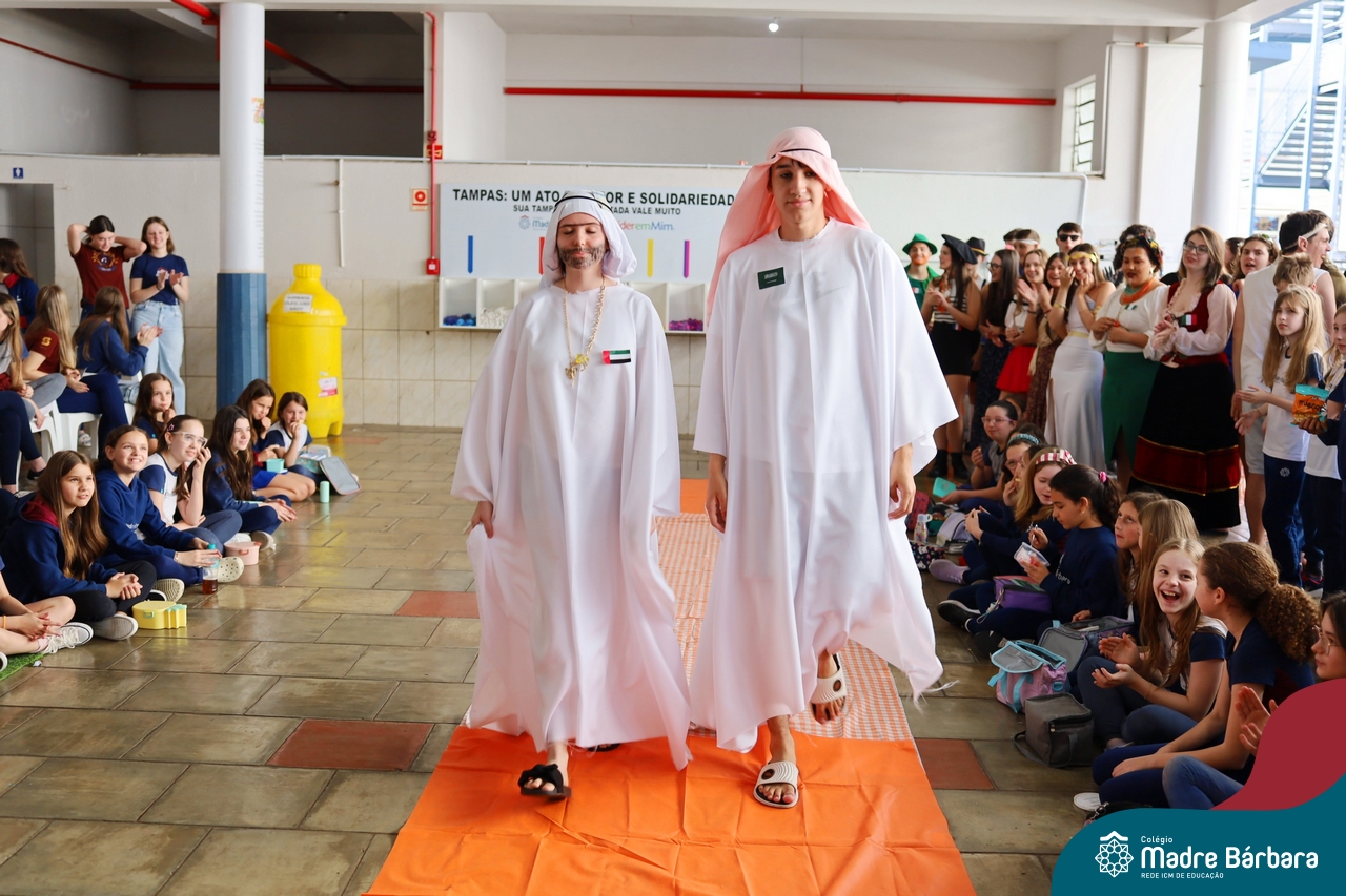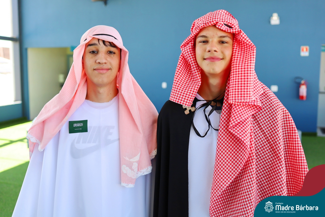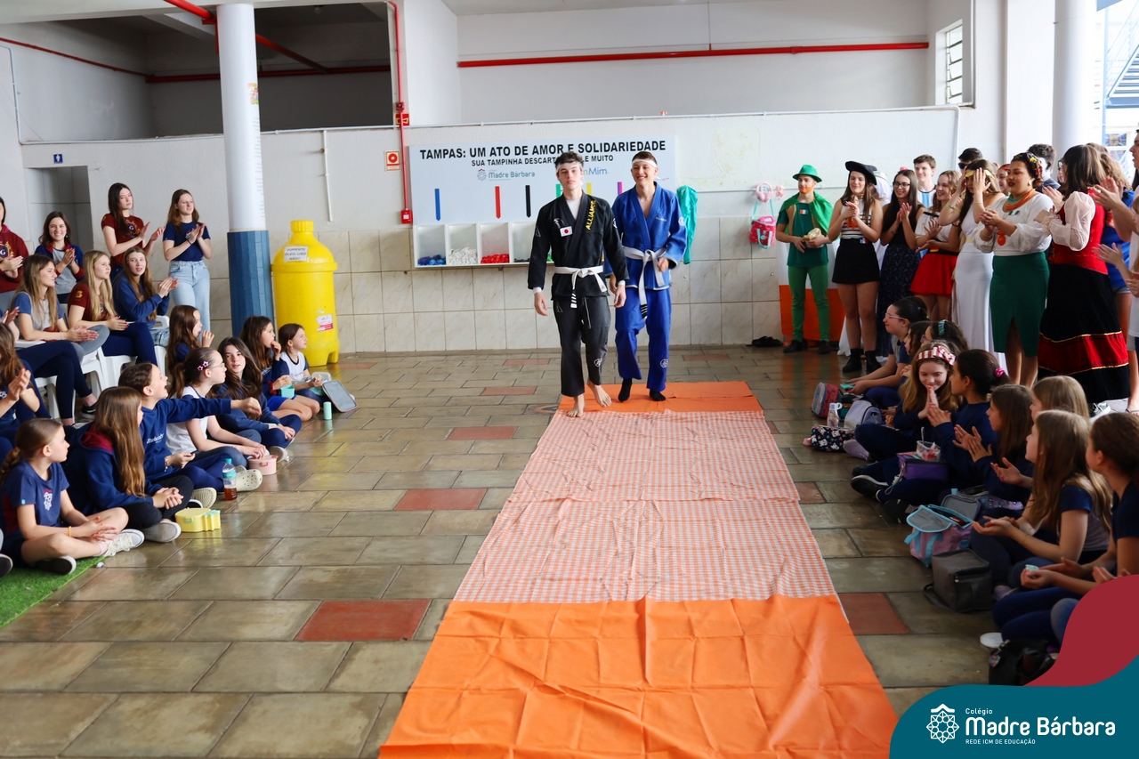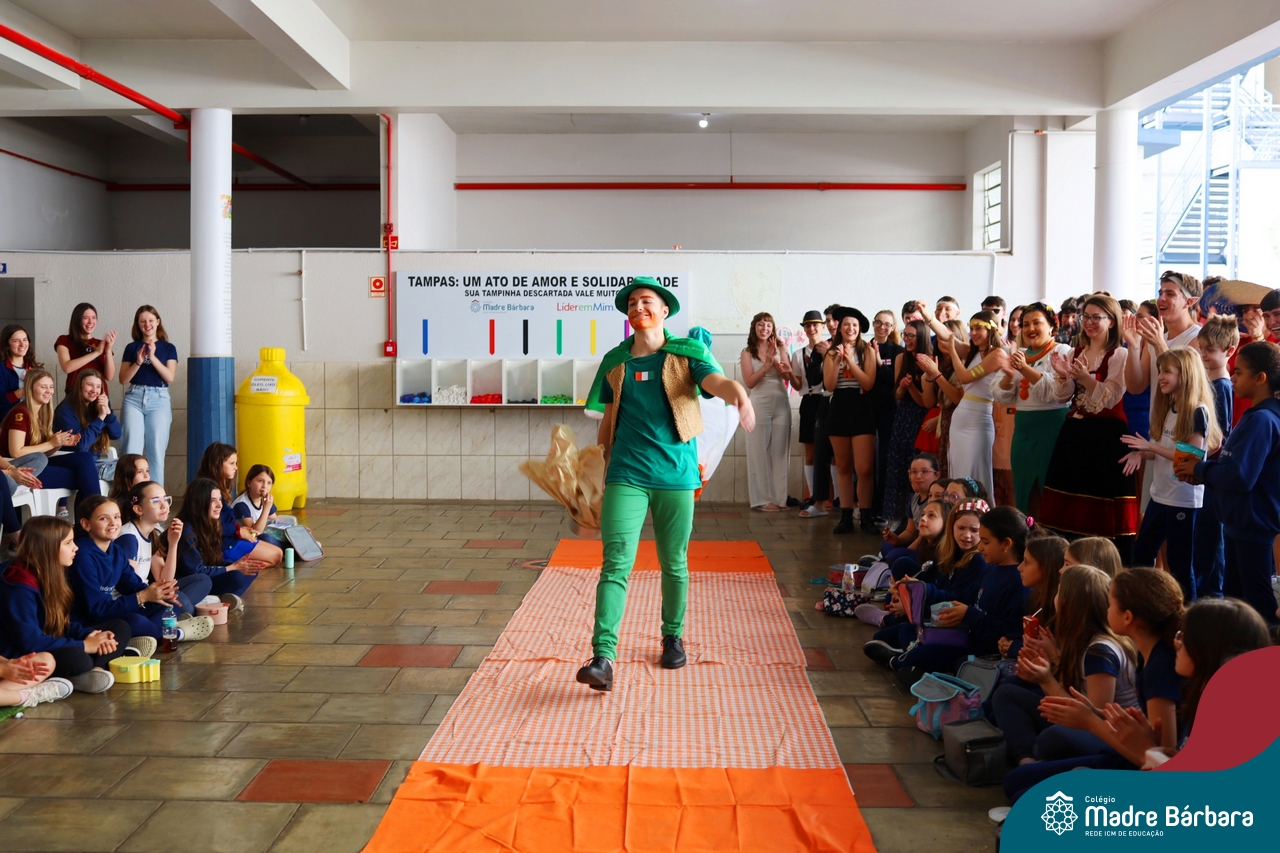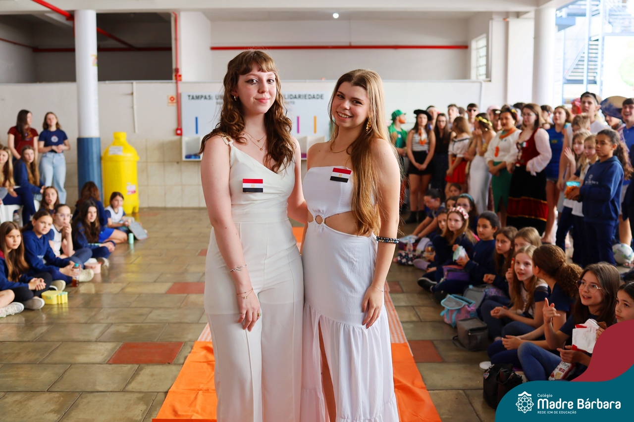 O Grêmio Estudantil do Colégio Madre Bárbara (Gembar) organizou o último trote do ano, superdivertido e cheio de criatividade com os estudantes do Terceirão. O tema foi “Países e Culturas”, e cada estudante caprichou nas vestimentas, representando diferentes partes do mundo com muito respeito e originalidade. Durante o evento, os alunos fizeram um lanche coletivo, posaram para fotos na área verde e animaram o recreio com um desfile cultural na área coberta. O momento foi marcado por integração, alegria e descontração, celebrando o espírito de união e encerrando mais uma etapa importante da caminhada escolar.