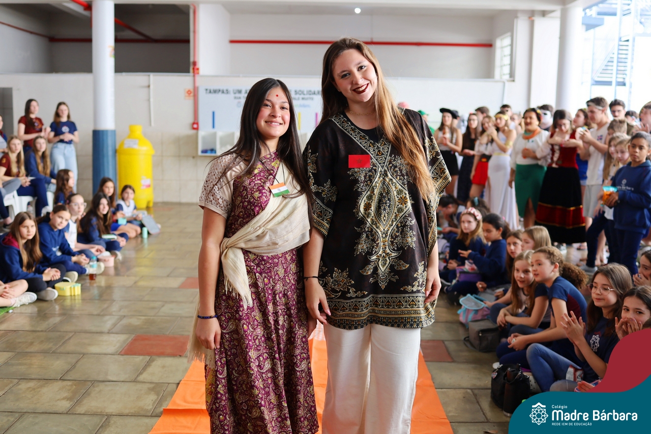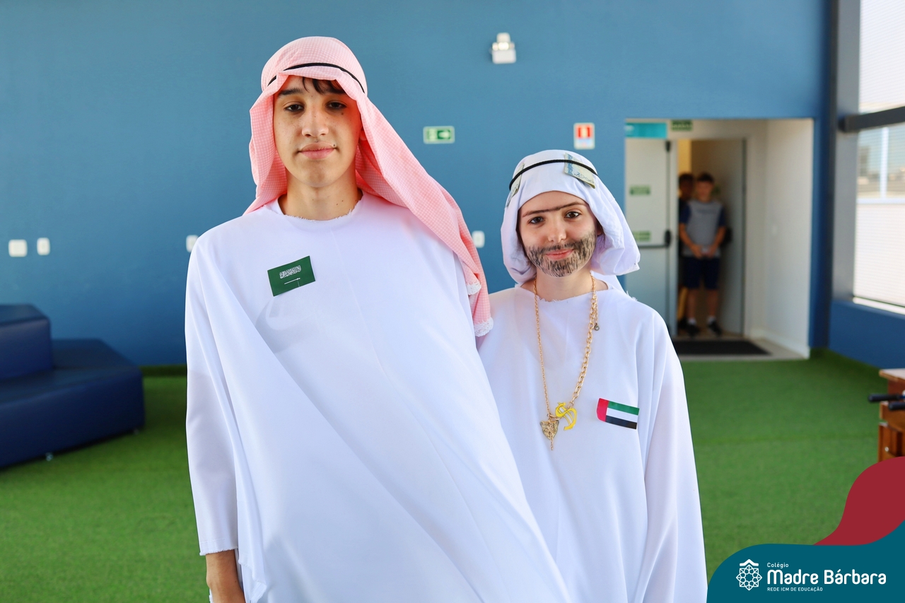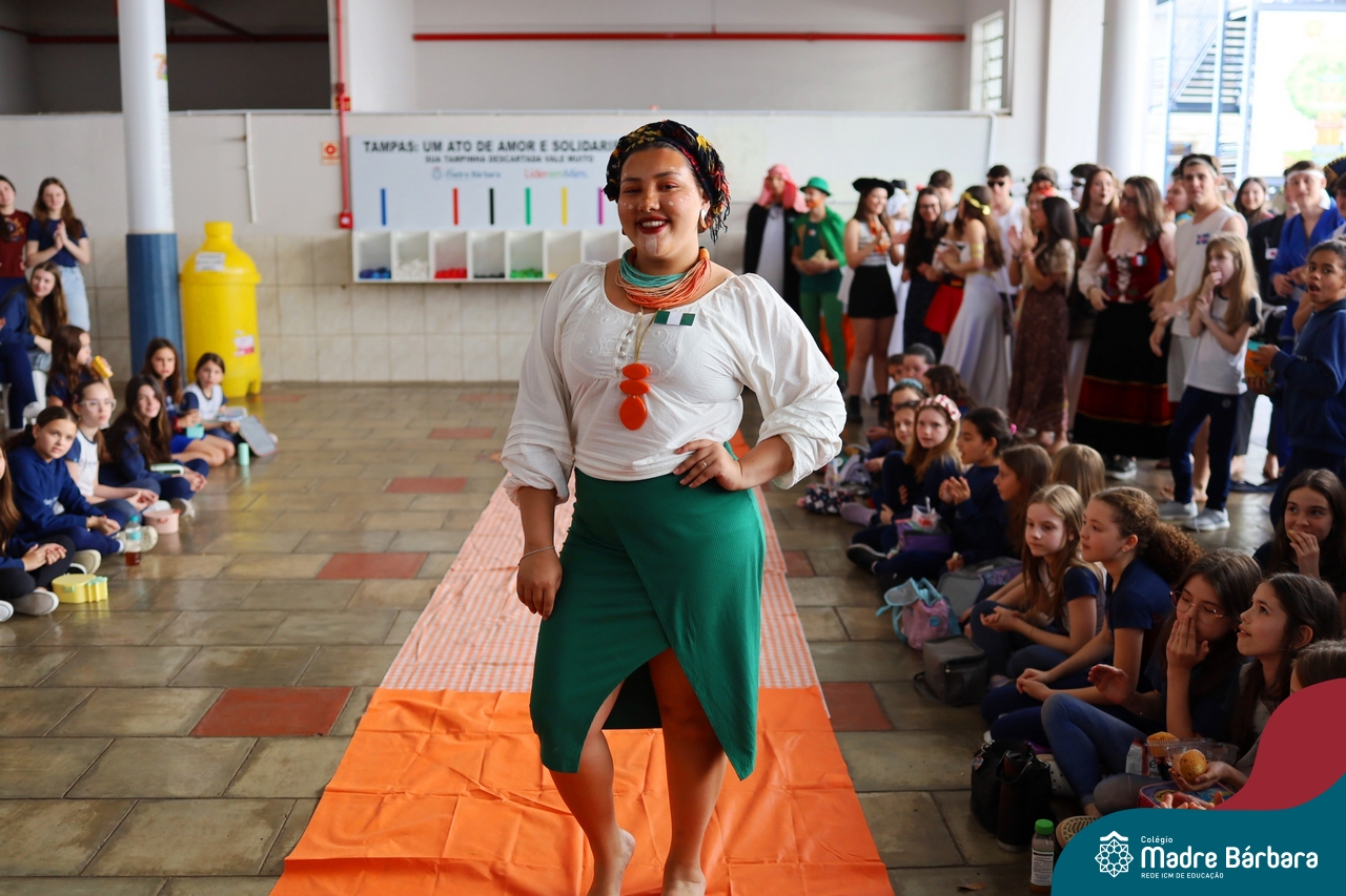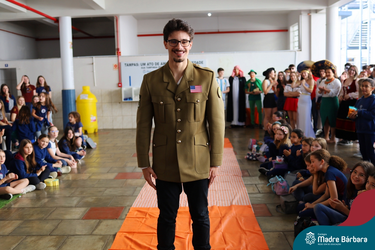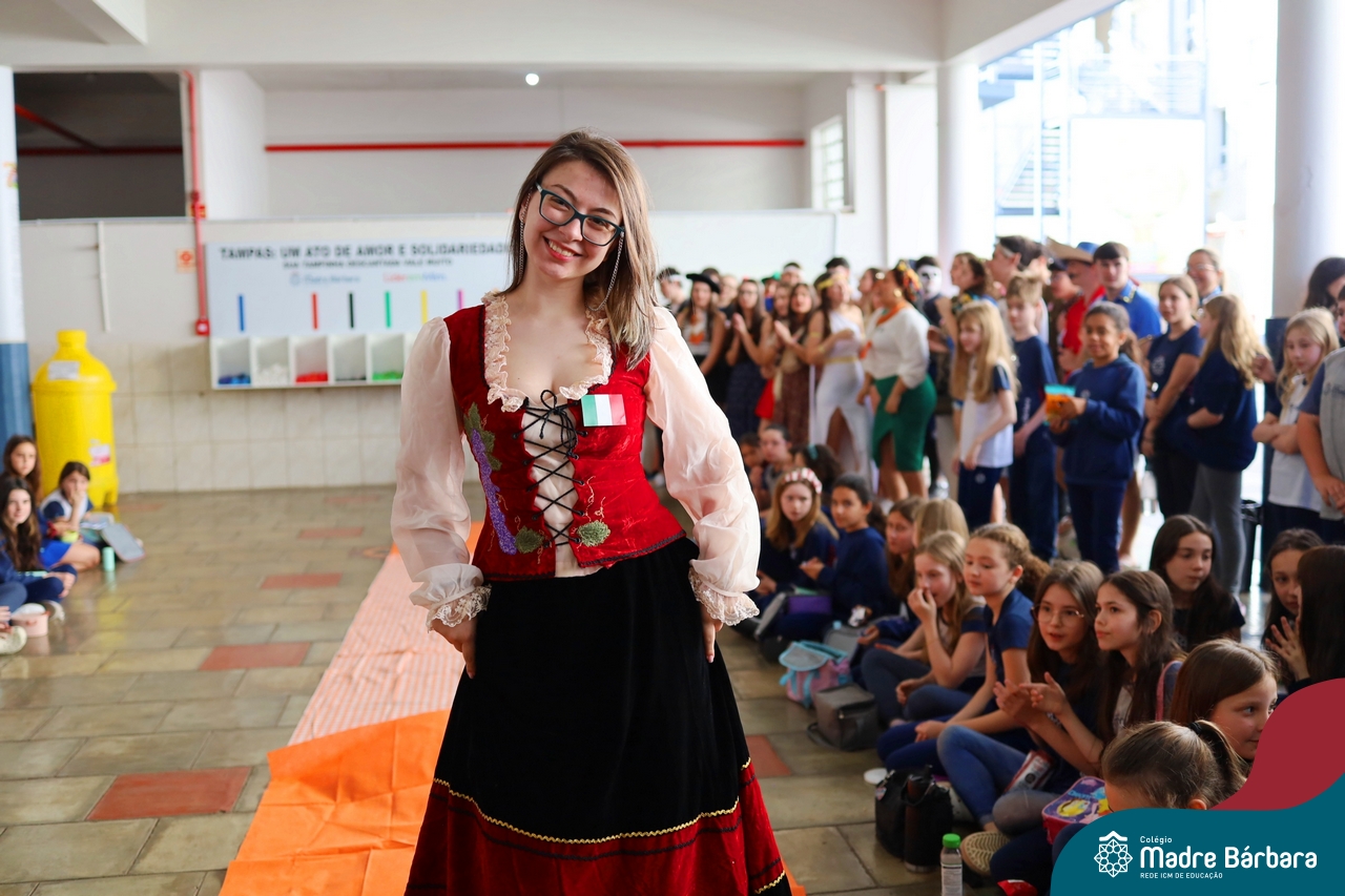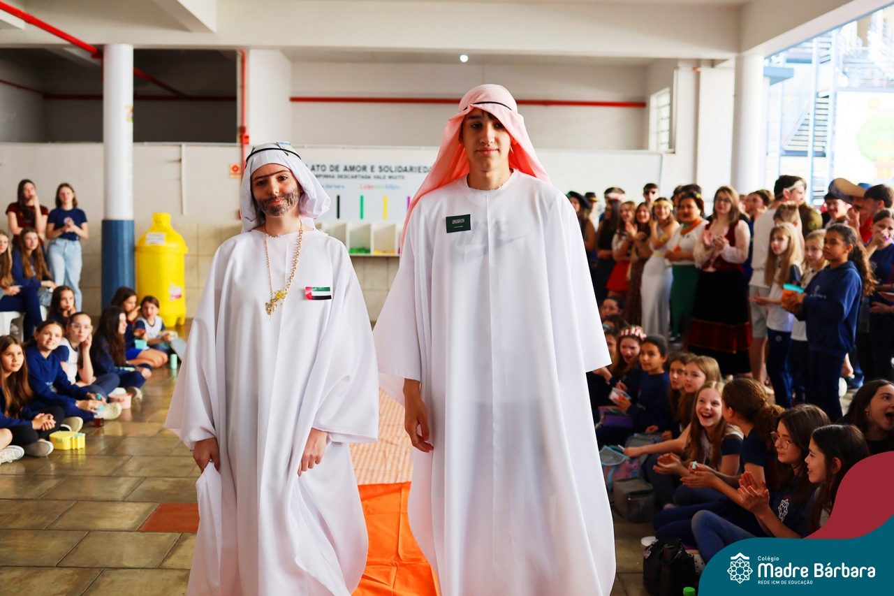 O Grêmio Estudantil do Colégio Madre Bárbara (Gembar) organizou o último trote do ano, superdivertido e cheio de criatividade com os estudantes do Terceirão. O tema foi “Países e Culturas”, e cada estudante caprichou nas vestimentas, representando diferentes partes do mundo com muito respeito e originalidade. Durante o evento, os alunos fizeram um lanche coletivo, posaram para fotos na área verde e animaram o recreio com um desfile cultural na área coberta. O momento foi marcado por integração, alegria e descontração, celebrando o espírito de união e encerrando mais uma etapa importante da caminhada escolar.