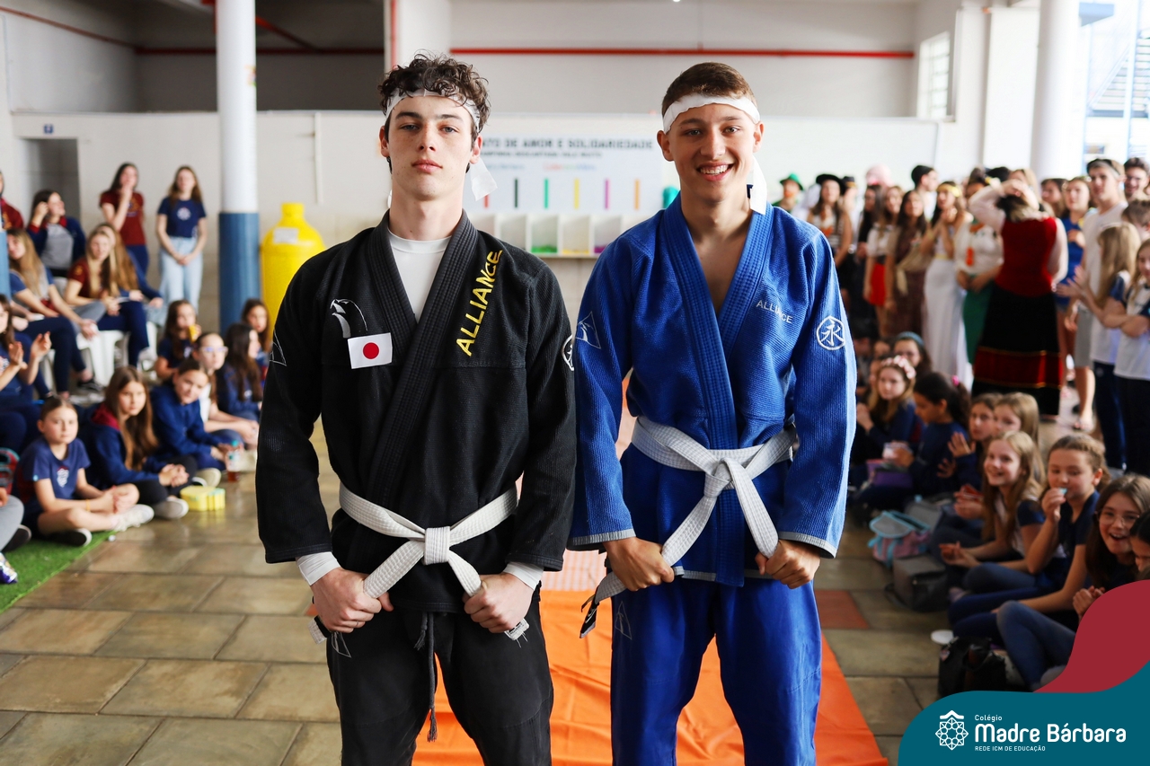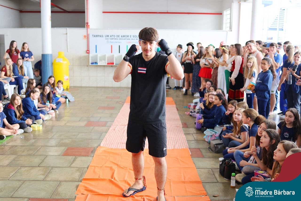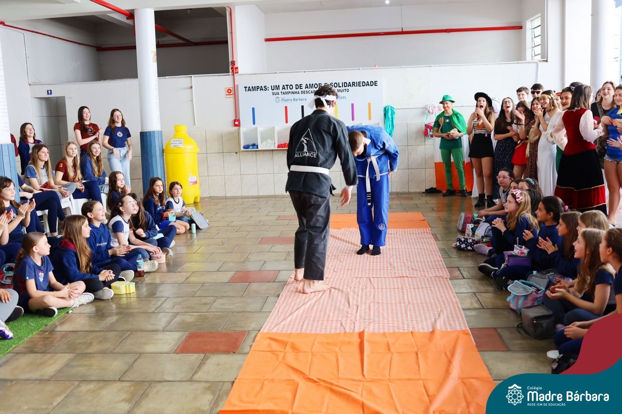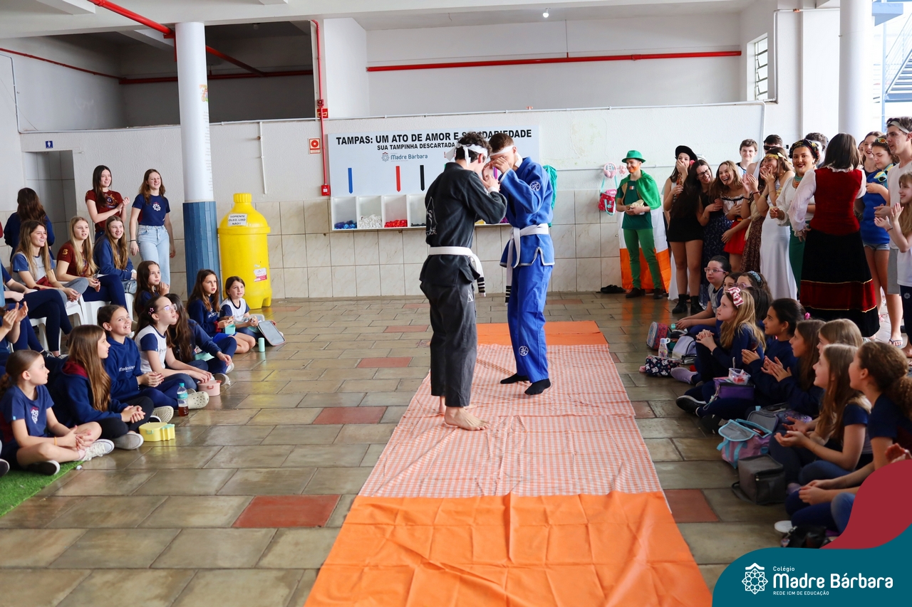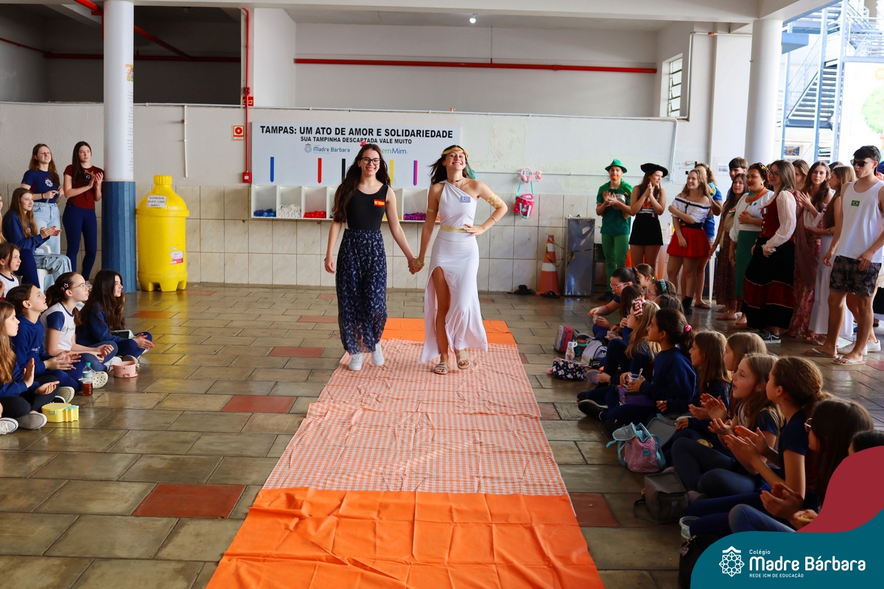 O Grêmio Estudantil do Colégio Madre Bárbara (Gembar) organizou o último trote do ano, superdivertido e cheio de criatividade com os estudantes do Terceirão. O tema foi “Países e Culturas”, e cada estudante caprichou nas vestimentas, representando diferentes partes do mundo com muito respeito e originalidade. Durante o evento, os alunos fizeram um lanche coletivo, posaram para fotos na área verde e animaram o recreio com um desfile cultural na área coberta. O momento foi marcado por integração, alegria e descontração, celebrando o espírito de união e encerrando mais uma etapa importante da caminhada escolar.