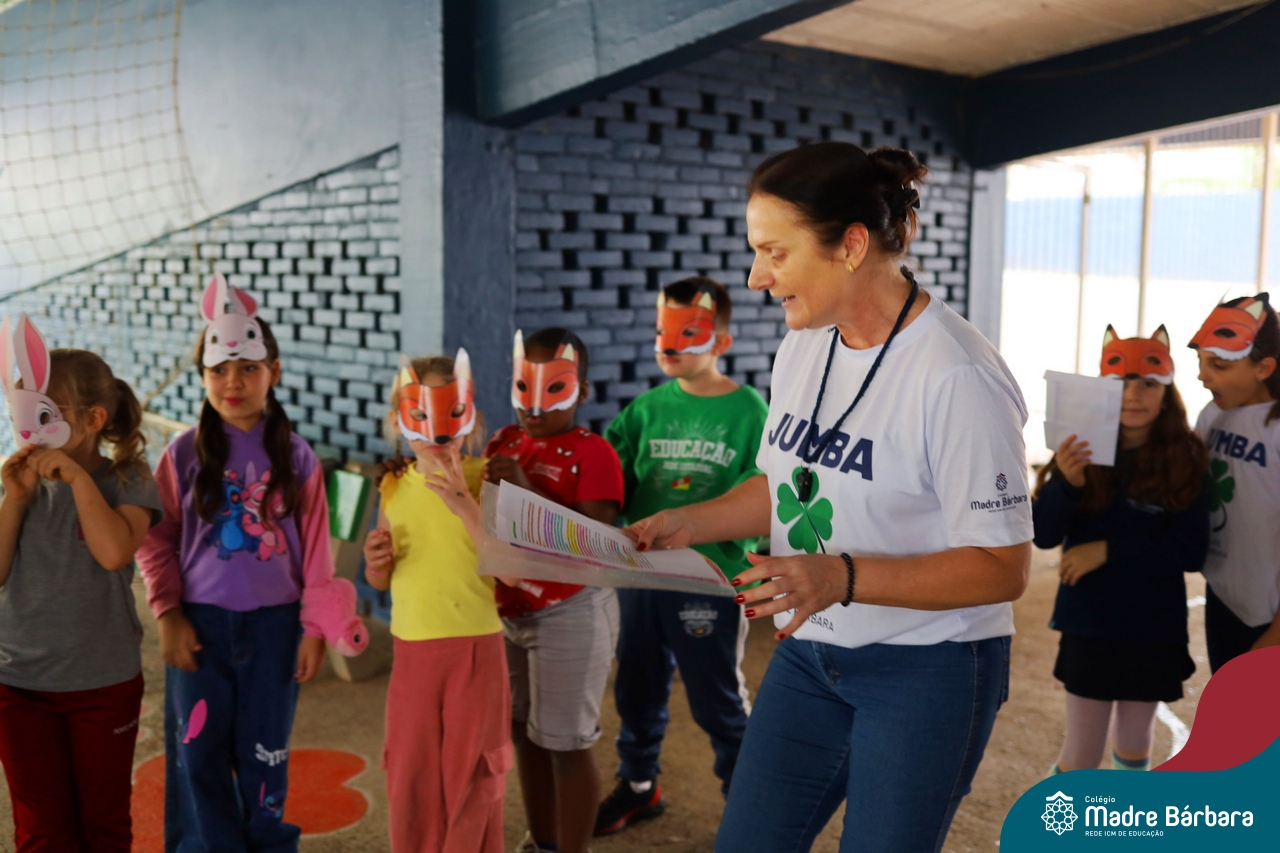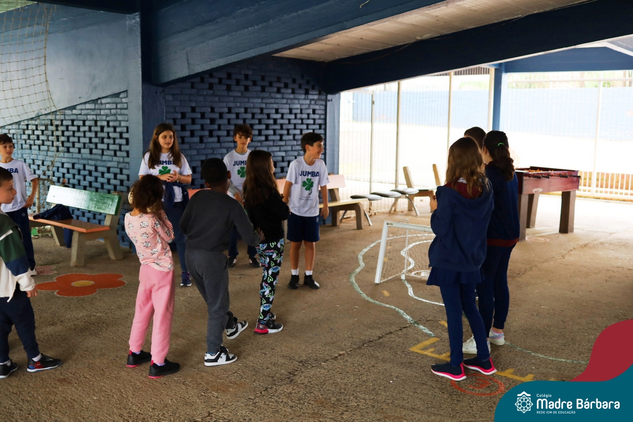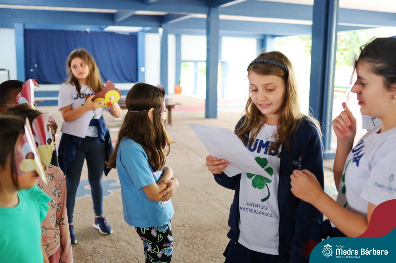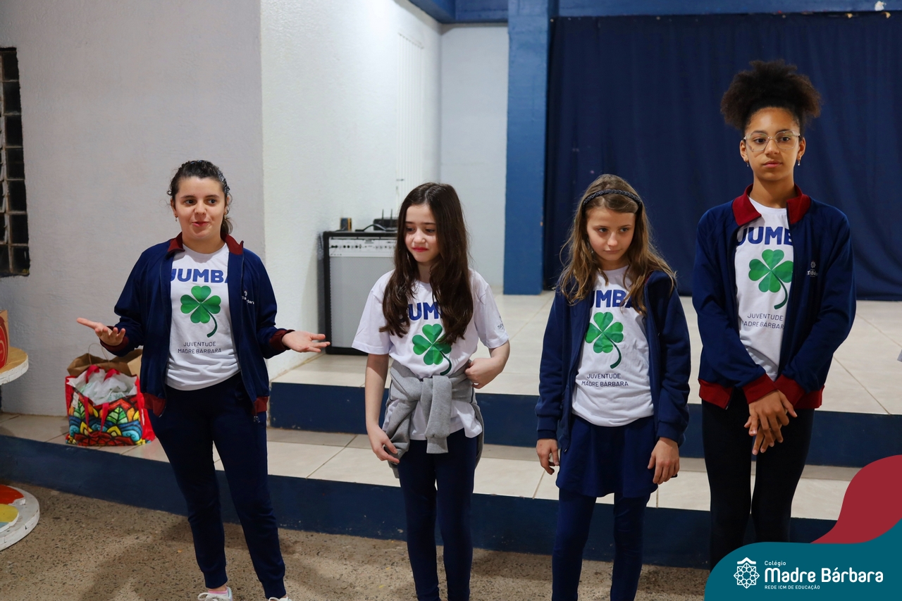 Inspirados pelo tema “Solidariedade é Ação”, o grupo da Juventude do Madre Bárbara (Jumba) do turno da manhã, realizou uma visita especial ao Centro Lenira Maria Müller Klein, da Sociedade Lajeadense de Atendimento à Criança e ao Adolescente (Slan). A atividade buscou promover momentos de integração, empatia e alegria entre os estudantes do Colégio Madre Bárbara e as crianças atendidas pela instituição.