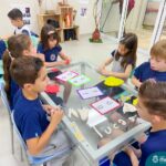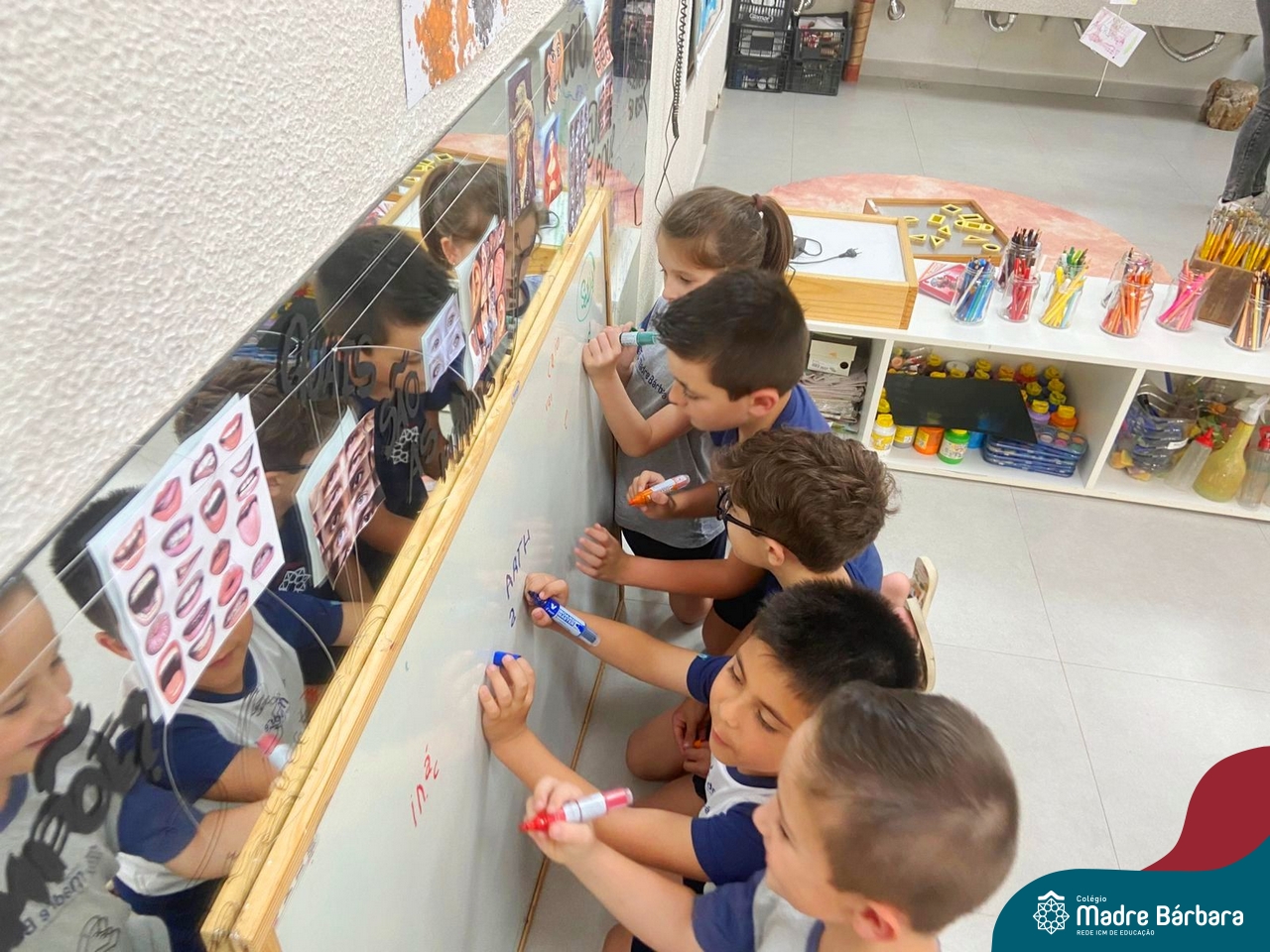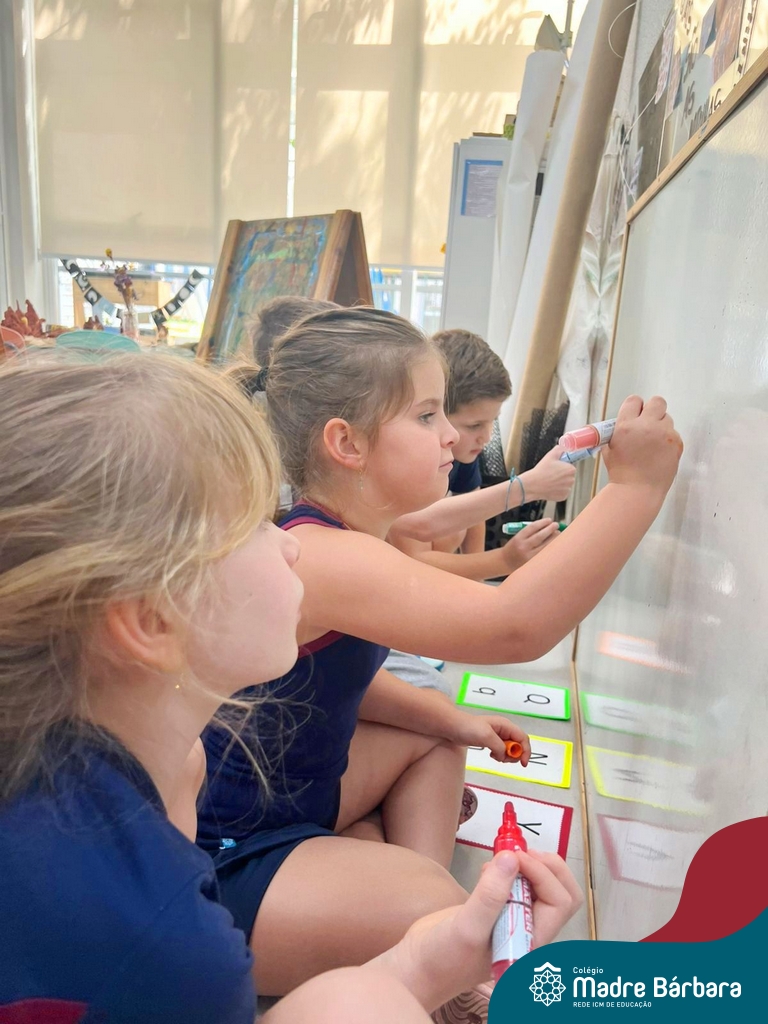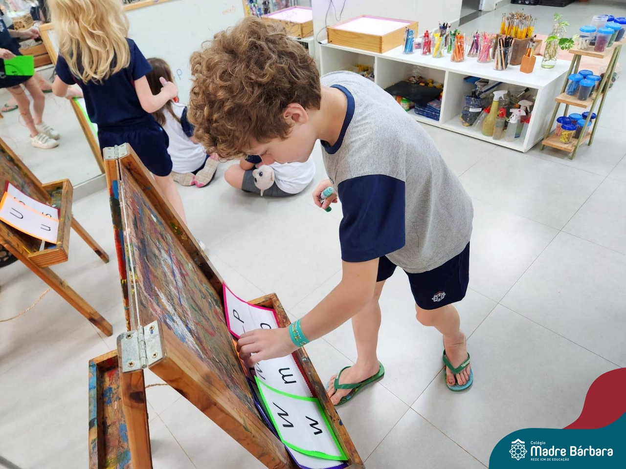 Nesta terça-feira, dia 5, os alunos do 1º ano participaram de uma vivência especial no ateliê: o lançamento da letra script minúscula. Por meio de materiais lúdicos e diversas propostas investigativas, as crianças puderam explorar, experimentar e reconhecer essa nova forma de escrita. O objetivo da atividade foi proporcionar um primeiro contato significativo, despertando a curiosidade e promovendo a autonomia no processo de alfabetização.