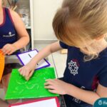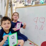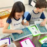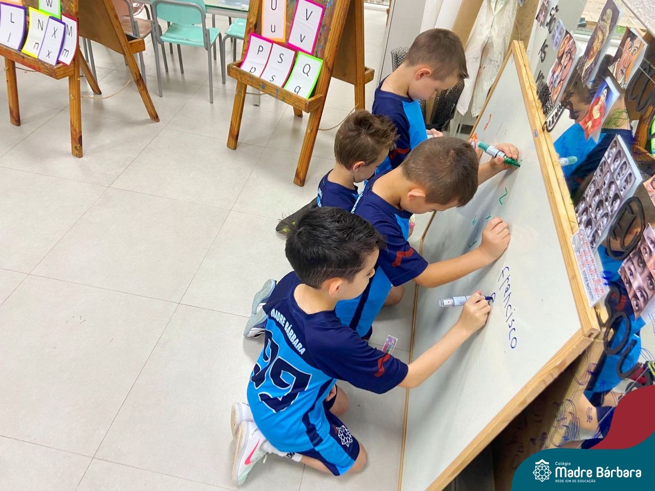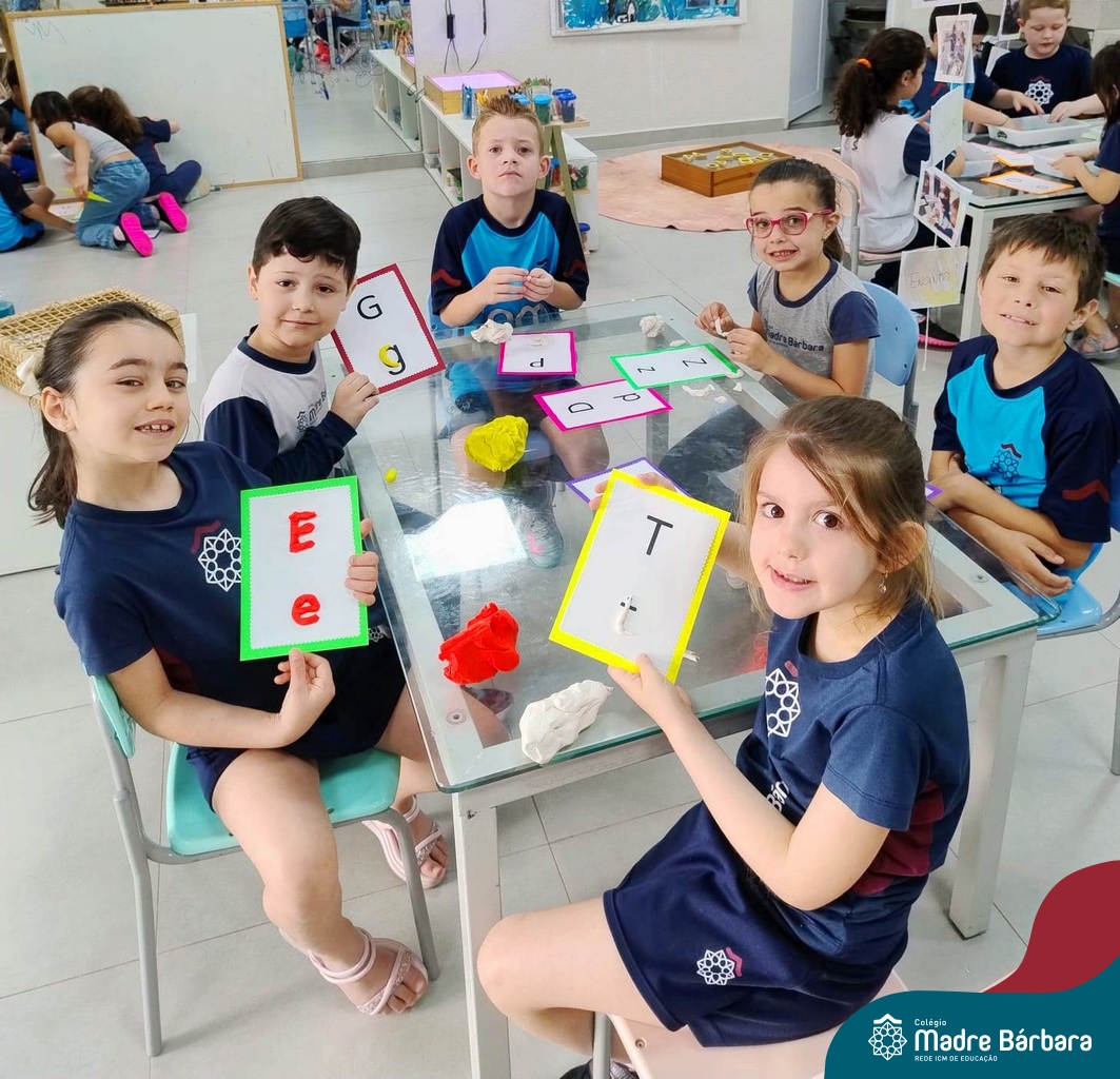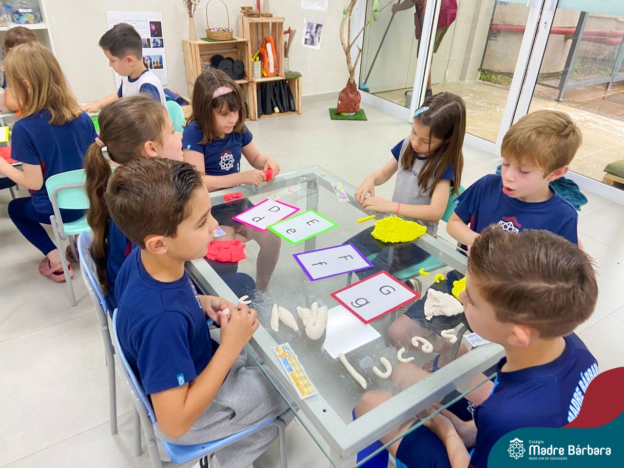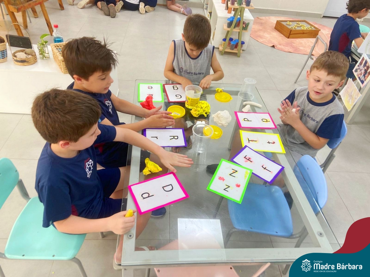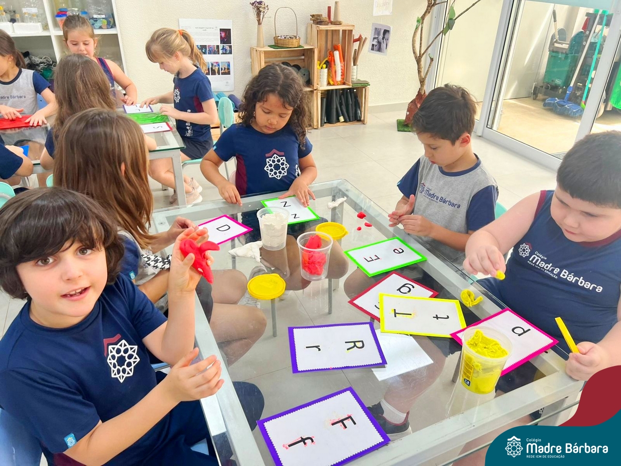 Modelagem, traçados, observações e brincadeiras com letras fizeram parte desse momento, garantindo que cada estudante pudesse se aproximar da letra script de maneira leve e prazerosa.