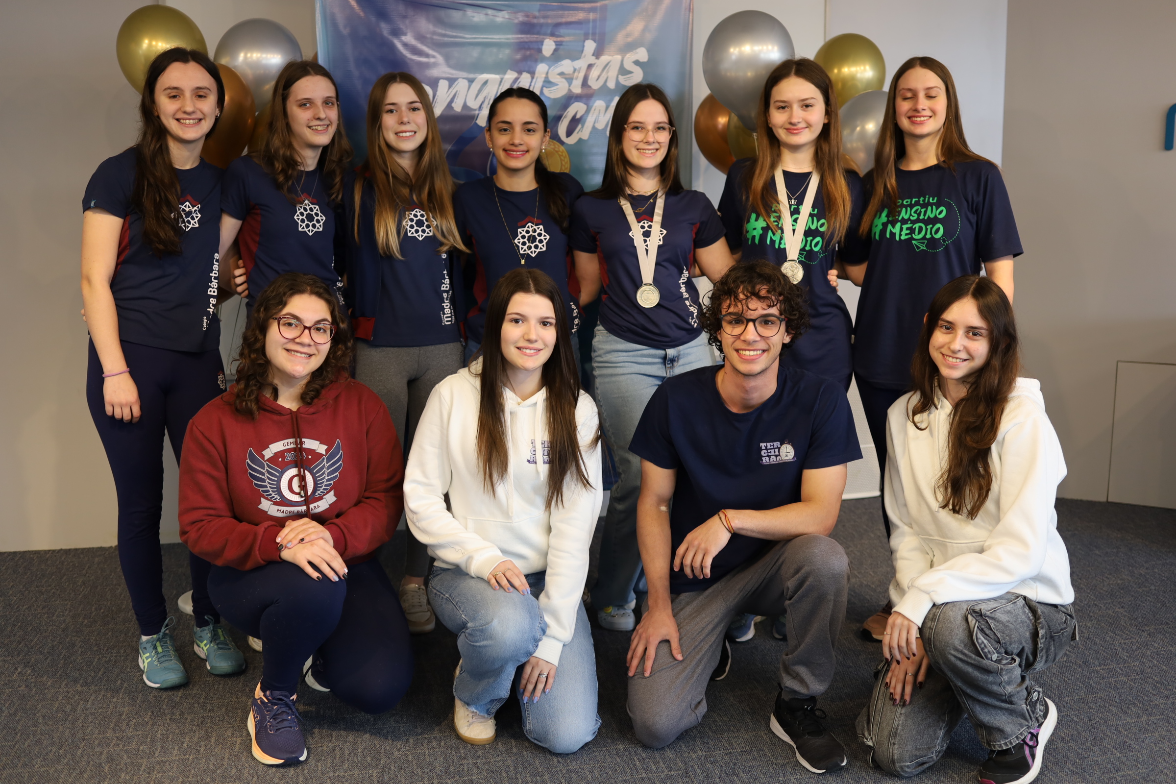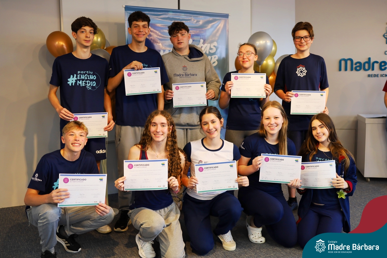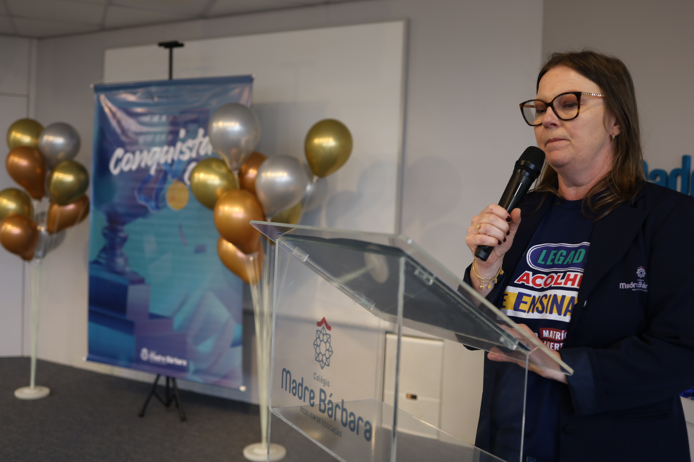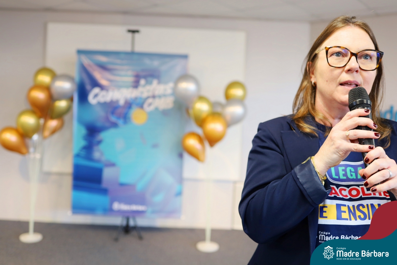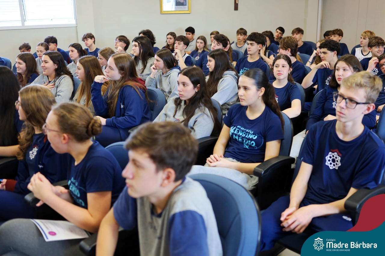Os estudantes e professores do Ensino Fundamental – Anos Finais e do Ensino Médio do Colégio Madre Bárbara – Rede ICM se reuniram na manhã desta sexta-feira (18.11) para celebrar uma série de conquistas marcantes alcançadas pelos estudantes ao longo do ano letivo de 2025. A participação em diversas olimpíadas científicas, concursos e projetos externos reforçou o compromisso do Colégio com a construção de uma cultura olímpica e com o incentivo ao desenvolvimento acadêmico, pessoal e profissional dos alunos. Segundo a equipe pedagógica, experiências como essas ampliam o raciocínio lógico, estimulam a criatividade, fortalecem a autonomia e revelam novos interesses e vocações, resultados que ultrapassam o currículo tradicional e impactam profundamente a formação dos jovens.