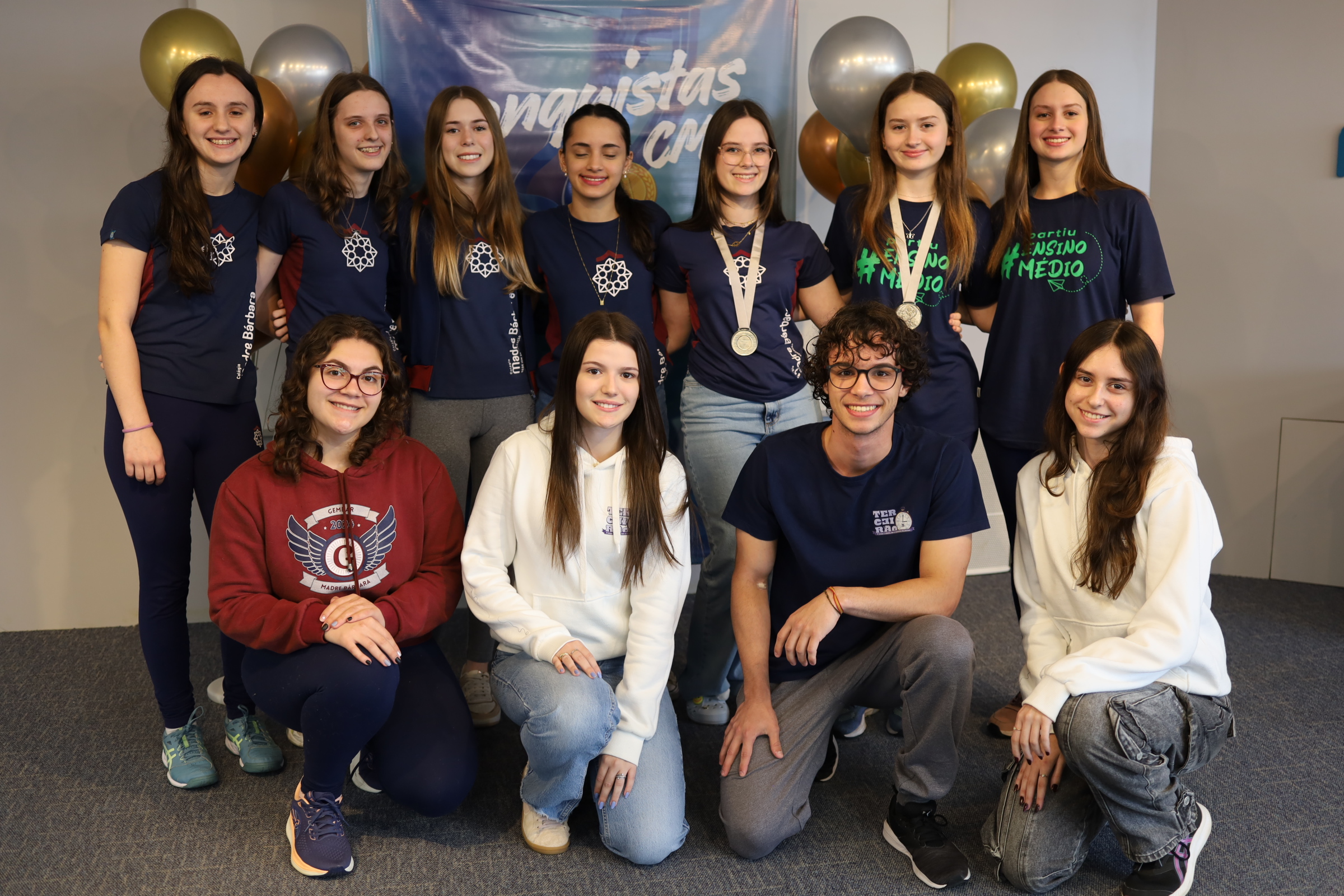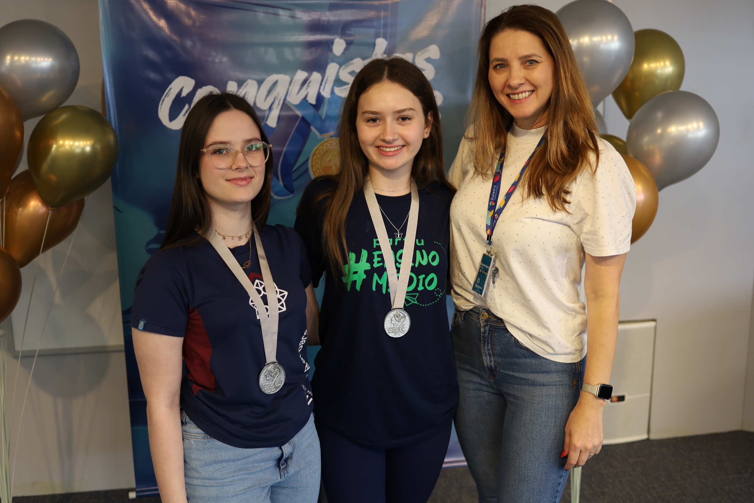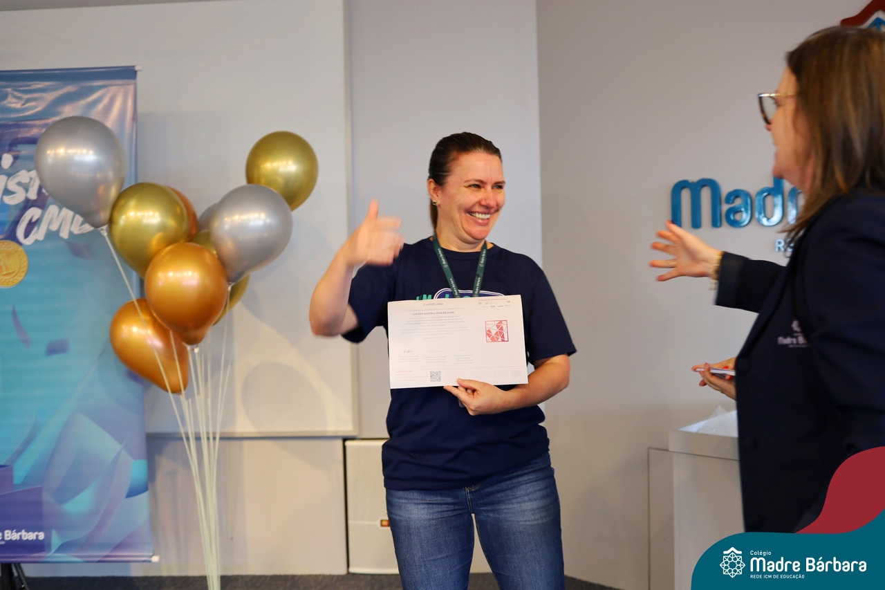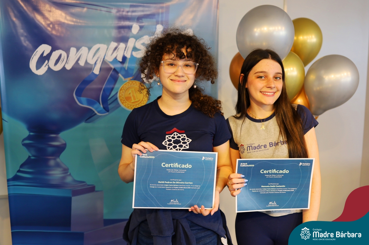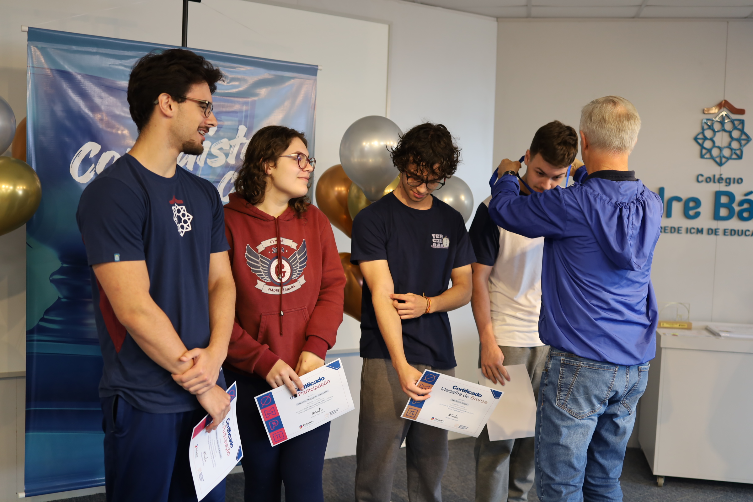 Os estudantes e professores do Ensino Fundamental – Anos Finais e do Ensino Médio do Colégio Madre Bárbara – Rede ICM se reuniram na manhã desta sexta-feira (18.11) para celebrar uma série de conquistas marcantes alcançadas pelos estudantes ao longo do ano letivo de 2025. A participação em diversas olimpíadas científicas, concursos e projetos externos reforçou o compromisso do Colégio com a construção de uma cultura olímpica e com o incentivo ao desenvolvimento acadêmico, pessoal e profissional dos alunos. Segundo a equipe pedagógica, experiências como essas ampliam o raciocínio lógico, estimulam a criatividade, fortalecem a autonomia e revelam novos interesses e vocações, resultados que ultrapassam o currículo tradicional e impactam profundamente a formação dos jovens.