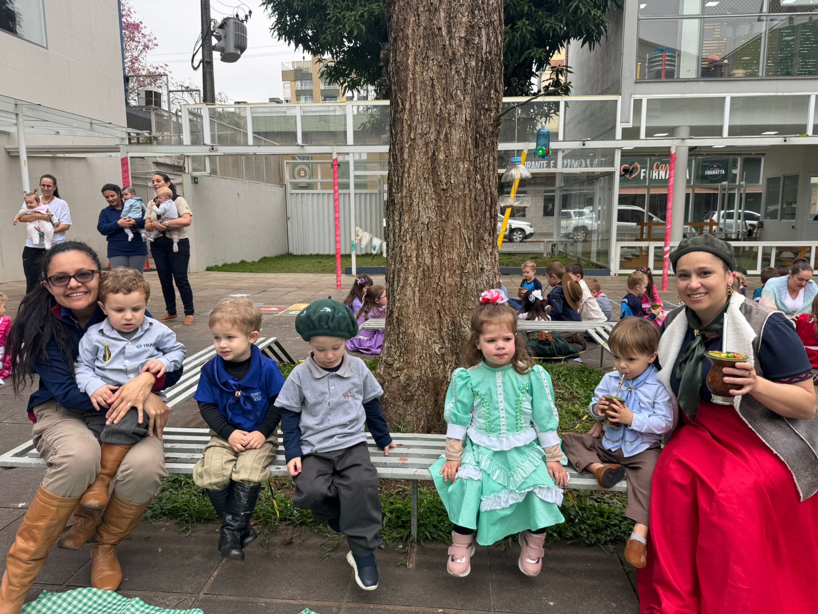 As nossas crianças da Educação Infantil curtiram a quarta-feira (17.09) com tudo que a tradicional Semana Farroupilha tem que ter: um bom chimarrão, roda de conversa, música e dança! A mateada ocorreu nos dois turnos no pátio do Colégio Madre Bárbara e contou com muita diversão e alegria, embalada por uma boa música gauchesca tocada na gaita do professor Junior!