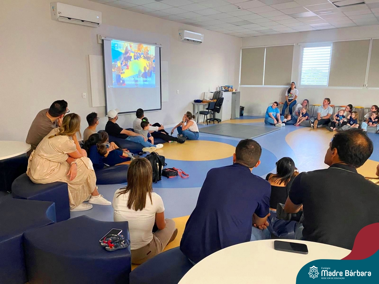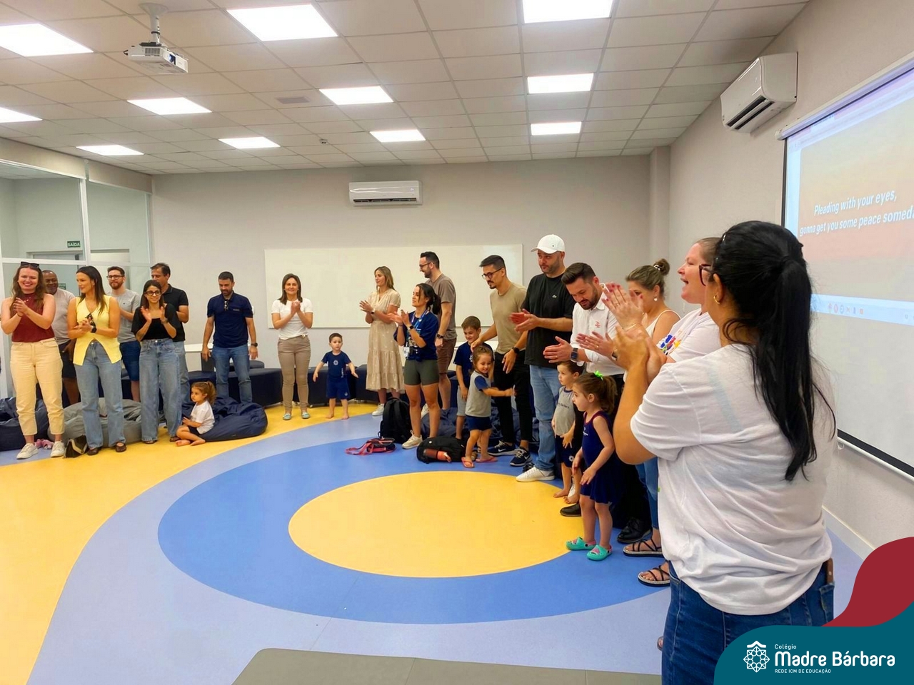Na noite do dia 13 de novembro, as famílias foram convidadas a participar de um momento especial no Espaço Integrar do Colégio Madre Bárbara, para apreciarem o encantador projeto “Ritmo e Movimento”, que está em andamento nas turmas. Iniciamos a noite com a apresentação de um vídeo mostrando algumas das vivências já realizadas. Em seguida, convidamos as famílias a brincarem conosco, explorando movimentos com o corpo, criando ritmos com tampinhas, copinhos e muita animação!