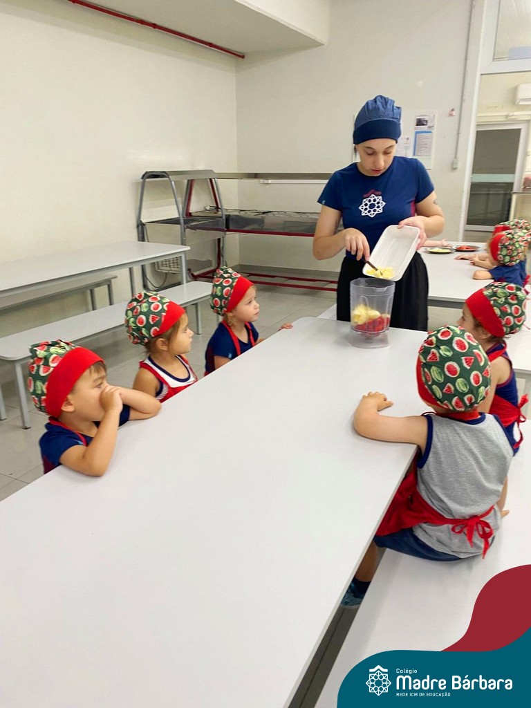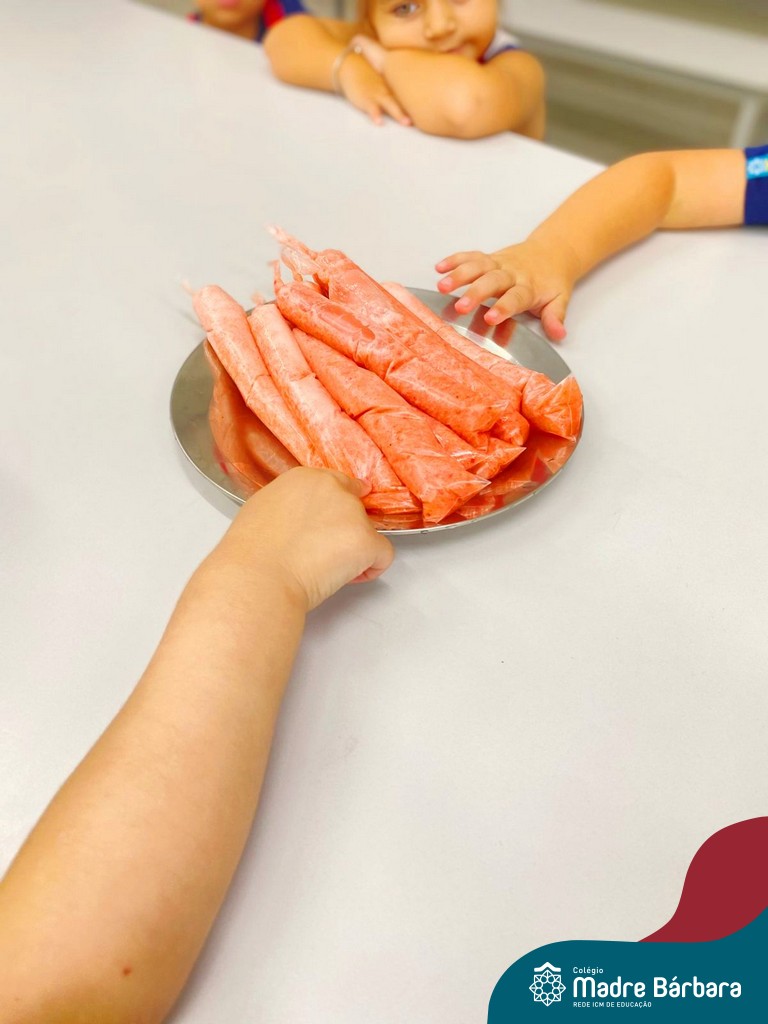 Os alunos do Nível 3A da Educação Infantil do Colégio Madre Bárbara viveram momentos de muita diversão, aprendizado e descobertas em uma atividade super especial. Em uma proposta cheia de significado, as crianças colocaram a “mão na massa” para preparar deliciosos sacolés. Além de ser uma experiência saborosa, a atividade trabalhou a coordenação motora, a atenção às etapas do preparo e a importância da colaboração em grupo. Cada criança participou com entusiasmo, aprendendo sobre medidas, misturas e a transformação dos ingredientes.