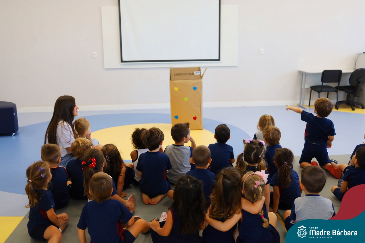 Na segunda-feira, dia 23.02, os Níveis 3 viveram um momento especial do projeto de acolhida “Pequenos corações, grandes descobertas”. De coração aberto, as crianças foram surpreendidas com a encantadora história que saiu de dentro da caixa de corações: “O Coração de Nino”, de Moni Zauza. Foi um momento repleto de emoções, escuta sensível e descobertas sobre os sentimentos que moram dentro de cada um.