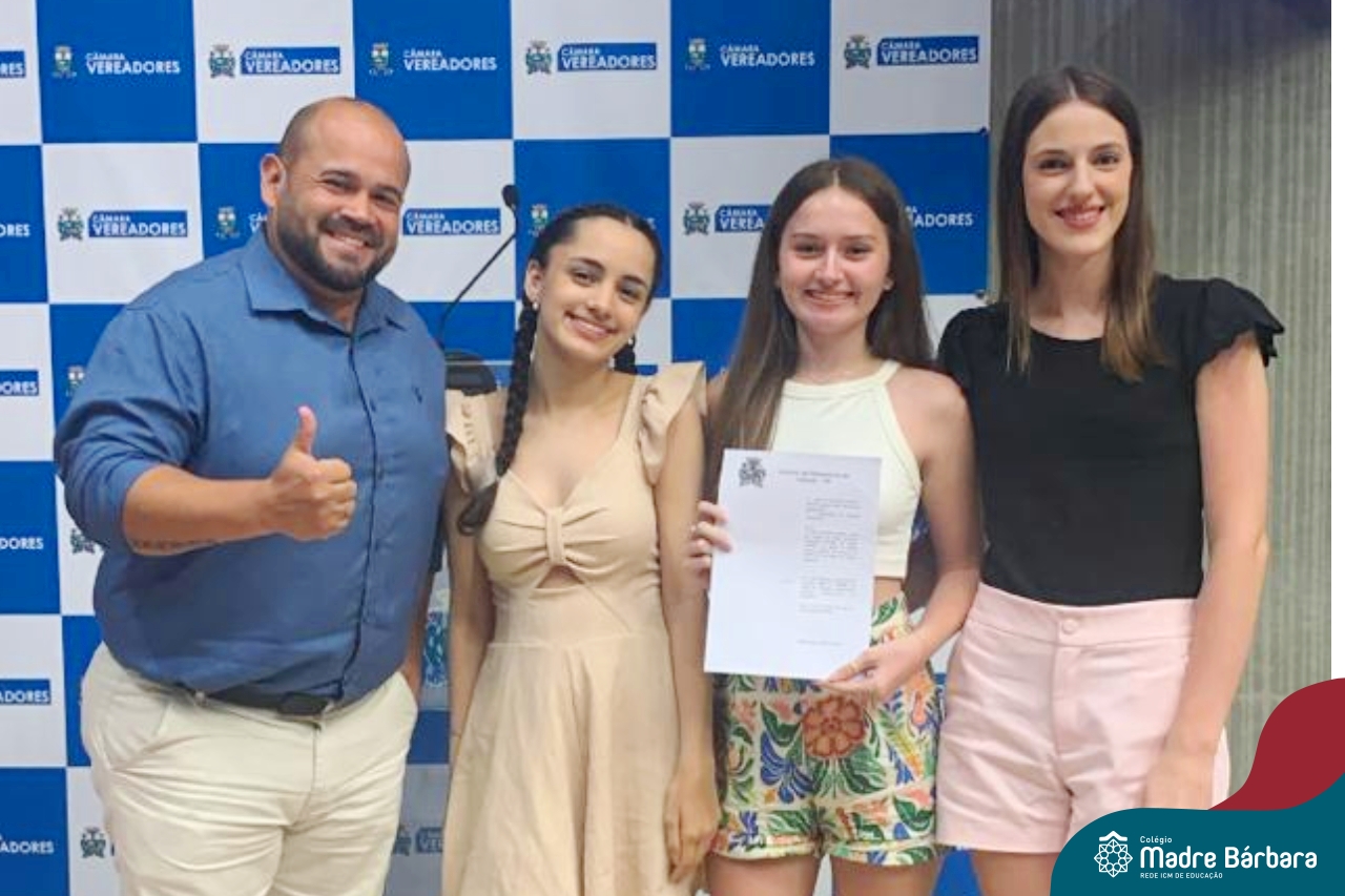 Um projeto desenvolvido pelas estudantes do 1º ano do Ensino Médio do Colégio Madre Bárbara – Rede ICM foi aprovado pela Câmara de Vereadores de Lajeado durante a sessão desta terça-feira, 16. Os vereadores autorizaram a criação da “Semana de Prevenção à Escoliose”, que prevê a realização de campanhas preventivas e explicativas no ambiente escolar e em instituições de saúde do município. A proposta foi apresentada pelo vereador Jones Vavá, mas a iniciativa foi das estudantes Juliane Maria de Borba, Maria Beatriz Rosa Barreto Silva e Sofia Veit Holme. A ideia surgiu durante a disciplina de Itinerário Formativo de Modelos de Governança e Política com o professor Lucas Schneider, que demonstrou na prática o protagonismo e a aplicação do conhecimento em benefício da comunidade.
