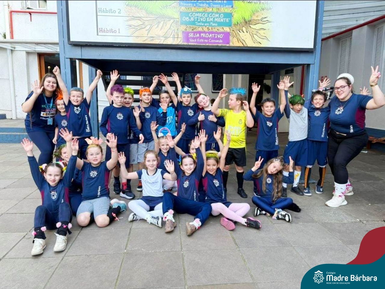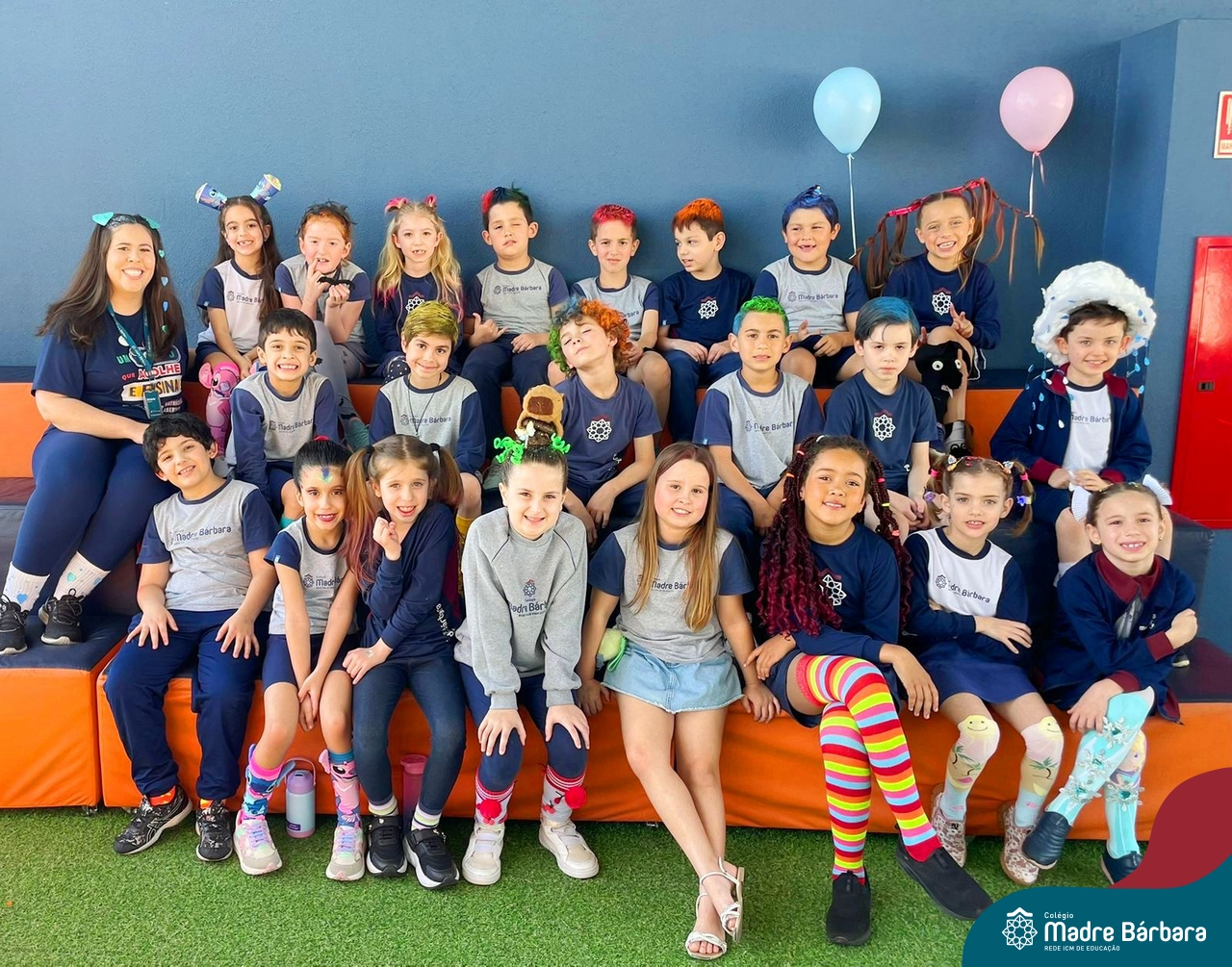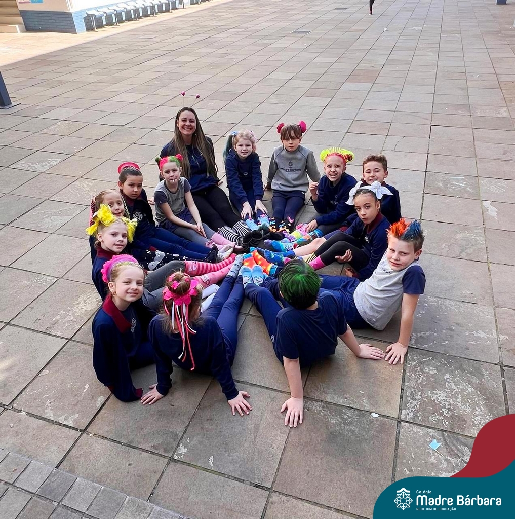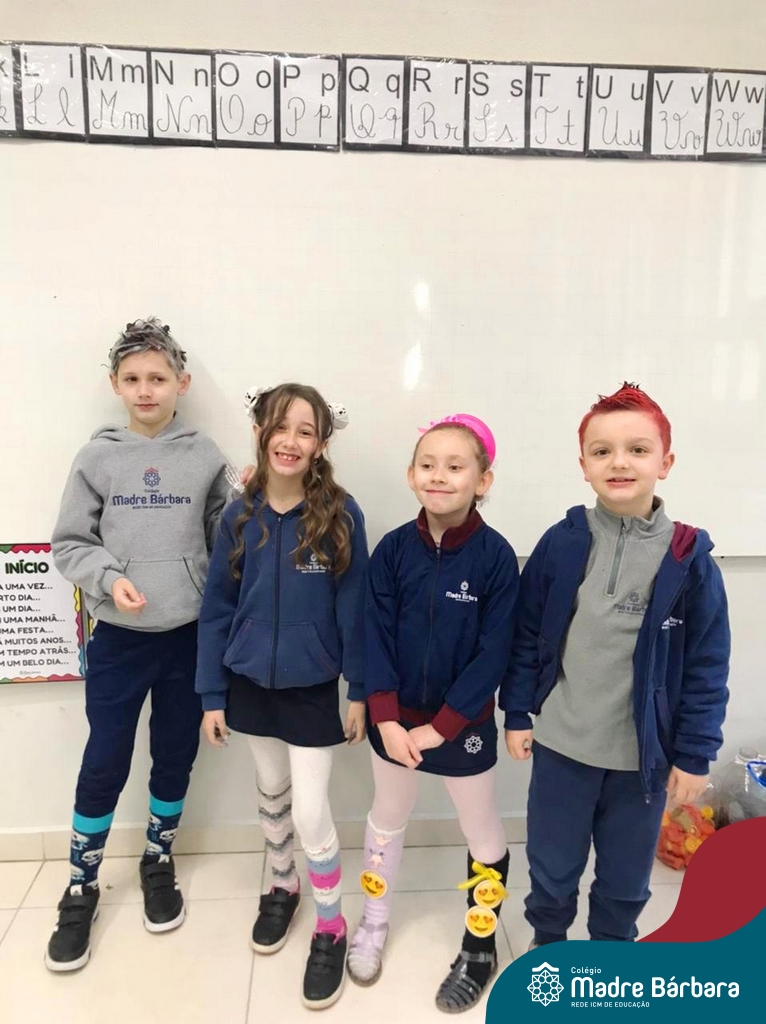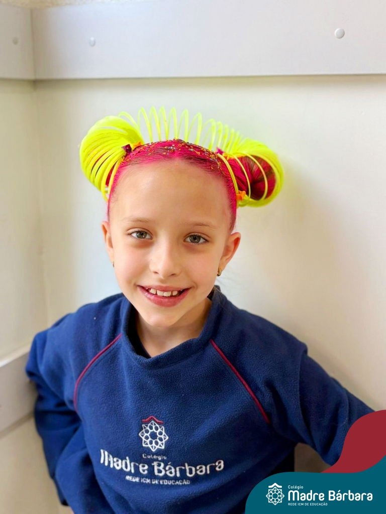 Com muita criatividade e entusiasmo, os estudantes participaram do Dia do Cabelo Maluco, do Dia da Meia Maluca e da Festa das Cores, vivências que despertaram o senso de pertencimento, a alegria de estar juntos e o prazer de aprender por meio da diversão.