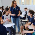 Dando continuidade a programação da Semana Maria da Penha na Escola, foi realizado na manhã da quarta-feira (26.11) a Roda de Conversa com as turmas dos 6º anos do Ensino Fundamental – Anos Finais, com o objetivo de promover reflexão sobre respeito e igualdade de direitos. A atividade foi dirigida pela Assistente Social Melissa Capra e pela Orientadora Educacional Odete Spessatto, que abordaram o assunto de forma sensível e esclarecedora. Durante o encontro, os alunos conheceram a história de vida de Maria da Penha e como surgiu a Lei que leva o seu nome. O trabalho realizado pelos alunos, nomeado como Varal do Respeito, evidenciou o entendimento sobre a importância em combater qualquer forma de violência, com destaque à proteção para as mulheres.