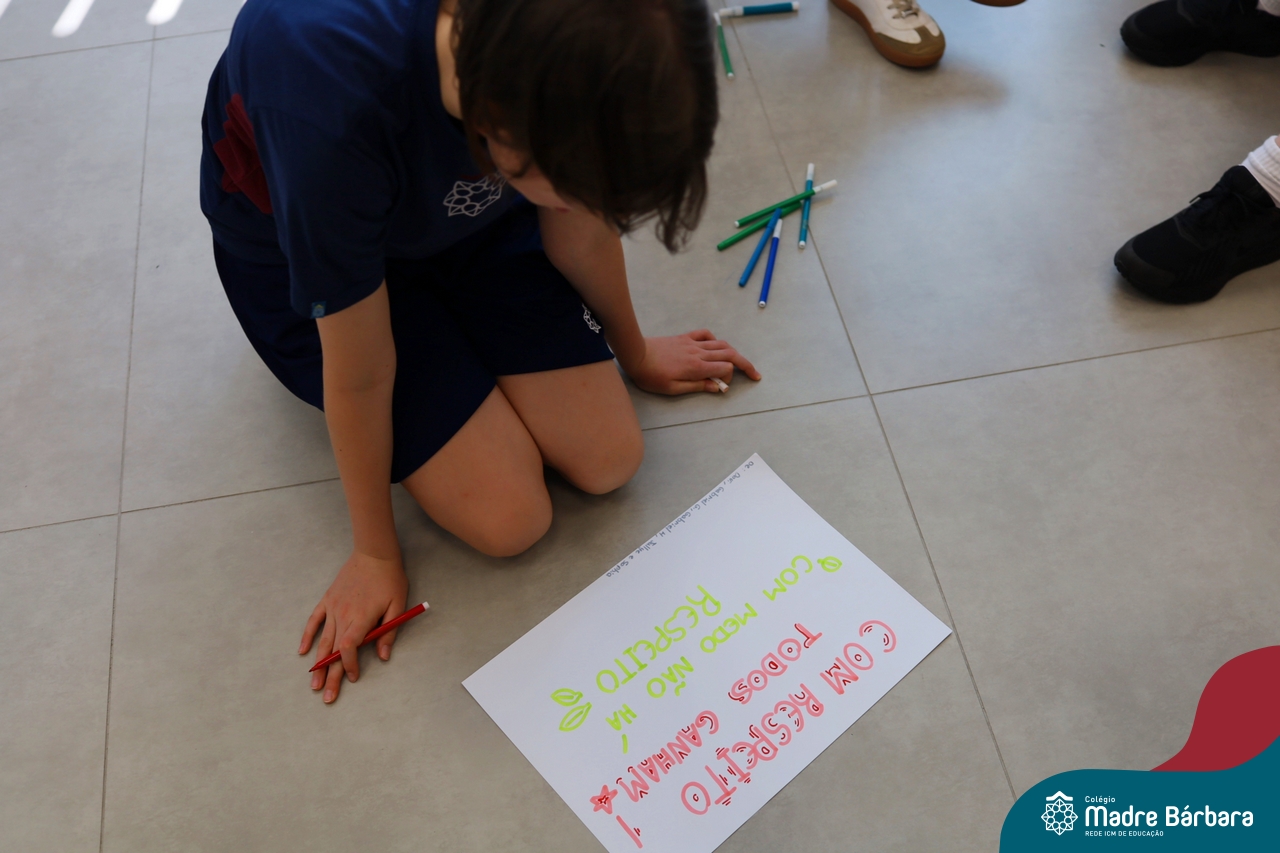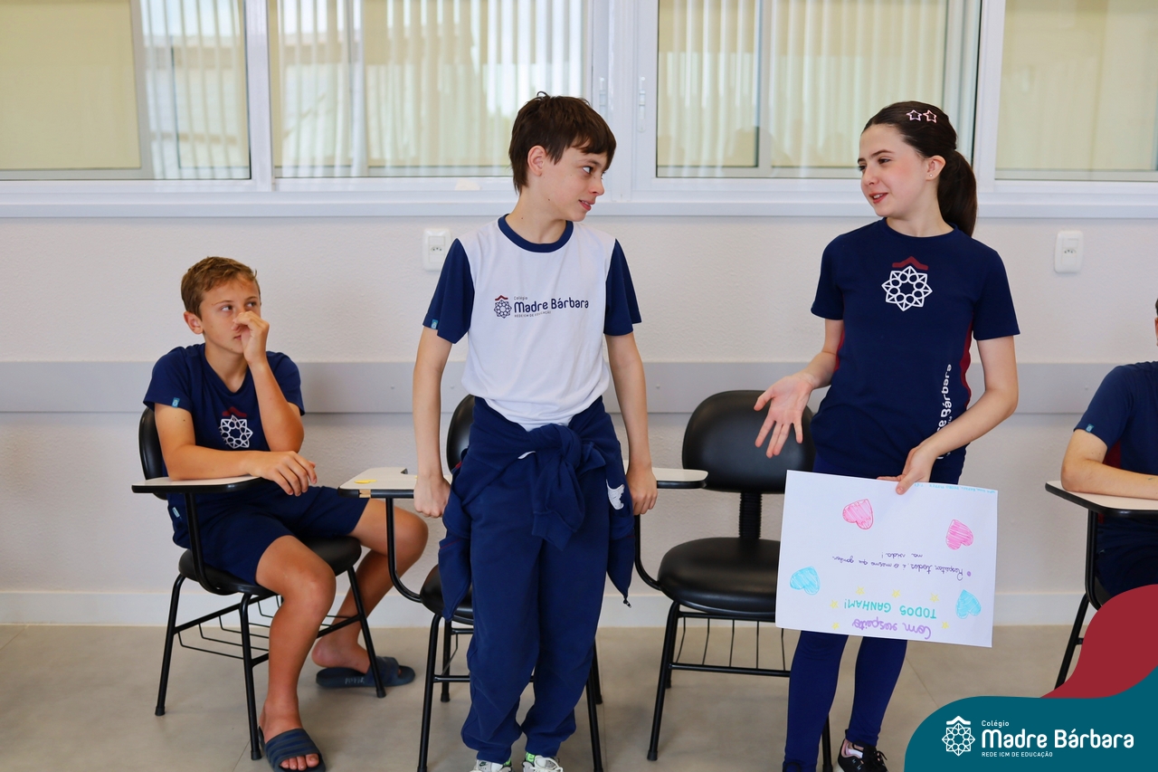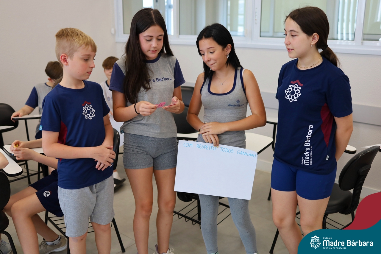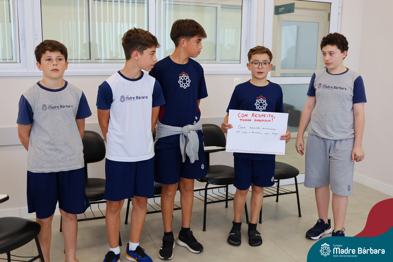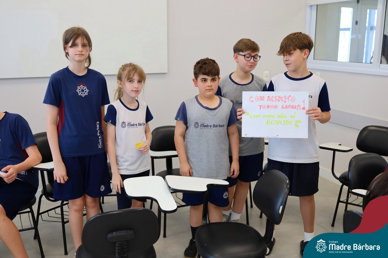 Dando continuidade a programação da Semana Maria da Penha na Escola, foi realizado na manhã da quarta-feira (26.11) a Roda de Conversa com as turmas dos 6º anos do Ensino Fundamental – Anos Finais, com o objetivo de promover reflexão sobre respeito e igualdade de direitos. A atividade foi dirigida pela Assistente Social Melissa Capra e pela Orientadora Educacional Odete Spessatto, que abordaram o assunto de forma sensível e esclarecedora. Durante o encontro, os alunos conheceram a história de vida de Maria da Penha e como surgiu a Lei que leva o seu nome. O trabalho realizado pelos alunos, nomeado como Varal do Respeito, evidenciou o entendimento sobre a importância em combater qualquer forma de violência, com destaque à proteção para as mulheres.