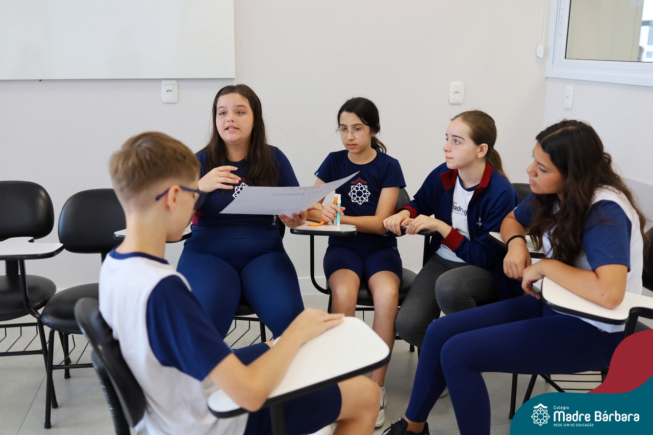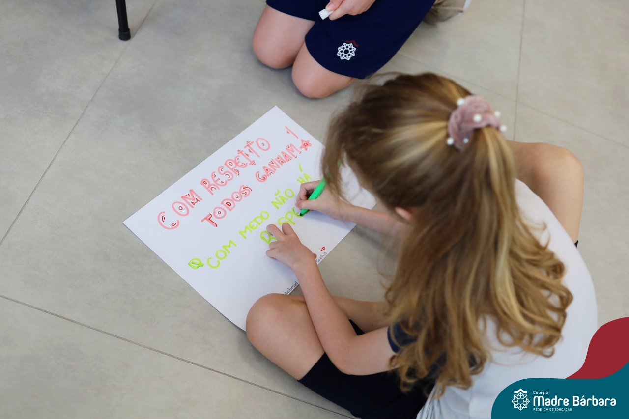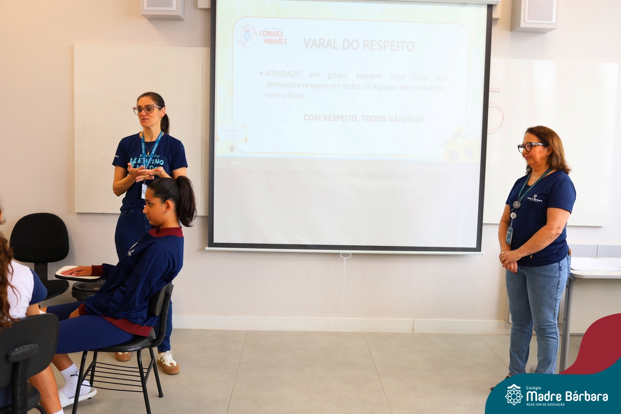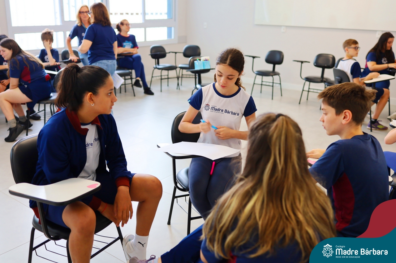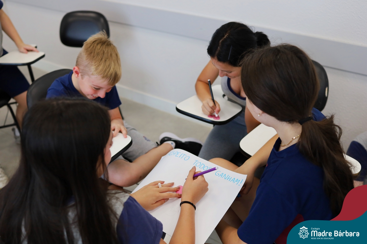 Dando continuidade a programação da Semana Maria da Penha na Escola, foi realizado na manhã da quarta-feira (26.11) a Roda de Conversa com as turmas dos 6º anos do Ensino Fundamental – Anos Finais, com o objetivo de promover reflexão sobre respeito e igualdade de direitos. A atividade foi dirigida pela Assistente Social Melissa Capra e pela Orientadora Educacional Odete Spessatto, que abordaram o assunto de forma sensível e esclarecedora. Durante o encontro, os alunos conheceram a história de vida de Maria da Penha e como surgiu a Lei que leva o seu nome. O trabalho realizado pelos alunos, nomeado como Varal do Respeito, evidenciou o entendimento sobre a importância em combater qualquer forma de violência, com destaque à proteção para as mulheres.