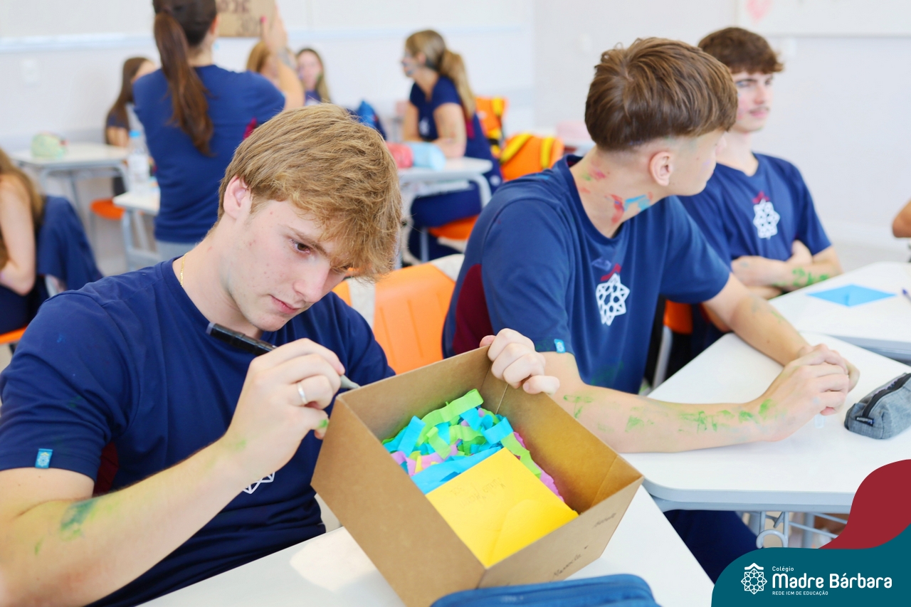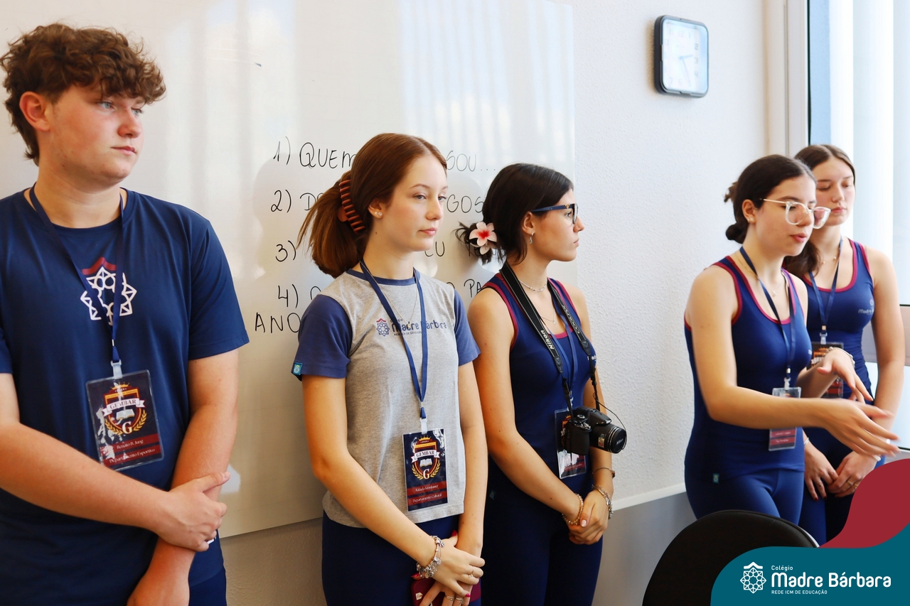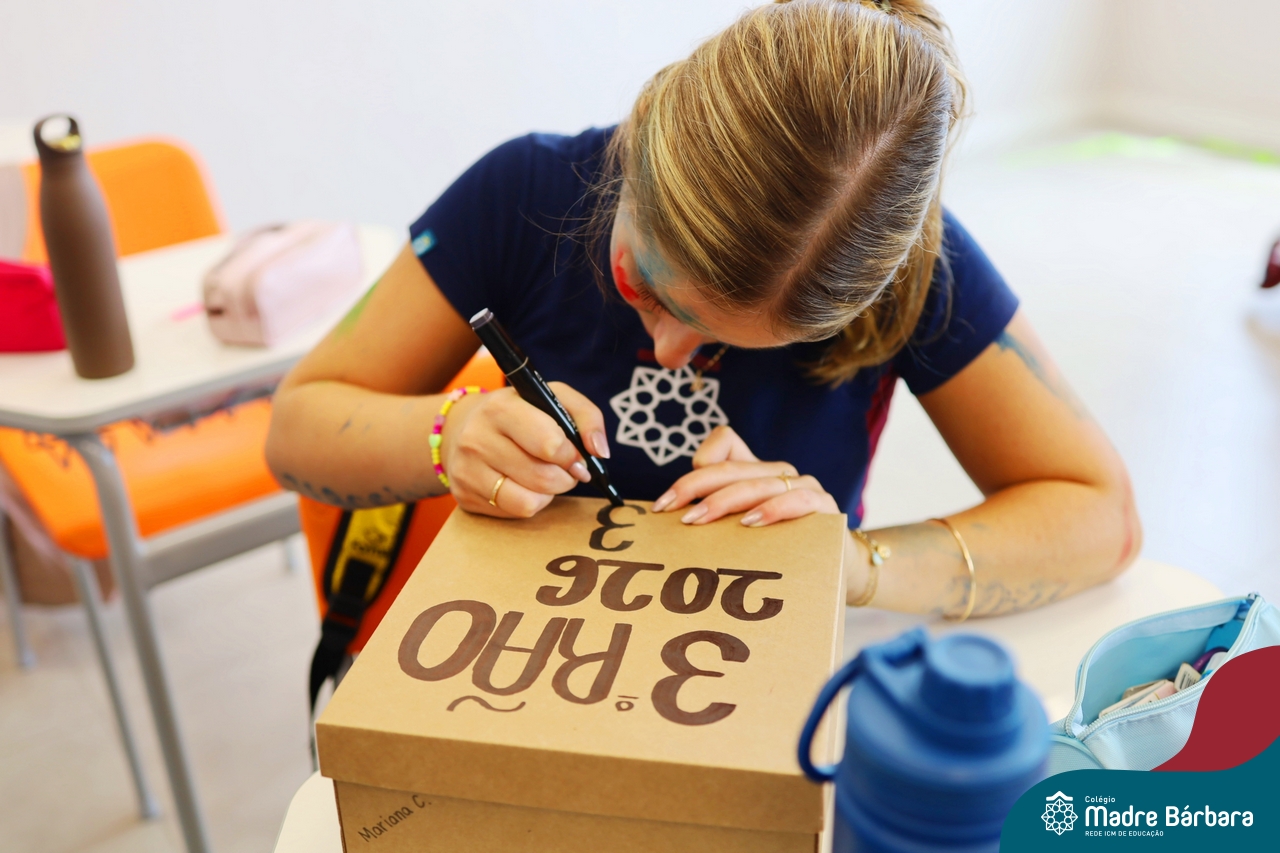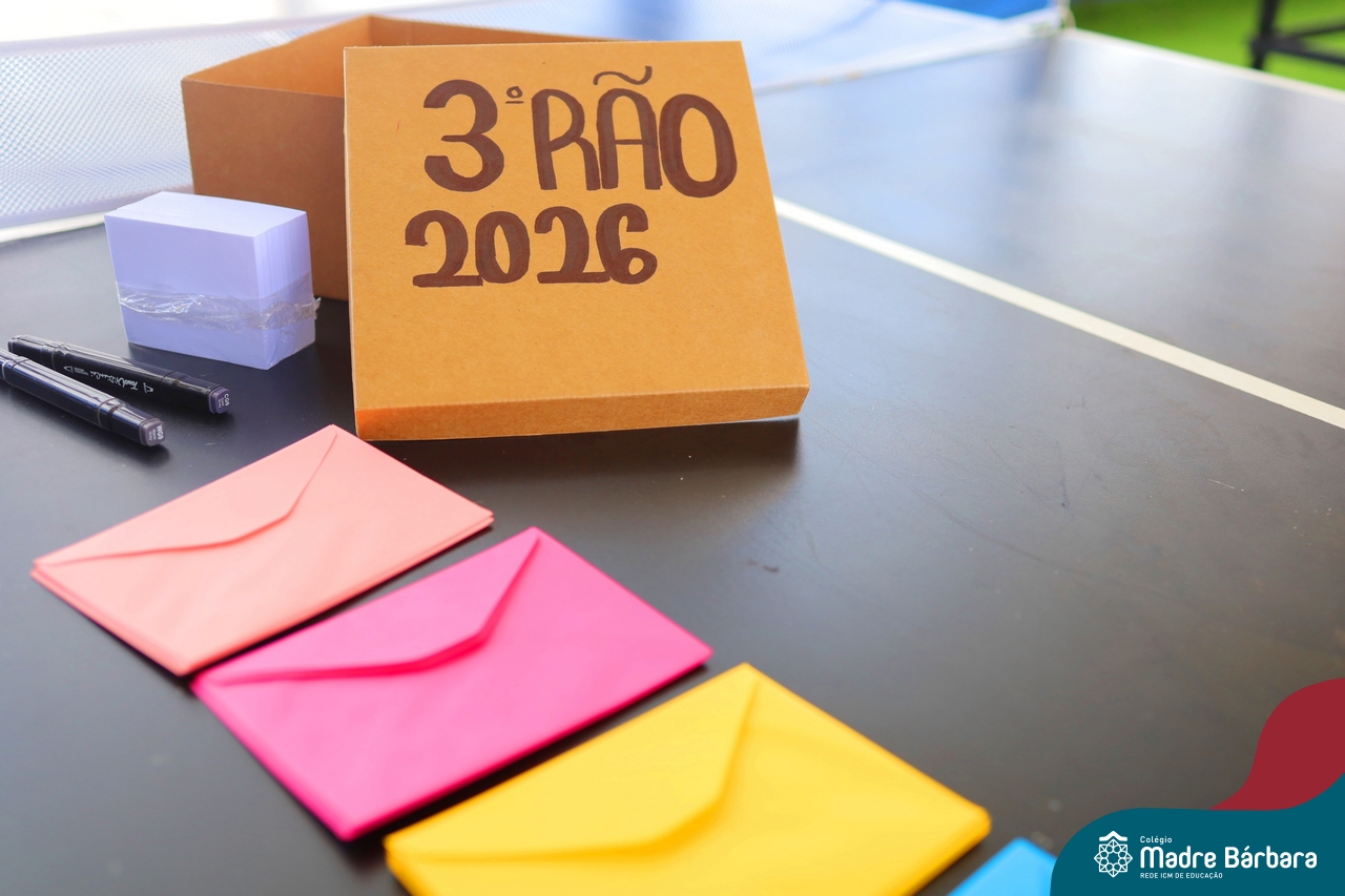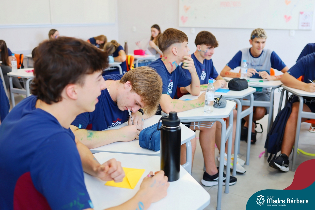O Terceirão 2026 começou com uma programação de acolhida repleta de significado, integração e boas energias no Colégio Madre Bárbara – Rede ICM. Logo no início da manhã, as turmas 301 e 302 foram recebidas com entusiasmo pelo Grêmio Estudantil (Gembar) e por um grupo de estudantes que representou o Terceirão do ano passado. Em um gesto simbólico e cheio de carinho, mensagens de incentivo e boas energias foram escritas nos braços dos terceiranistas, marcando o começo de um ano que promete ser inesquecível.