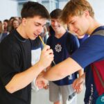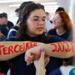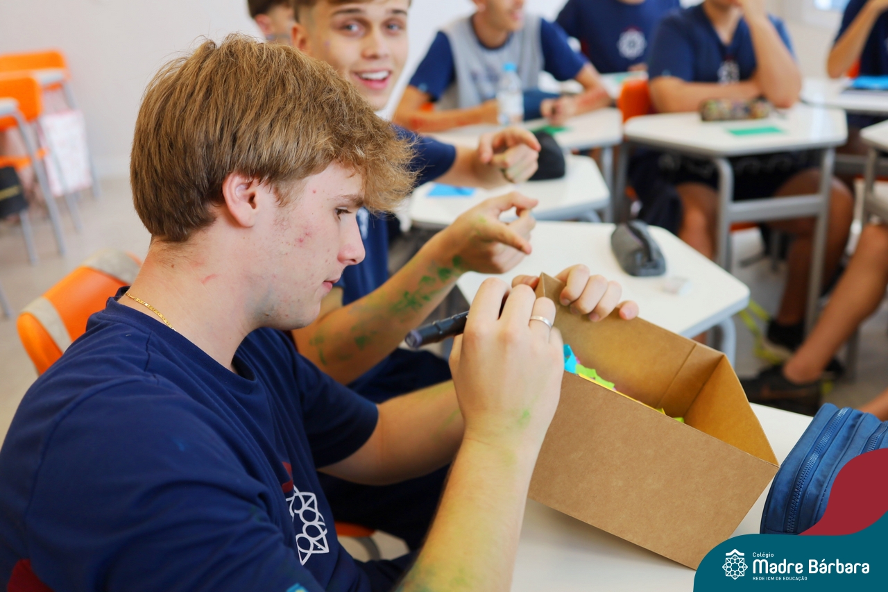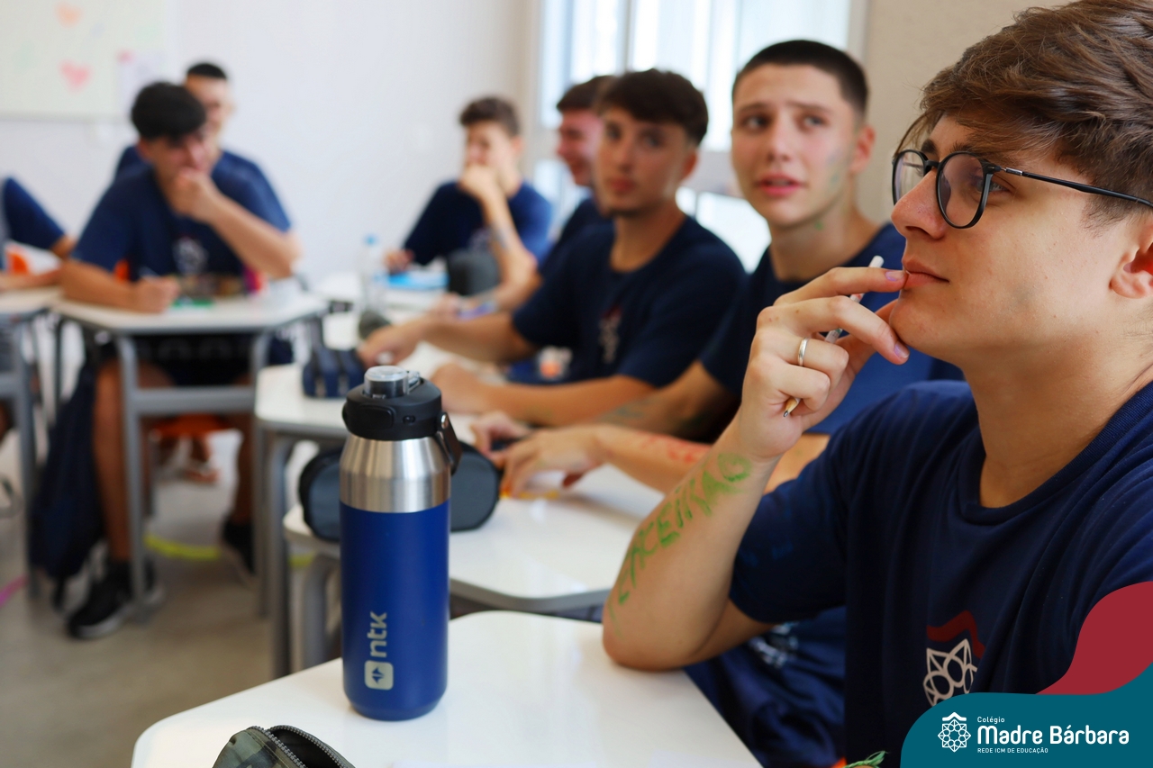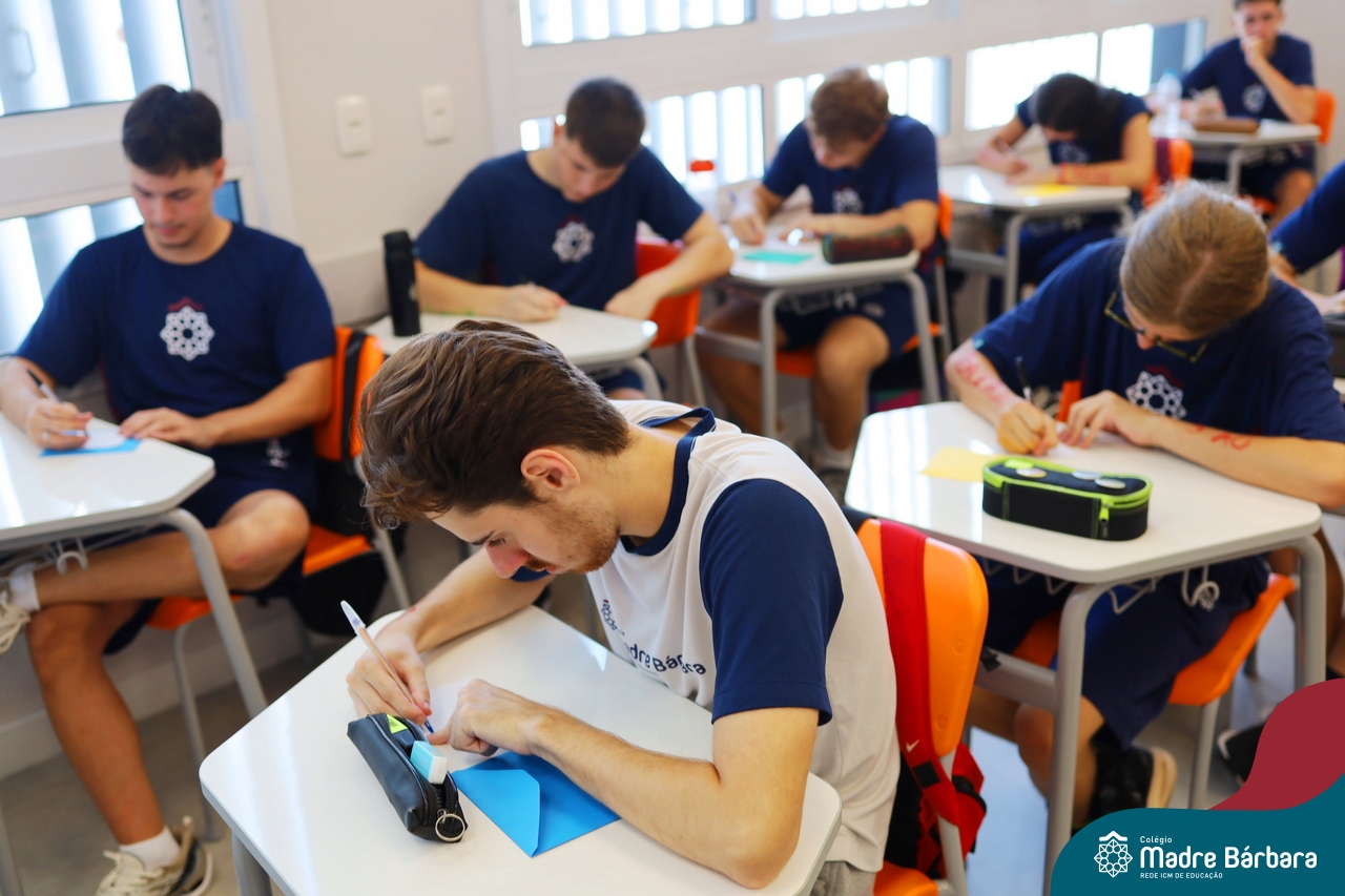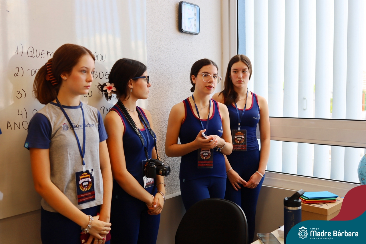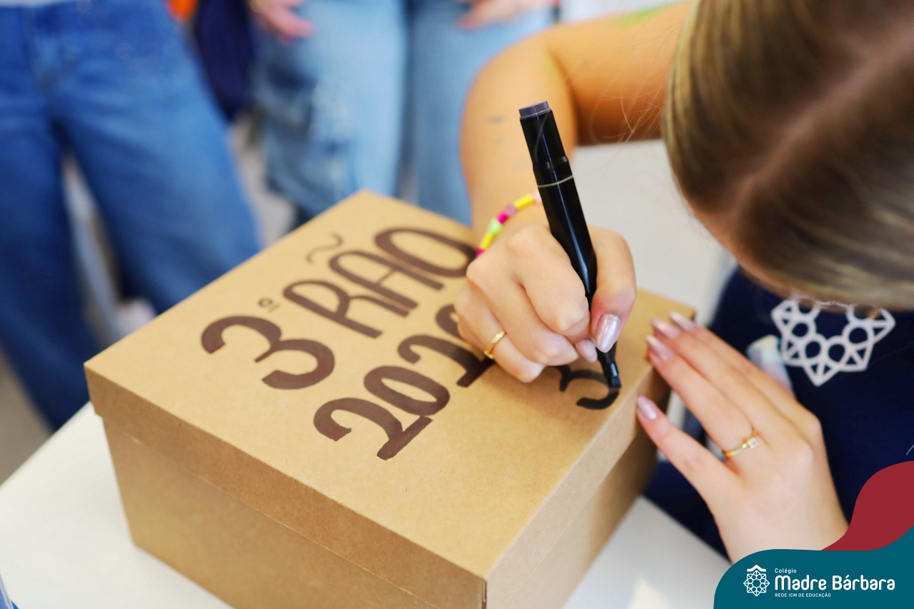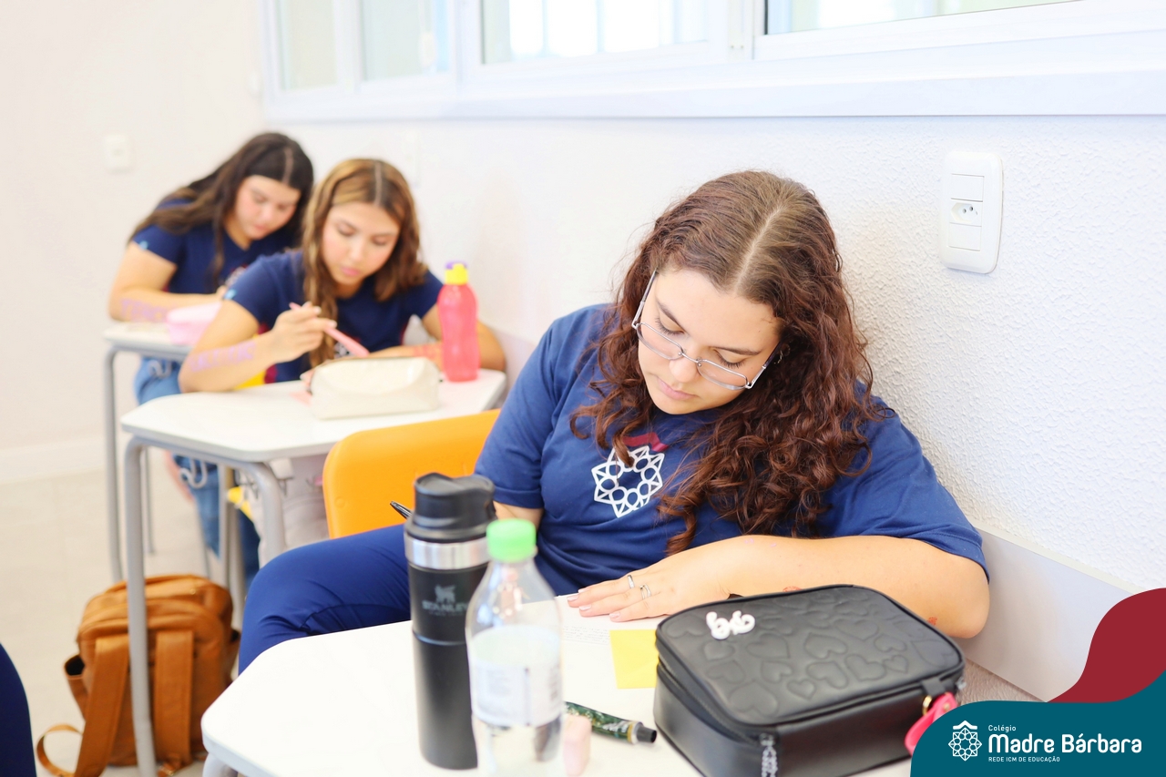 O Terceirão 2026 começou com uma programação de acolhida repleta de significado, integração e boas energias no Colégio Madre Bárbara – Rede ICM. Logo no início da manhã, as turmas 301 e 302 foram recebidas com entusiasmo pelo Grêmio Estudantil (Gembar) e por um grupo de estudantes que representou o Terceirão do ano passado. Em um gesto simbólico e cheio de carinho, mensagens de incentivo e boas energias foram escritas nos braços dos terceiranistas, marcando o começo de um ano que promete ser inesquecível.
