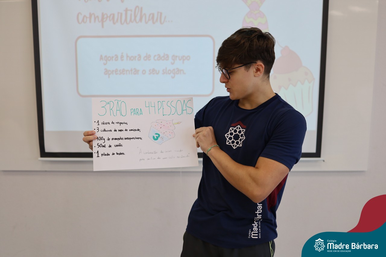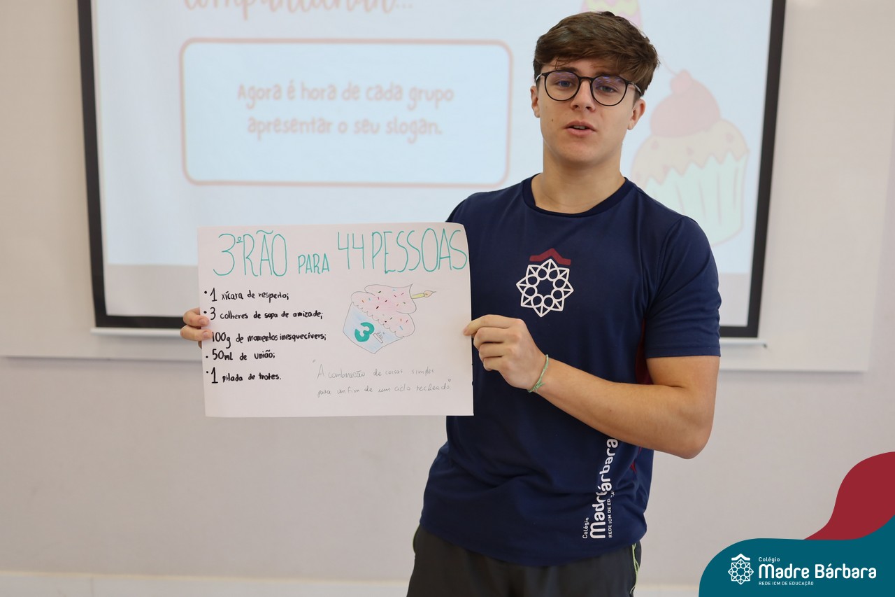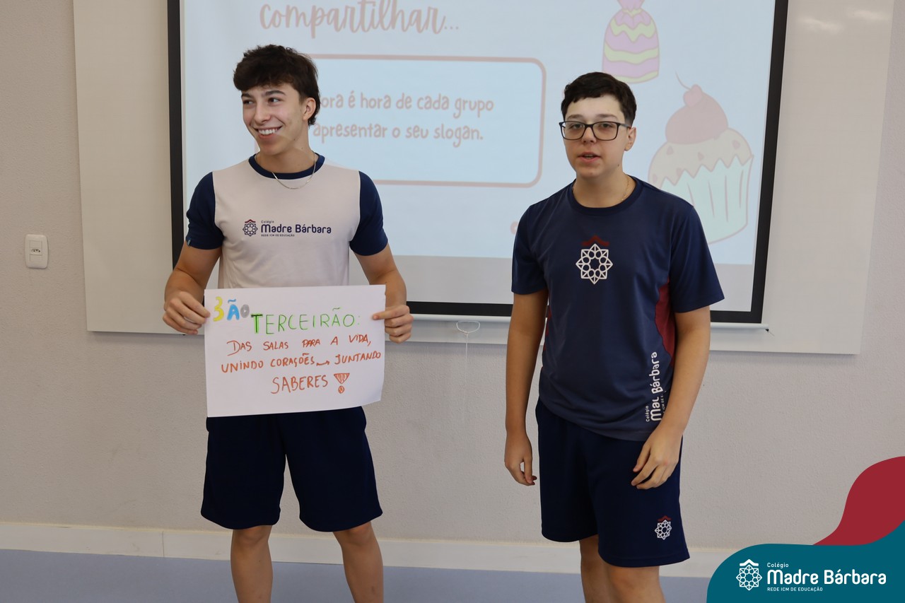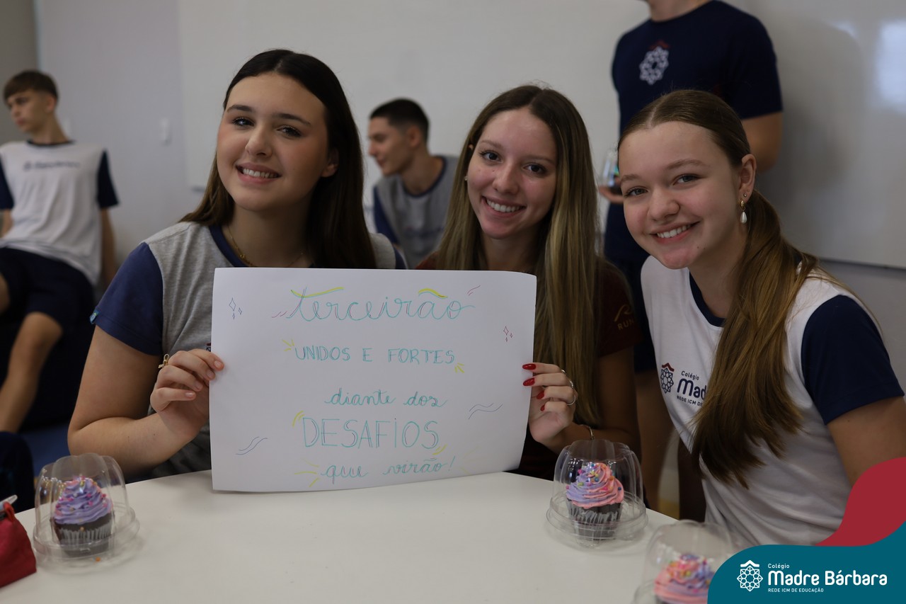 Na manhã desta sexta-feira (20.02) as turmas de Terceirão do Colégio Madre BárbaraRede ICM participaram de uma animada atividade de integração organizada pelo Grêmio Estudantil (Gembar). Durante o momento, os estudantes foram divididos em grupos e receberam o desafio de criar slogans que representassem a turma e a identidade deste ano tão significativo. A proposta estimulou a criatividade, o trabalho em equipe e o sentimento de pertencimento, rendendo ideias criativas. Para tornar o momento ainda mais especial, os estudantes também ganharam deliciosos cupcakes, que adoçaram a sexta-feira e garantiram ainda mais sorrisos ao longo da manhã.