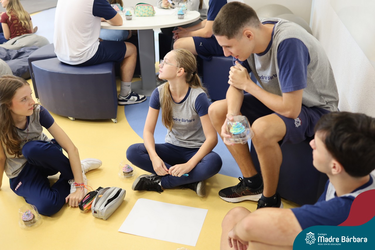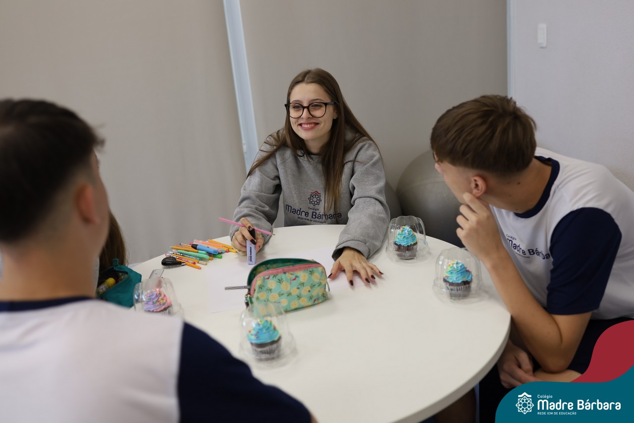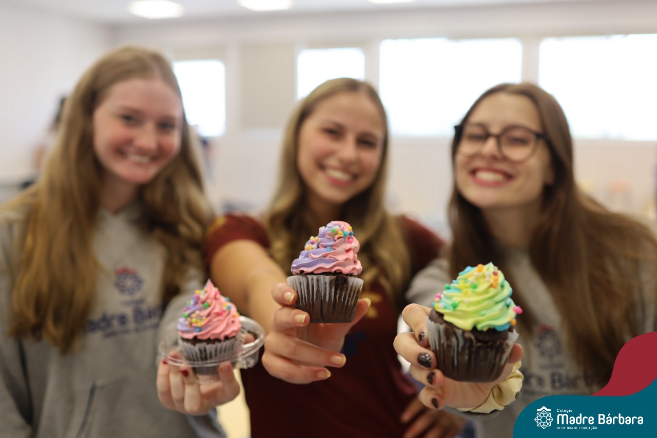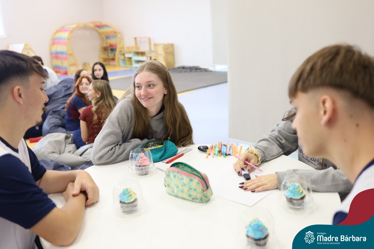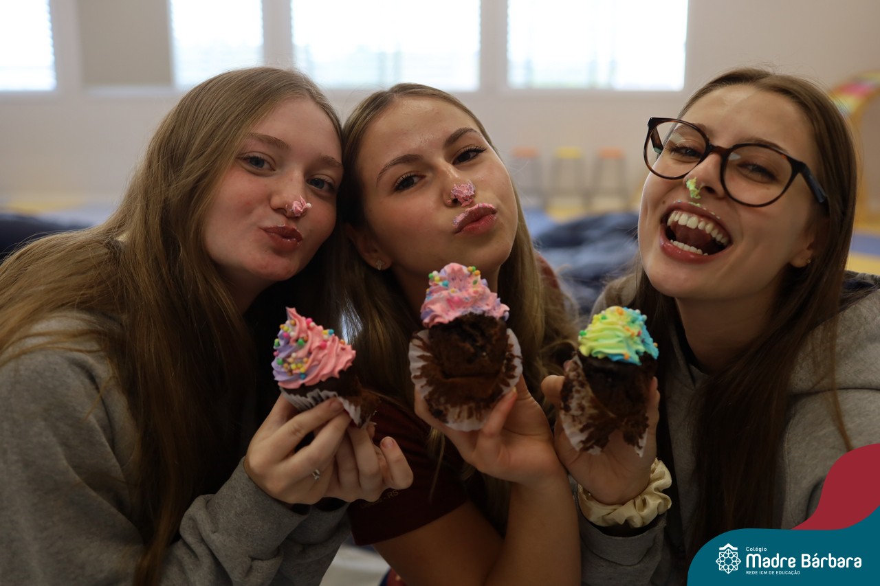 Na manhã desta sexta-feira (20.02) as turmas de Terceirão do Colégio Madre BárbaraRede ICM participaram de uma animada atividade de integração organizada pelo Grêmio Estudantil (Gembar). Durante o momento, os estudantes foram divididos em grupos e receberam o desafio de criar slogans que representassem a turma e a identidade deste ano tão significativo. A proposta estimulou a criatividade, o trabalho em equipe e o sentimento de pertencimento, rendendo ideias criativas. Para tornar o momento ainda mais especial, os estudantes também ganharam deliciosos cupcakes, que adoçaram a sexta-feira e garantiram ainda mais sorrisos ao longo da manhã.