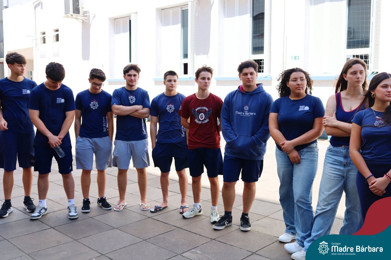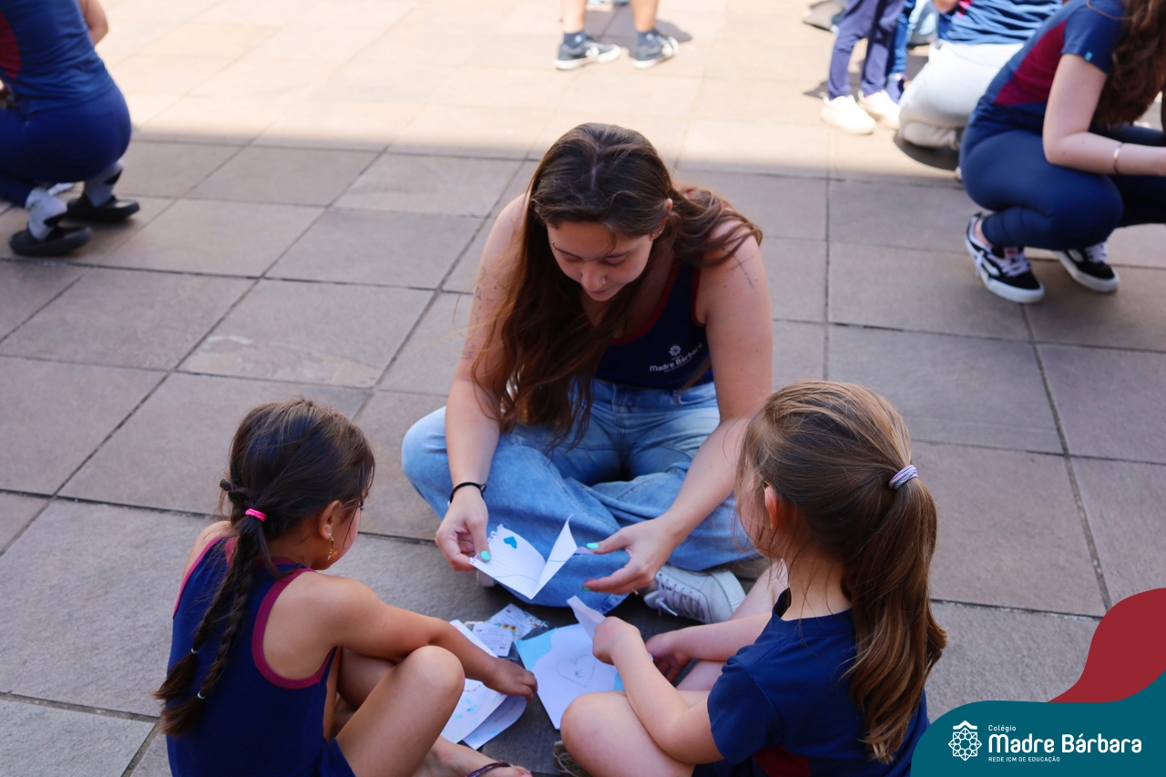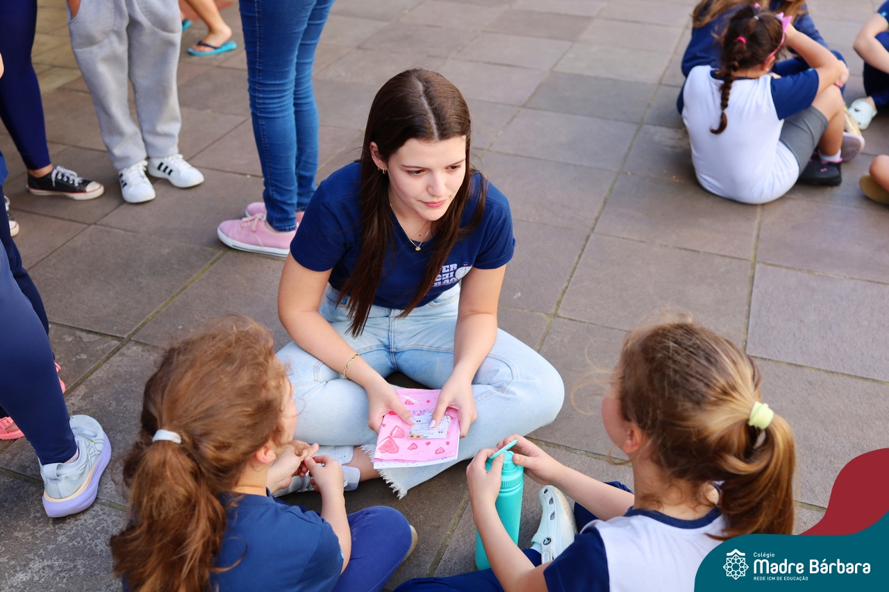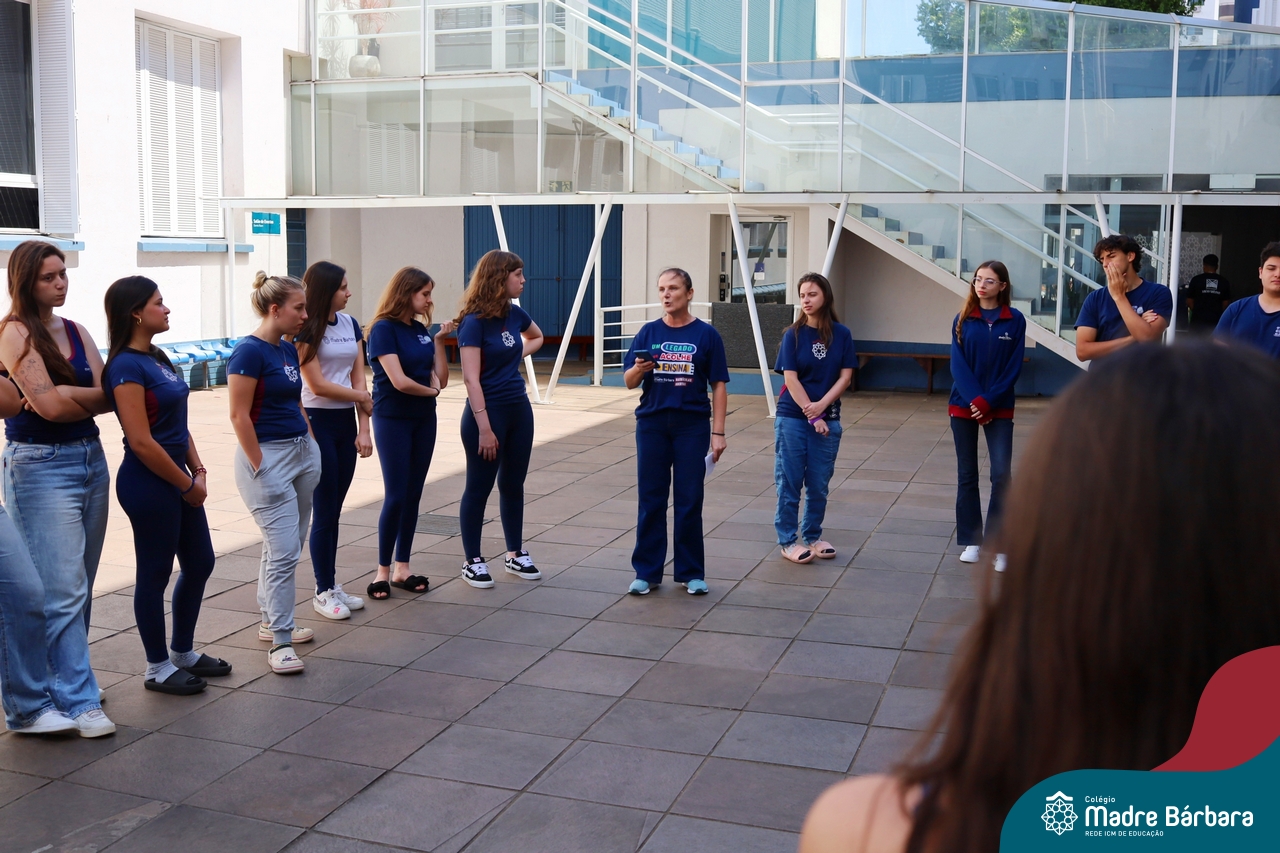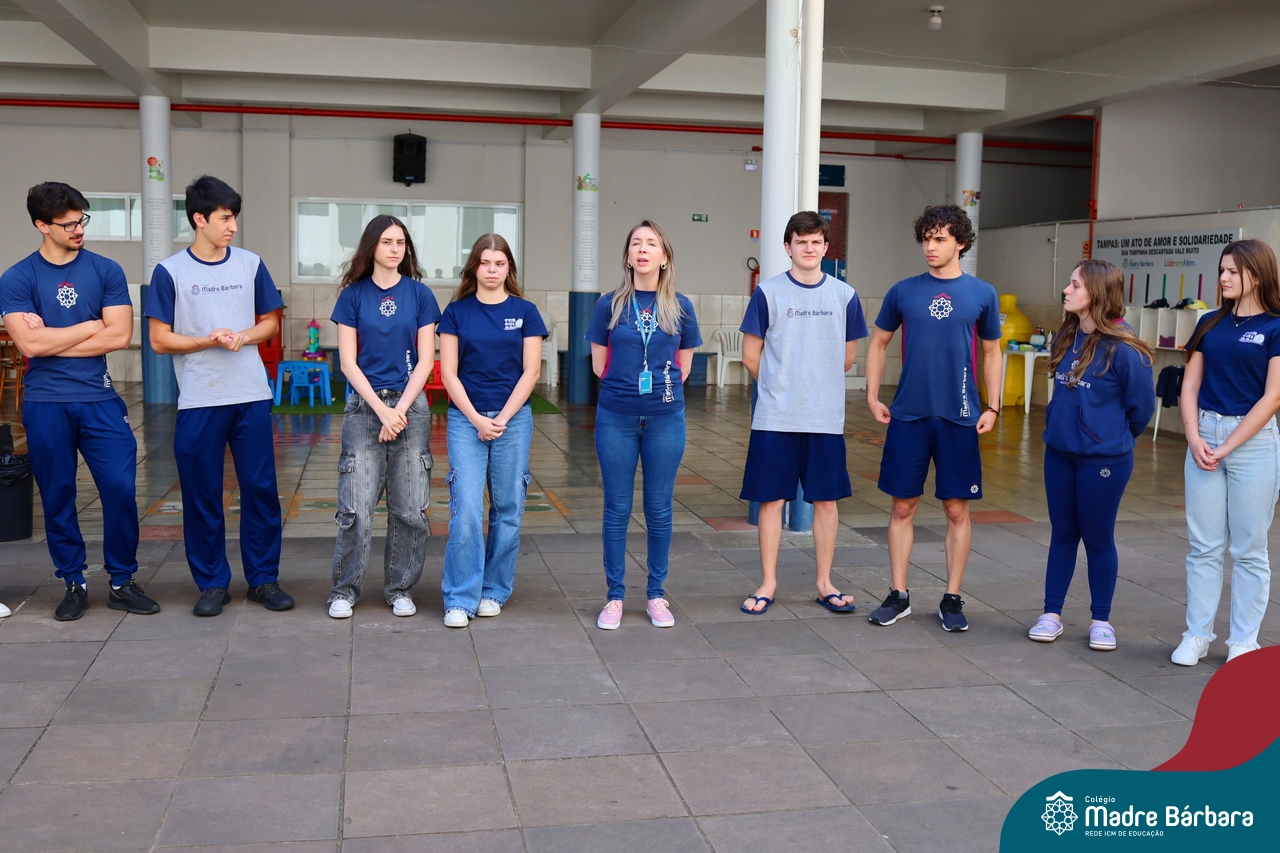 Nessa quarta-feira (05.11) os estudantes do Terceirão viveram um momento especial de acolhimento e preparação promovido pelo Serviço de Pastoral Escolar e pela Psicologia Escolar. Em clima de serenidade e esperança, partilharam palavras de carinho, conforto e fé, fortalecendo corações e mentes para os desafios do ENEM, prova que ocorre nos próximos finais de semana, dias 9 e 16. As crianças do Projeto Laços Afetivos, os afilhados, emocionaram a todos com uma linda homenagem musical, guiadas pela professora Tainá Dullius. Além do canto cheio de ternura, entregaram cartinhas repletas de boas energias, mimos, chocolates e canetas, acompanhados de gestos de incentivo e amor. O encontro também foi abençoado com a entrega de um terço, símbolo de proteção e luz, ofertado pela Pastoral e Psicologia, para acompanhar os estudantes durante as provas e em cada passo de sua caminhada. Também receberam sementes de girassol que simboliza o início de um caminho, o nascimento de sonhos e a capacidade de florescer mesmo diante dos desafios.